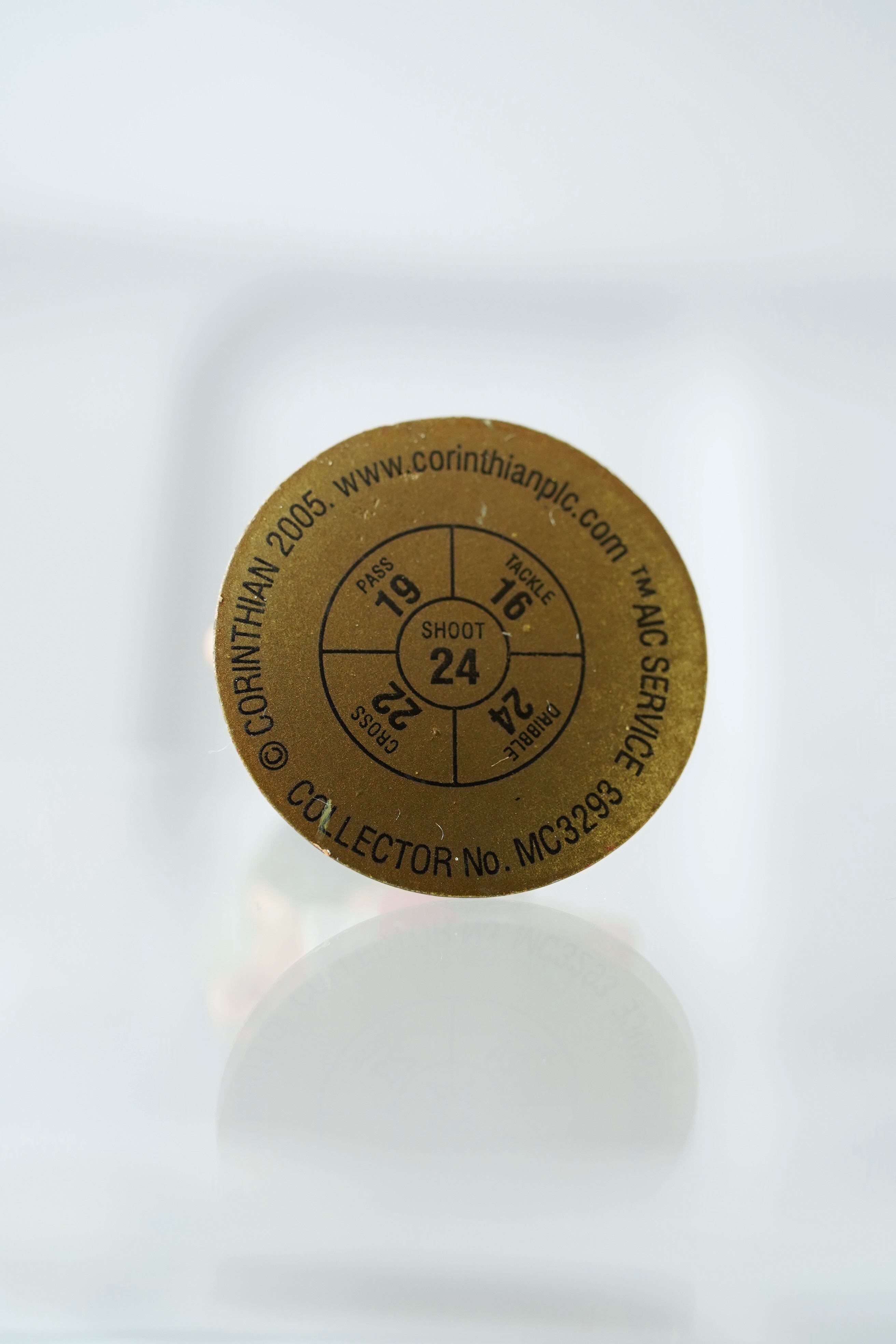 このフィギュアは2005年刻印、Collector No. MC3293。ゴールド台座仕様、白のACミランユニフォームに背番号22を背負った姿を、全高約5cmで立体化しています。