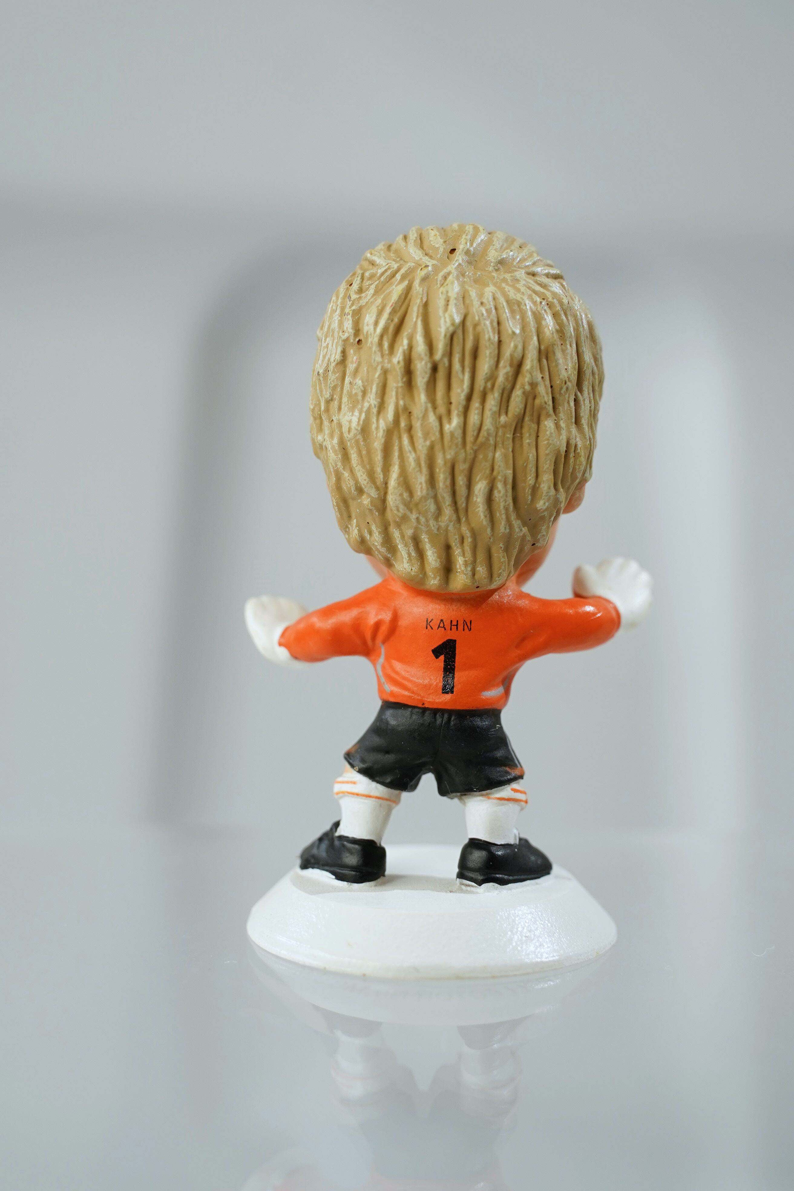 2006年刻印、Collector No. MC5591、ホワイト台座仕様。ドイツ代表GKユニフォーム(オレンジ)を着用し、背番号1を背負った姿が全高約5cmで再現されています。