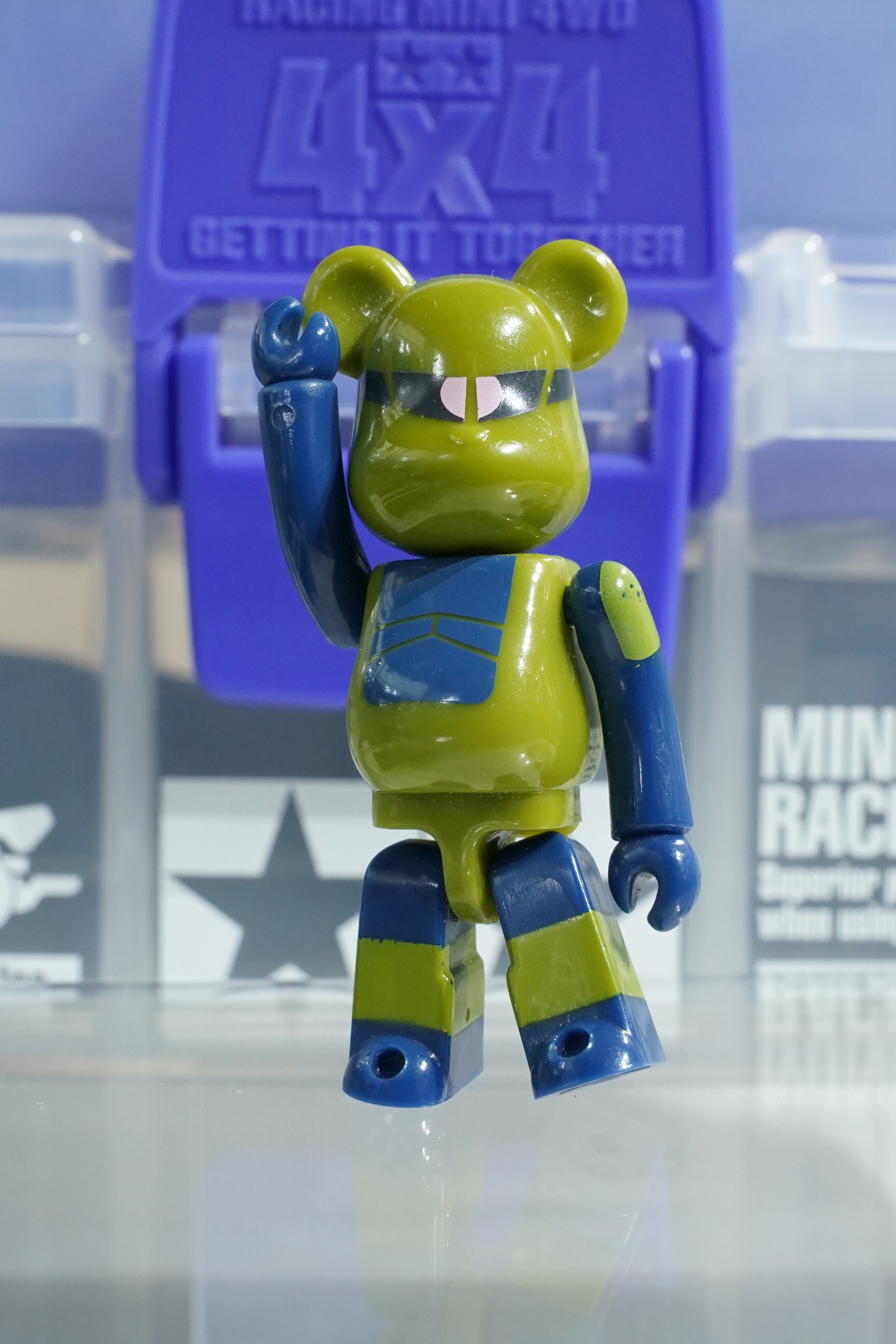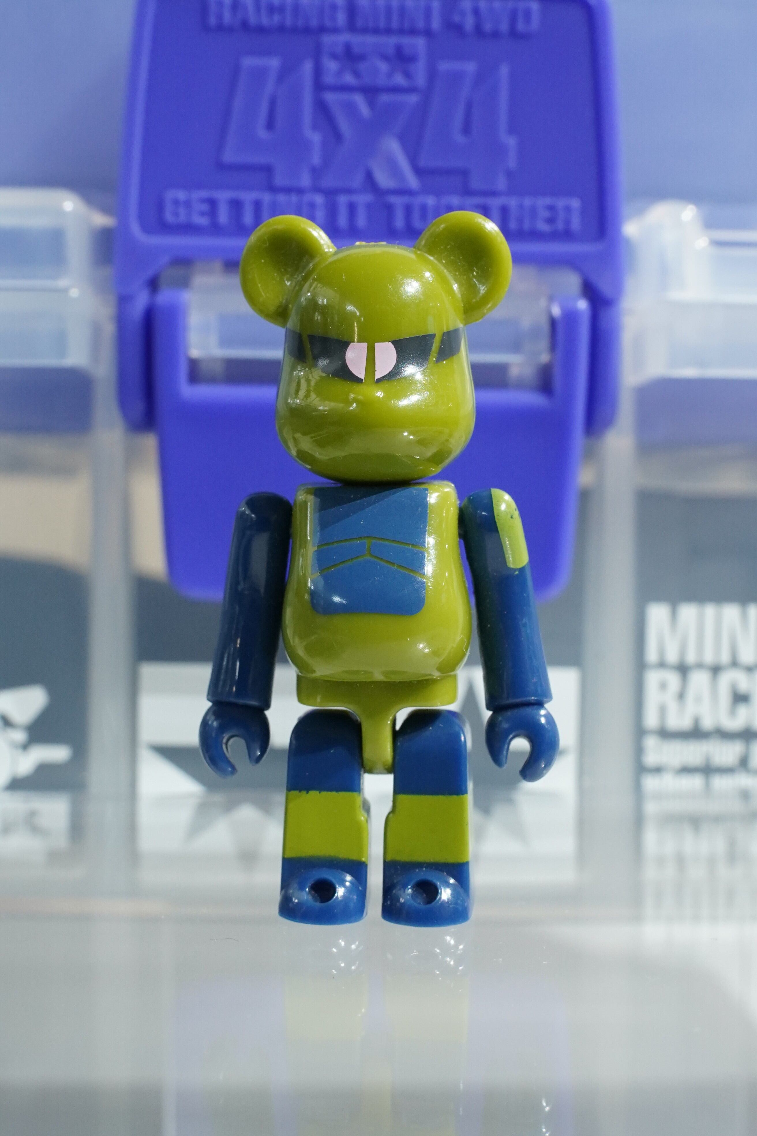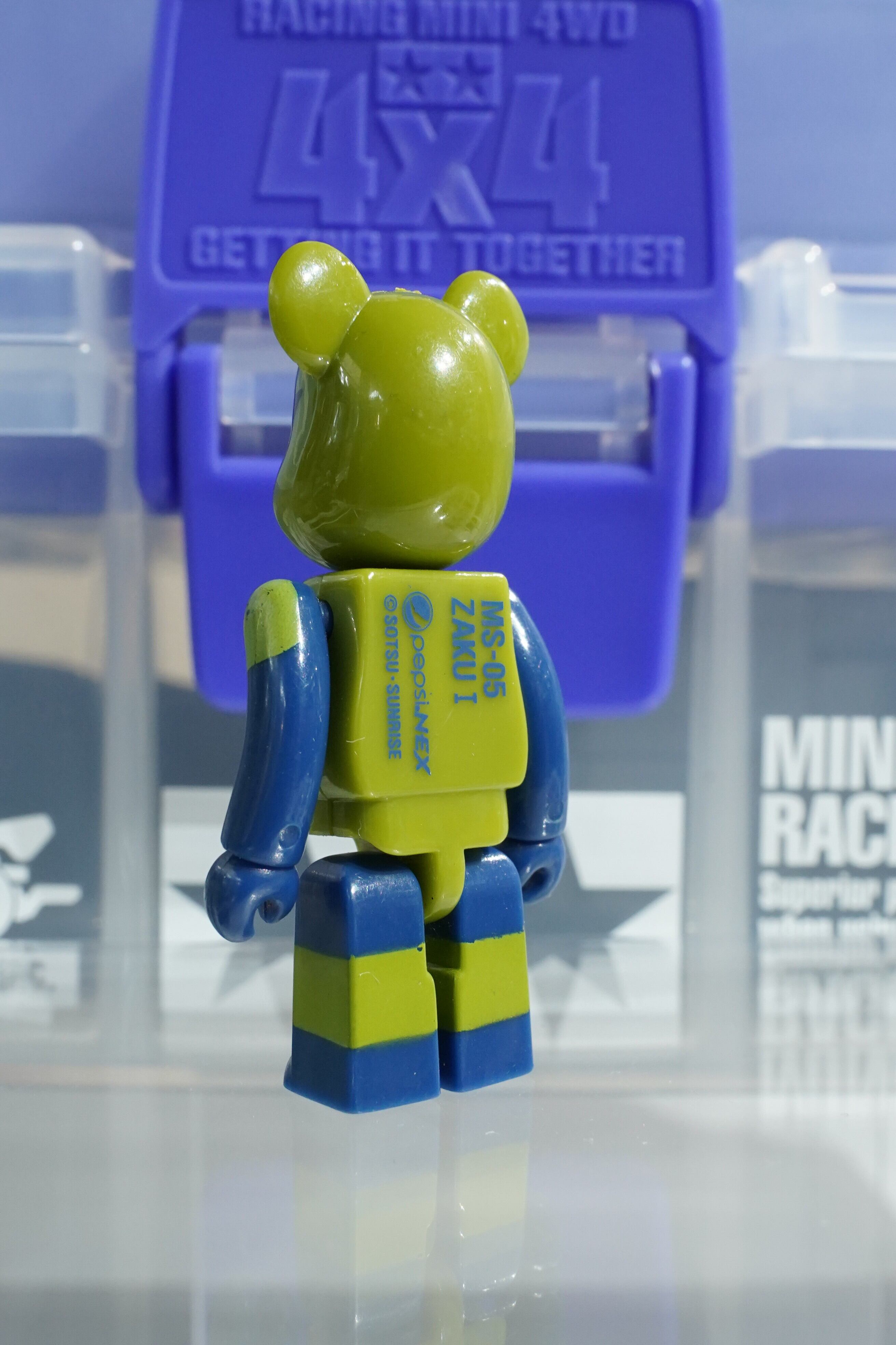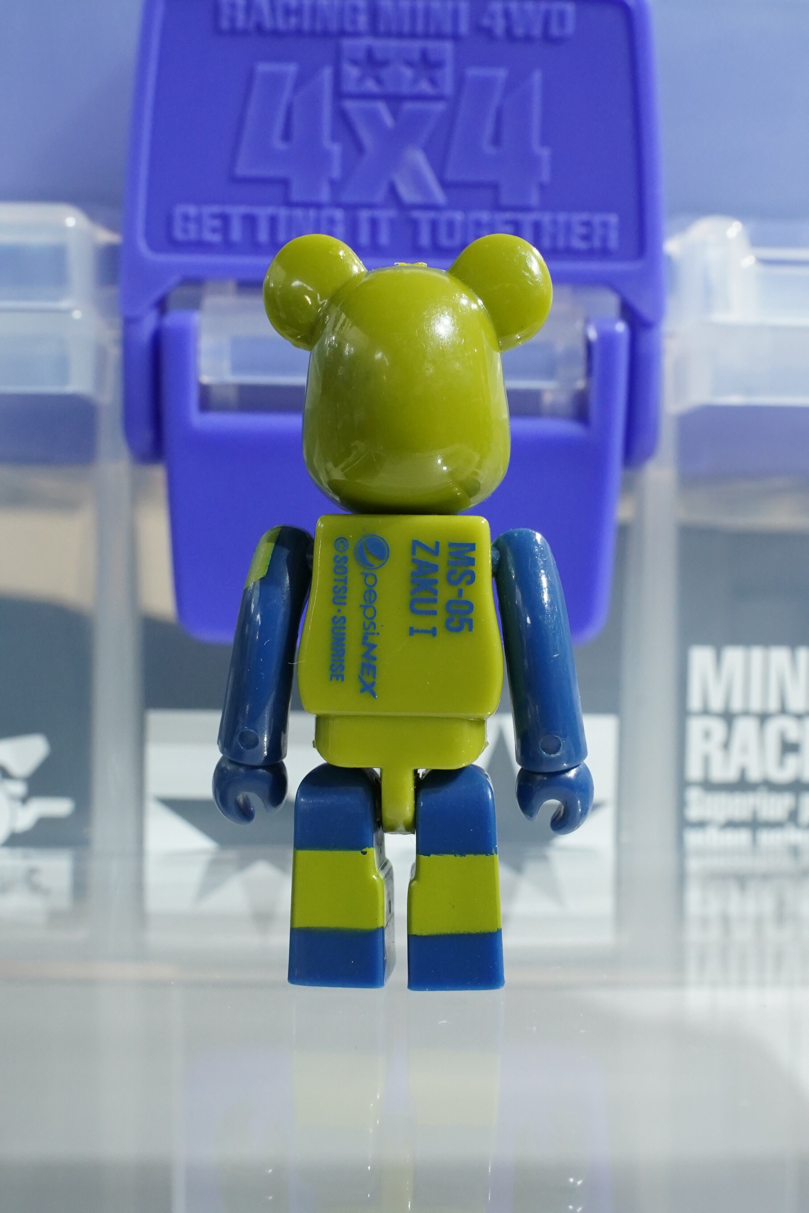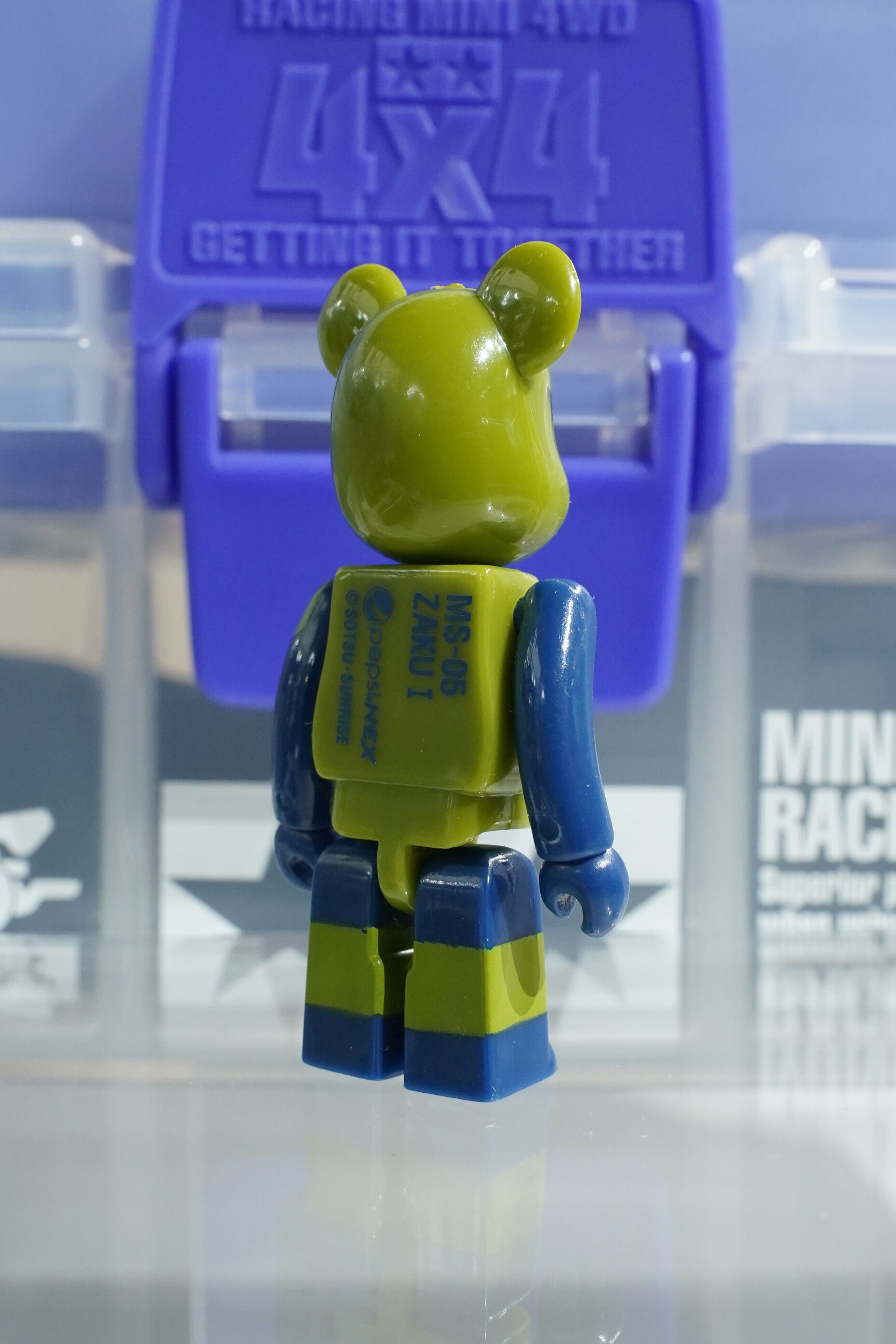 サンライズ(SOTSU・SUNRISE)正規ライセンスのもと、Medicom Toy(メディコム・トイ)が製作。ジオン公国軍の初期量産型モビルスーツ「ザクI」をモチーフに、緑と濃紺の配色がベアブリックらしくポップにアレンジされています。