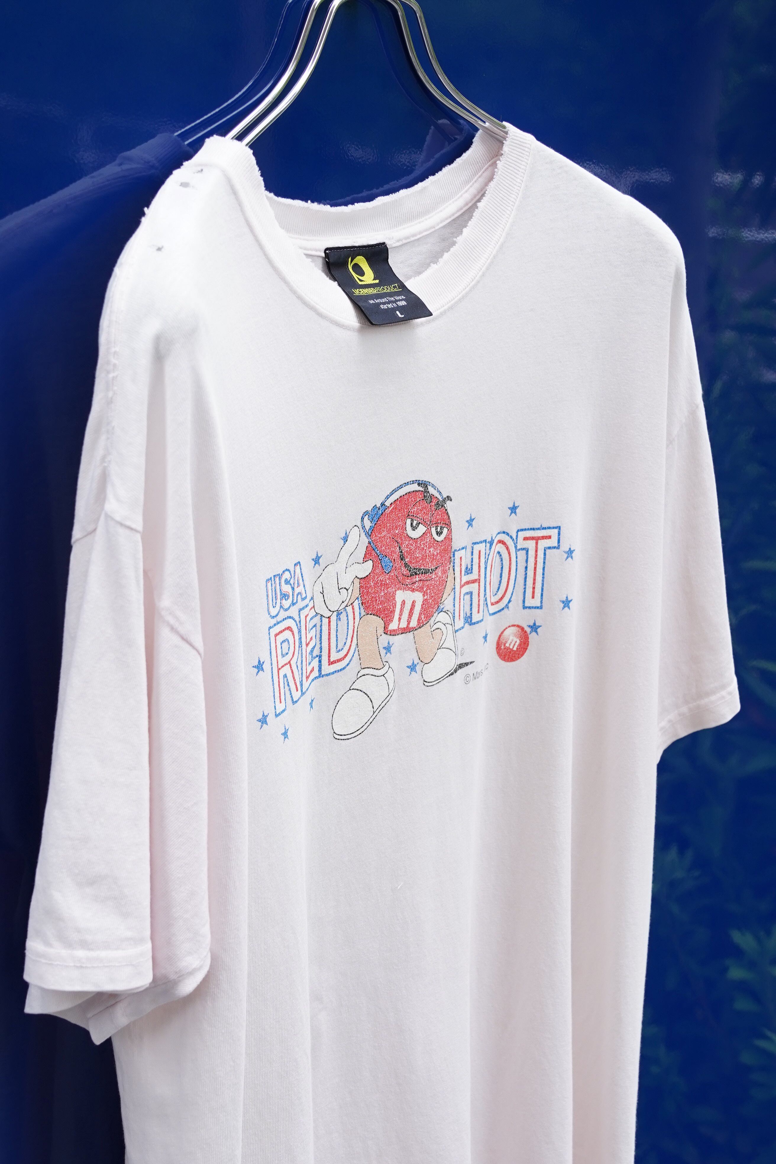 M&M’s USA “RED HOT” キャラクターTシャツ(フェードピンク / L)made in USA