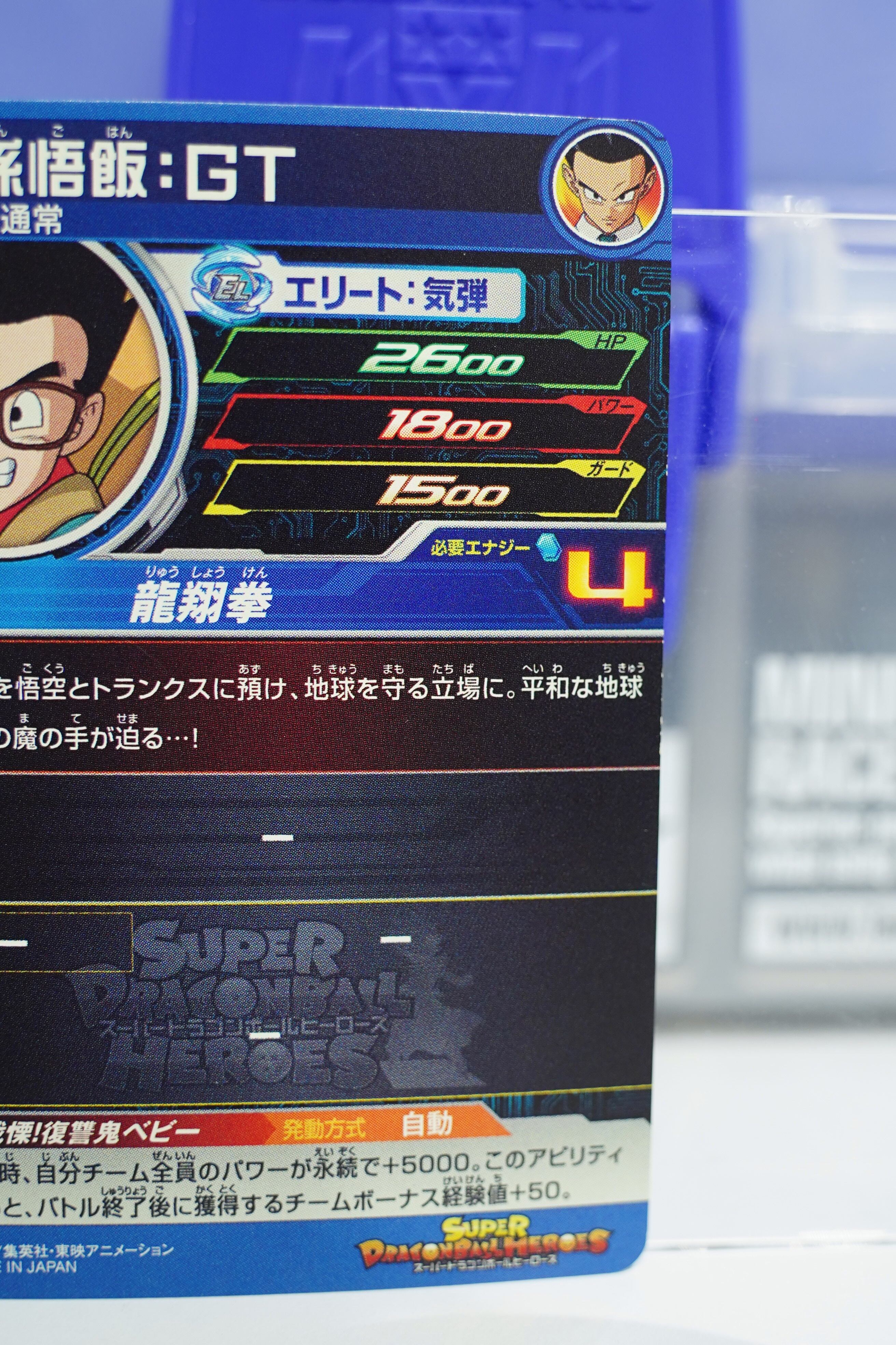その中で本カード「孫悟飯:GT」は、悟空不在の地球を守る立場でありつつ、家族・仲間に支えられる姿を象徴。GTを総括する仲間集合シーンとして人気の高い一枚です。