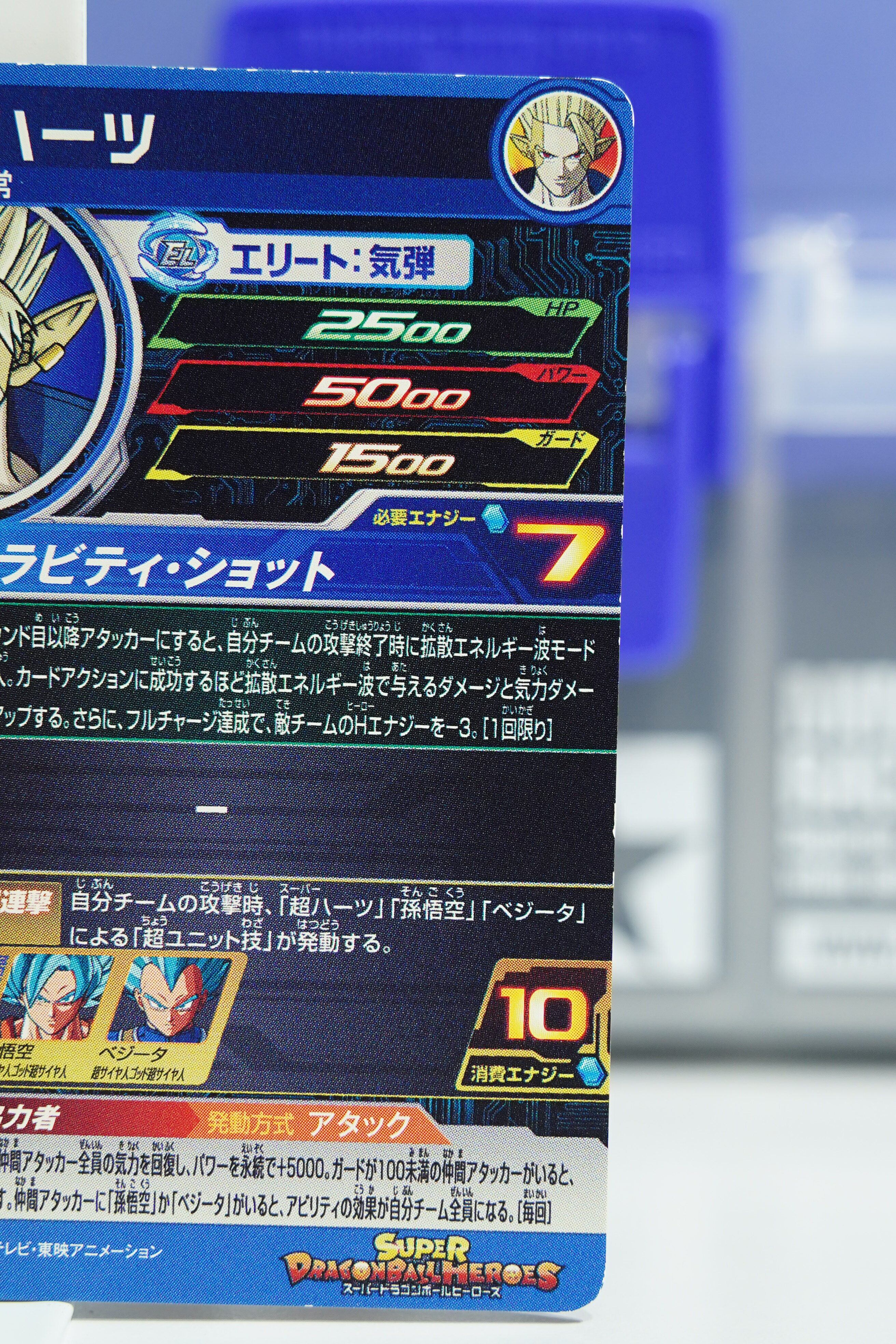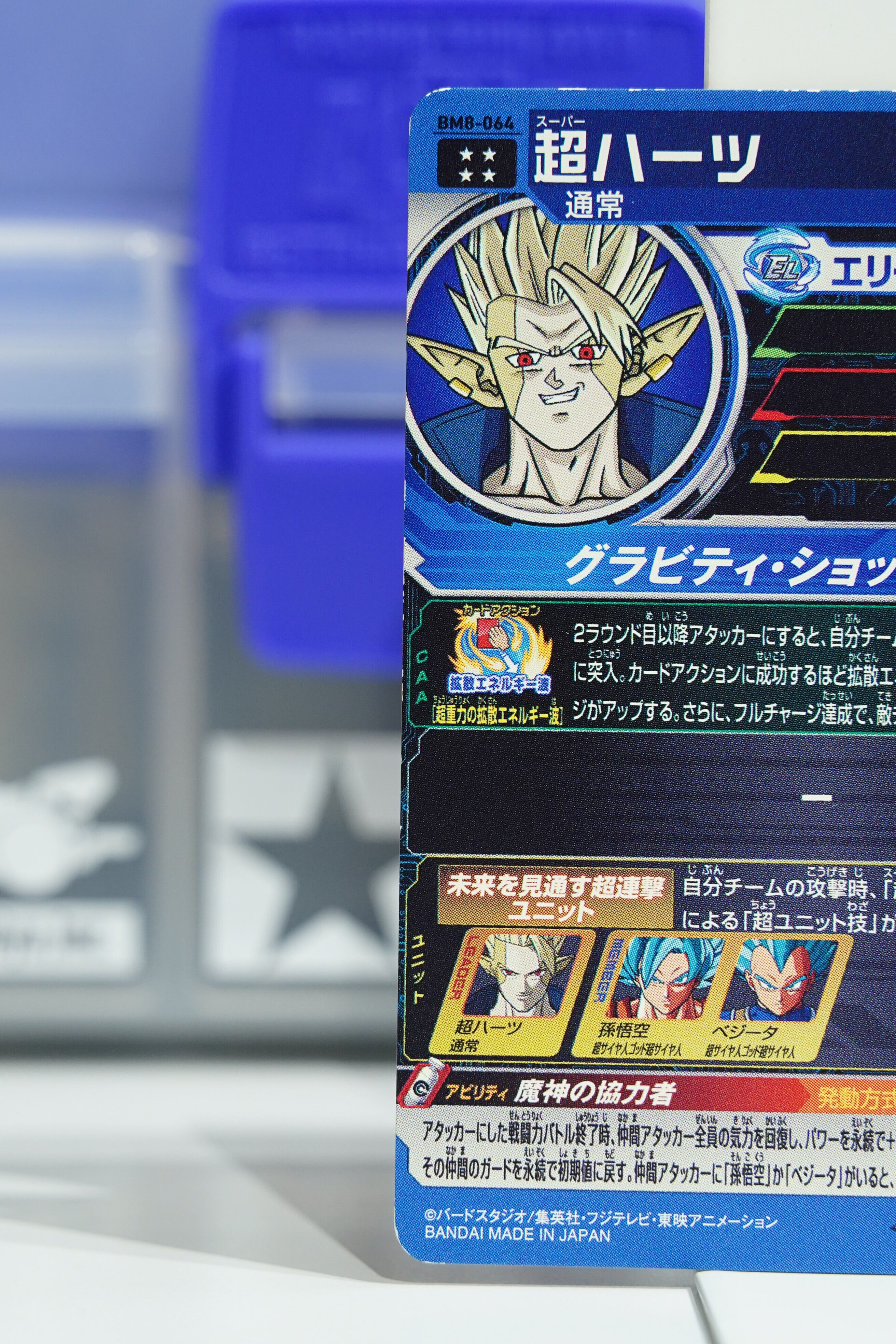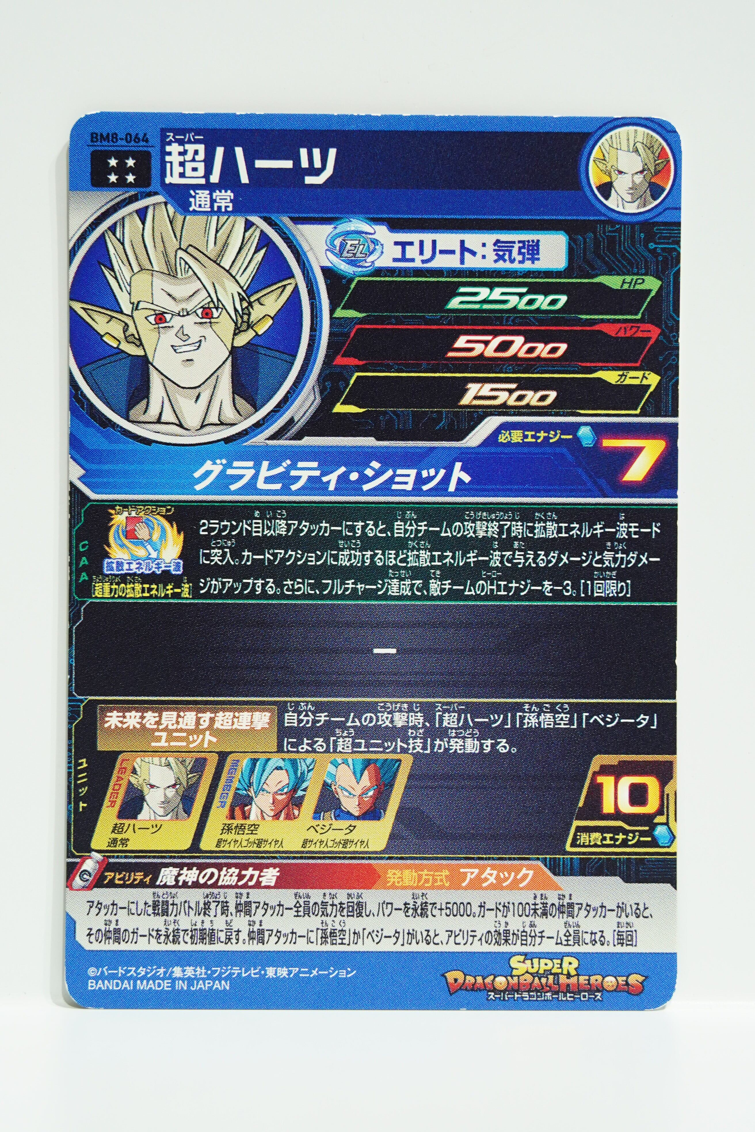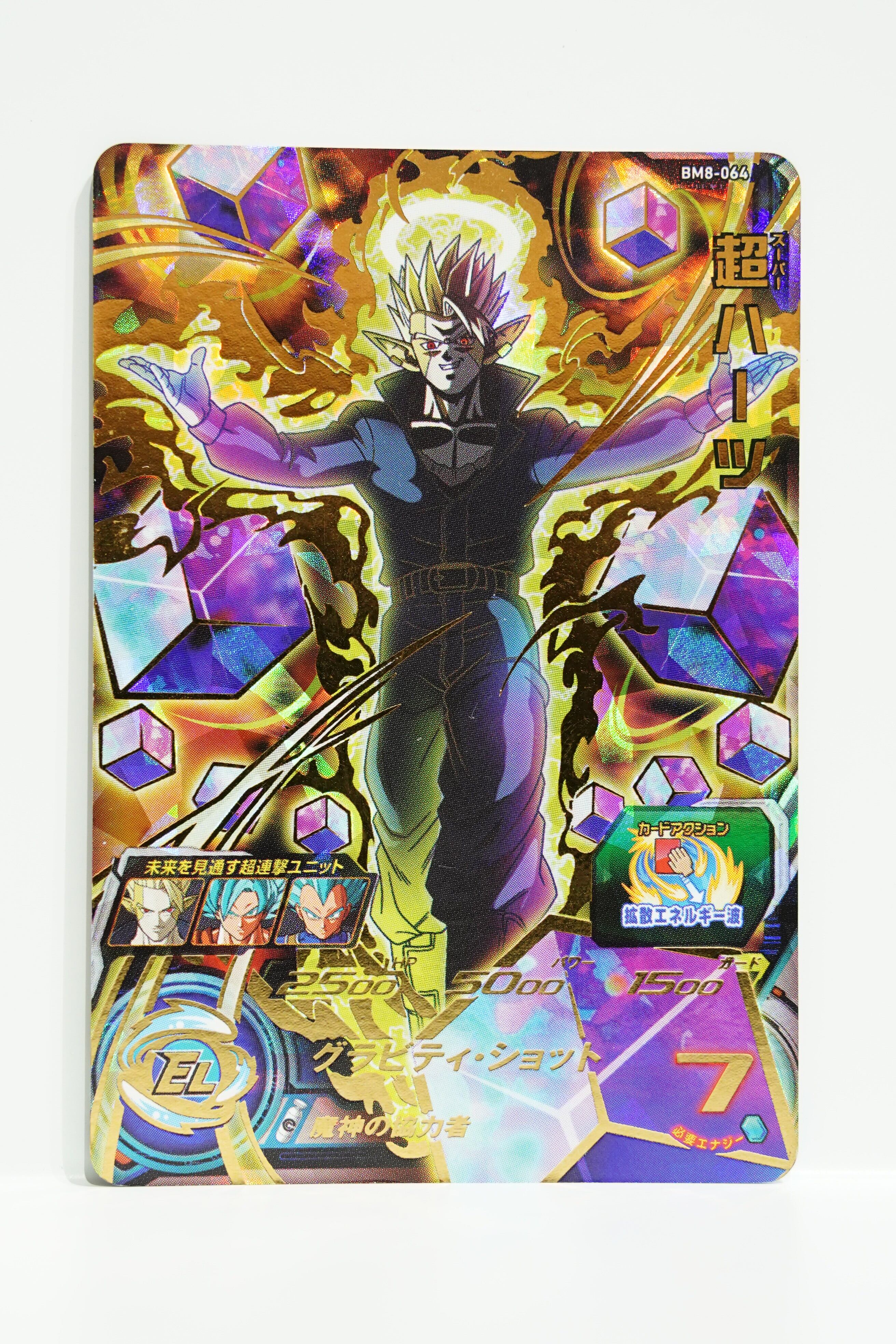 こちらは「スーパードラゴンボールヒーローズ」ビッグバンミッション8弾(2021年1月稼働)に収録された BM8-064 超ハーツ(SUPER HEARTS) です。