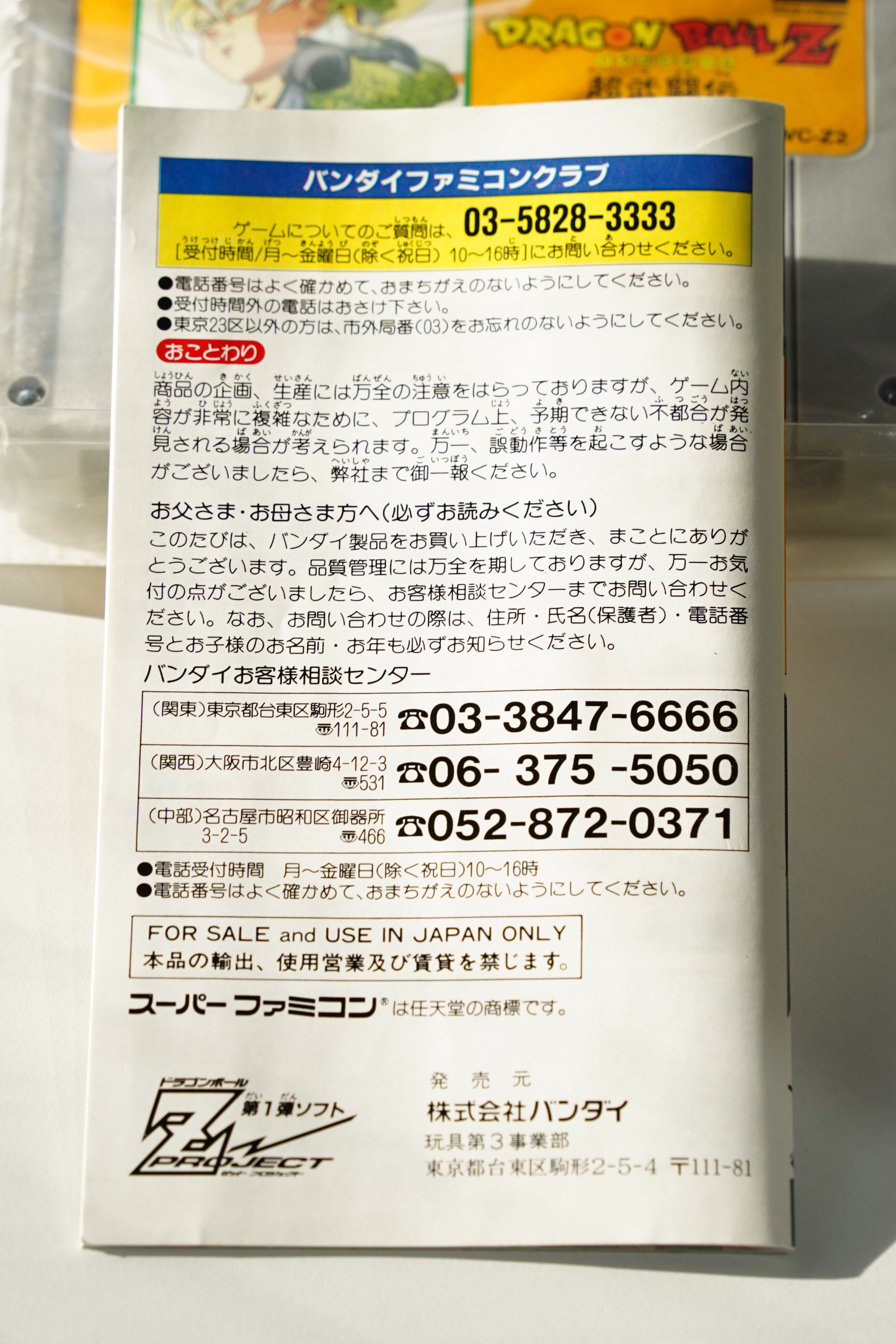 DRAGON BALL Z /ドラゴンボールZ 超武闘伝(1993 / BANDAI)SHVC-Z2 スーパーファミコンソフト(SFC)・動作確認済