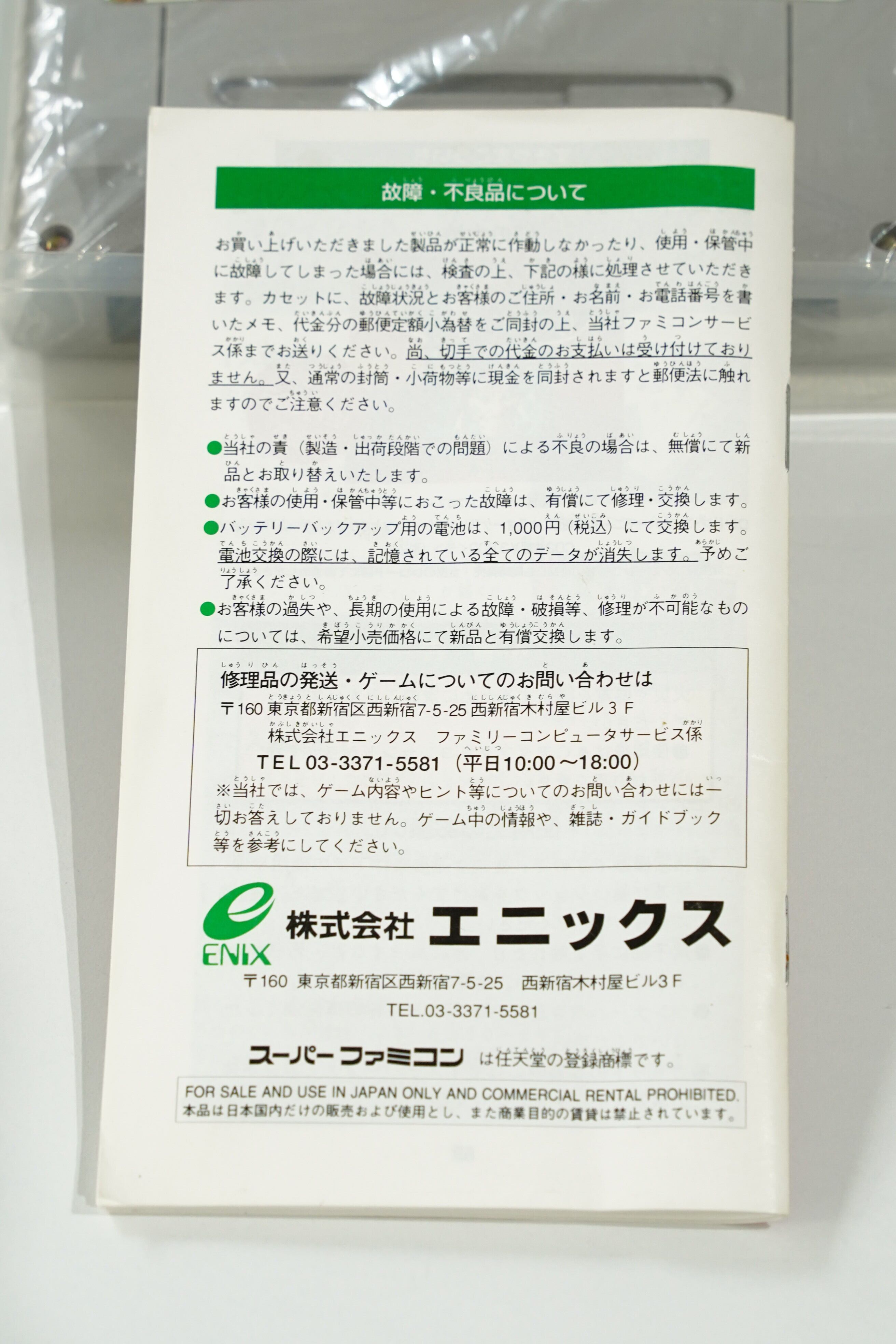 ・機種:スーパーファミコン(SFC/NTSC-J)