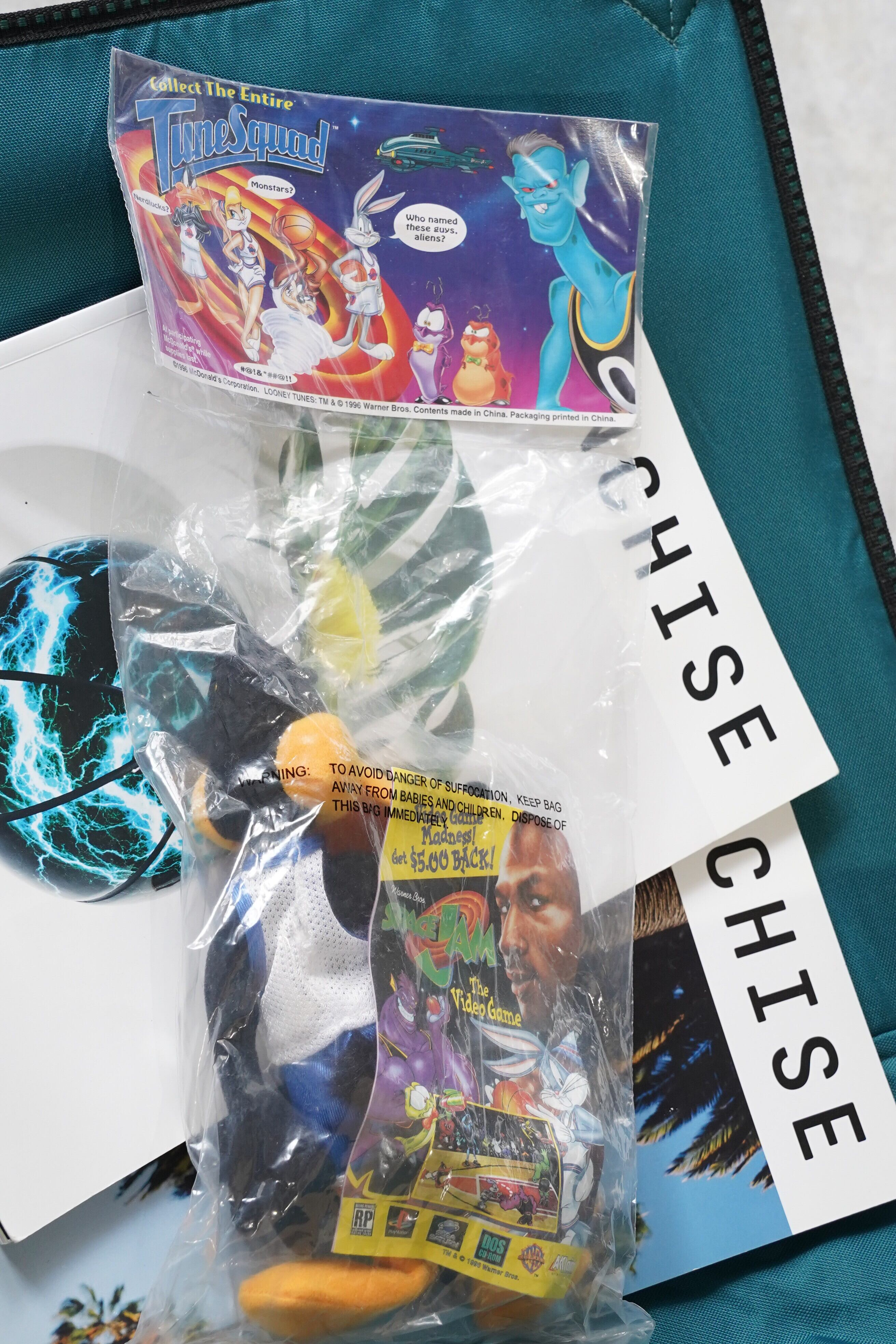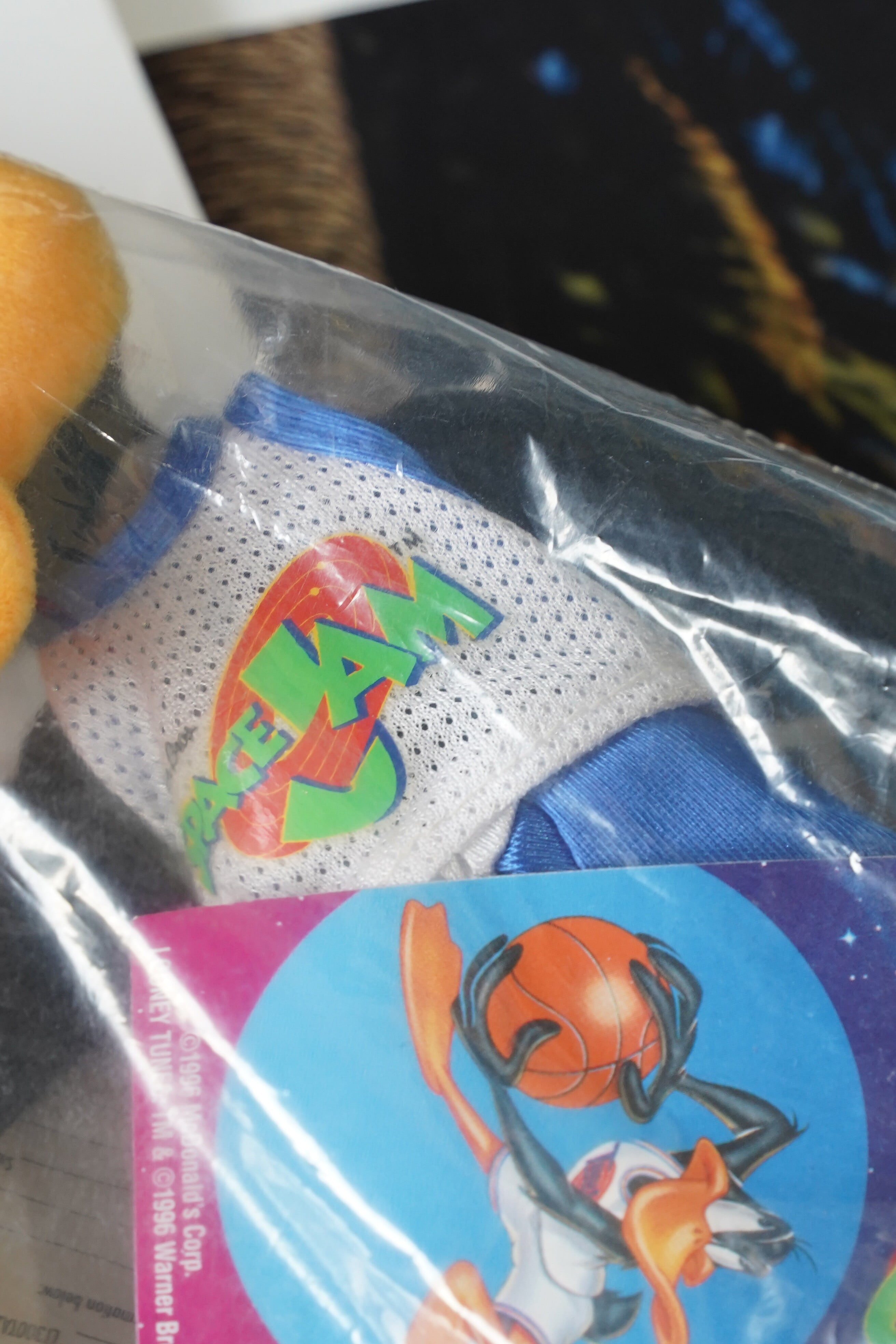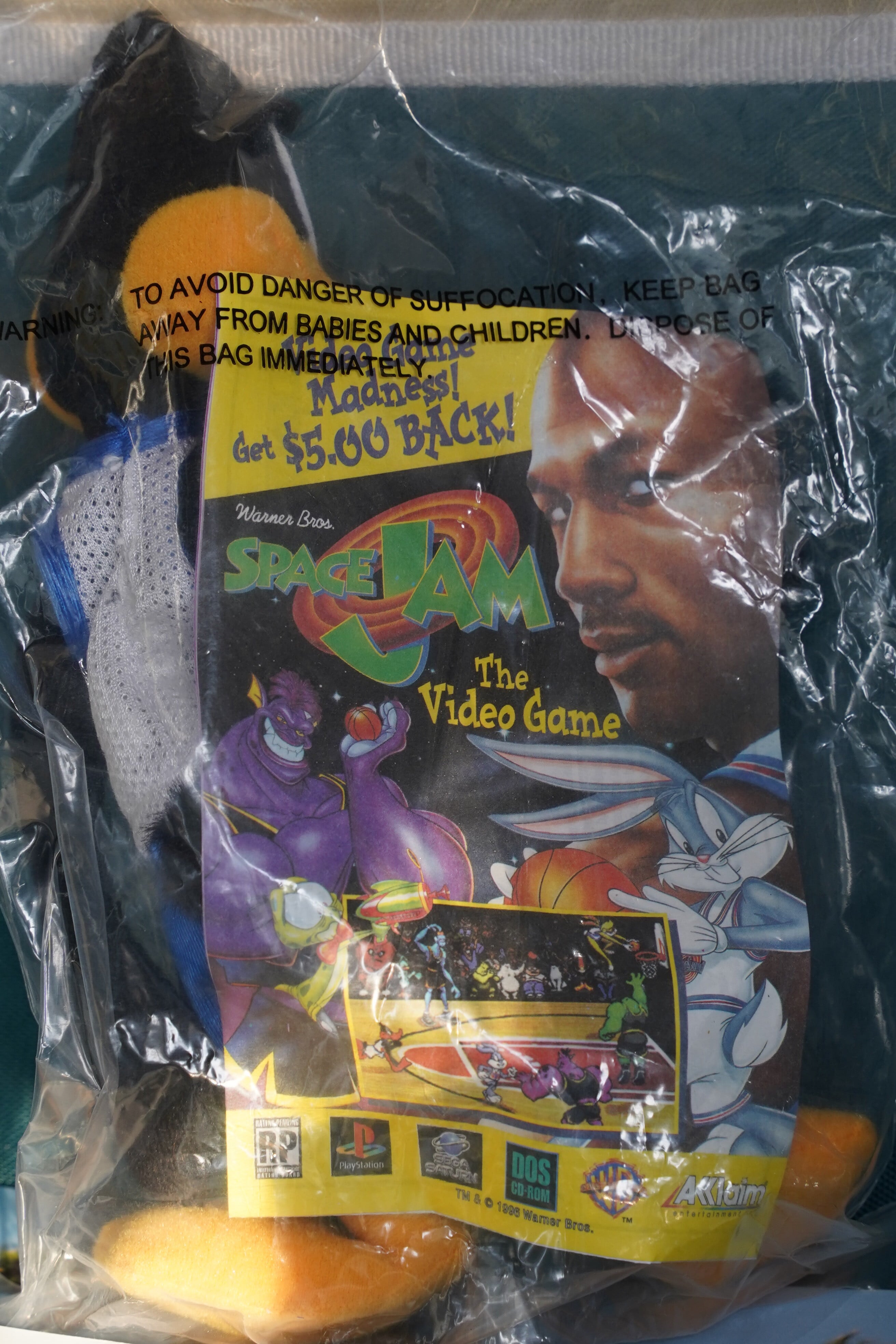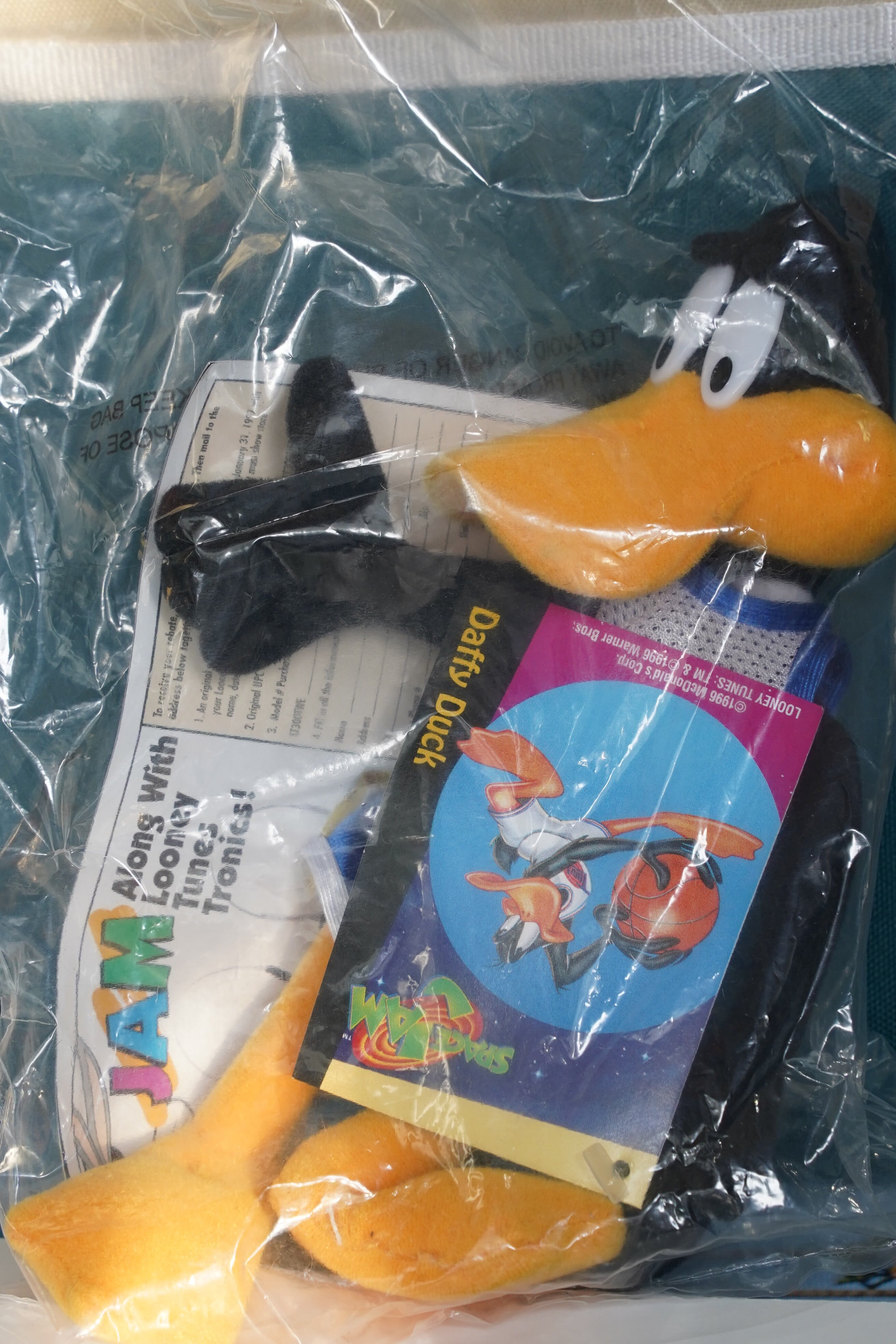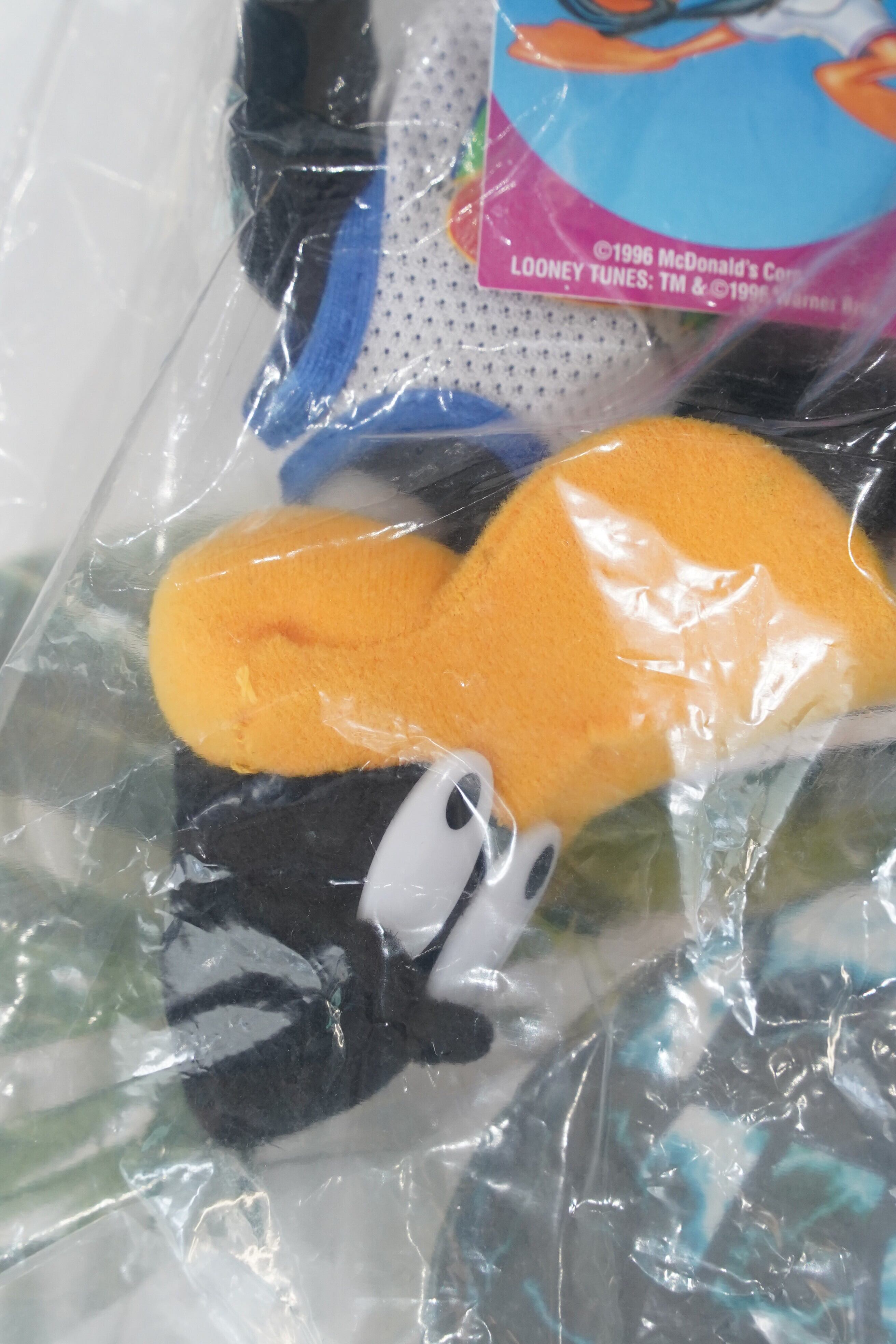 こちらは、1996年公開の映画『SPACE JAM(スペース・ジャム)』キャンペーンにて、海外マクドナルド限定で配布された公式ぬいぐるみシリーズのひとつ、Daffy Duck(ダフィー・ダック)です。