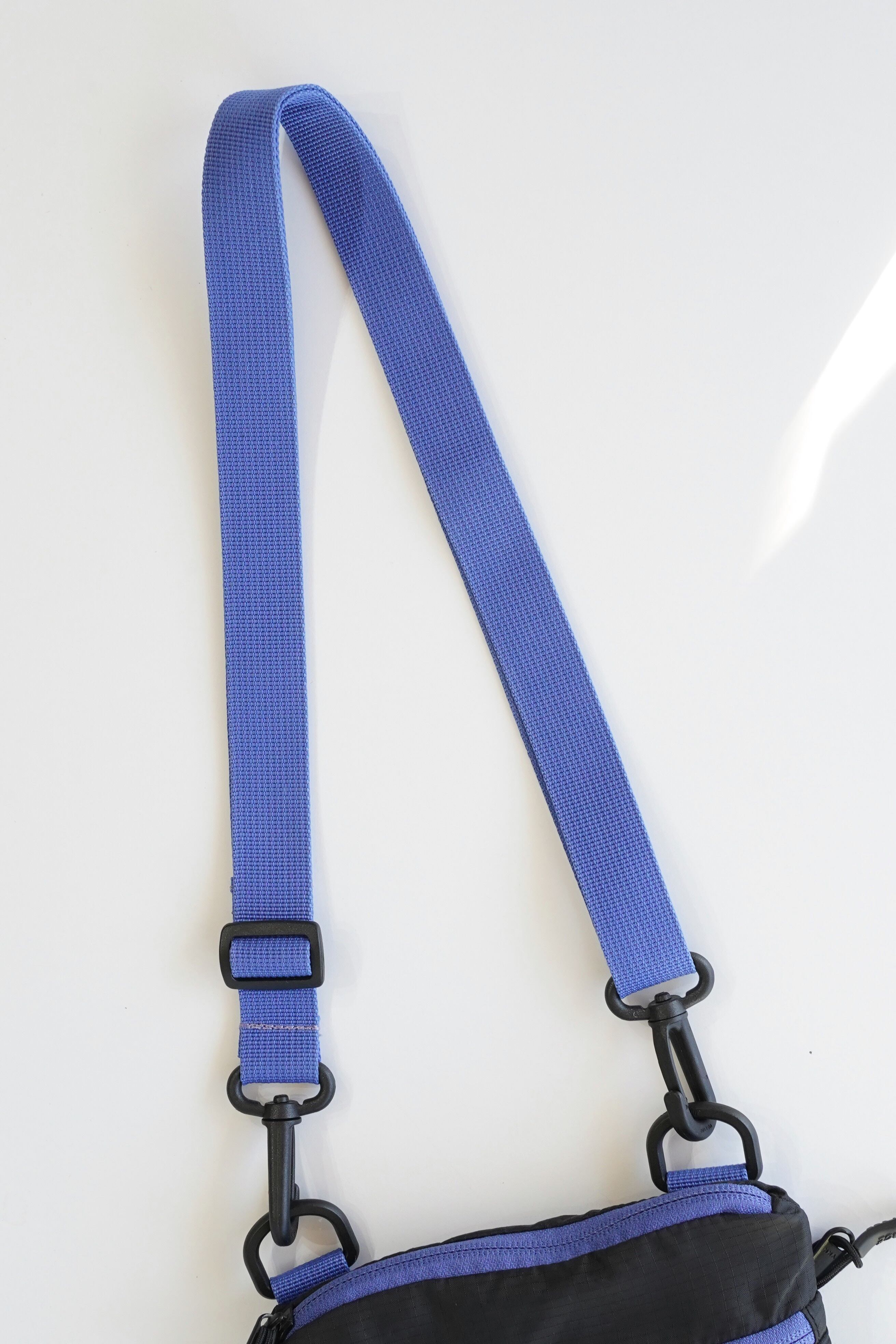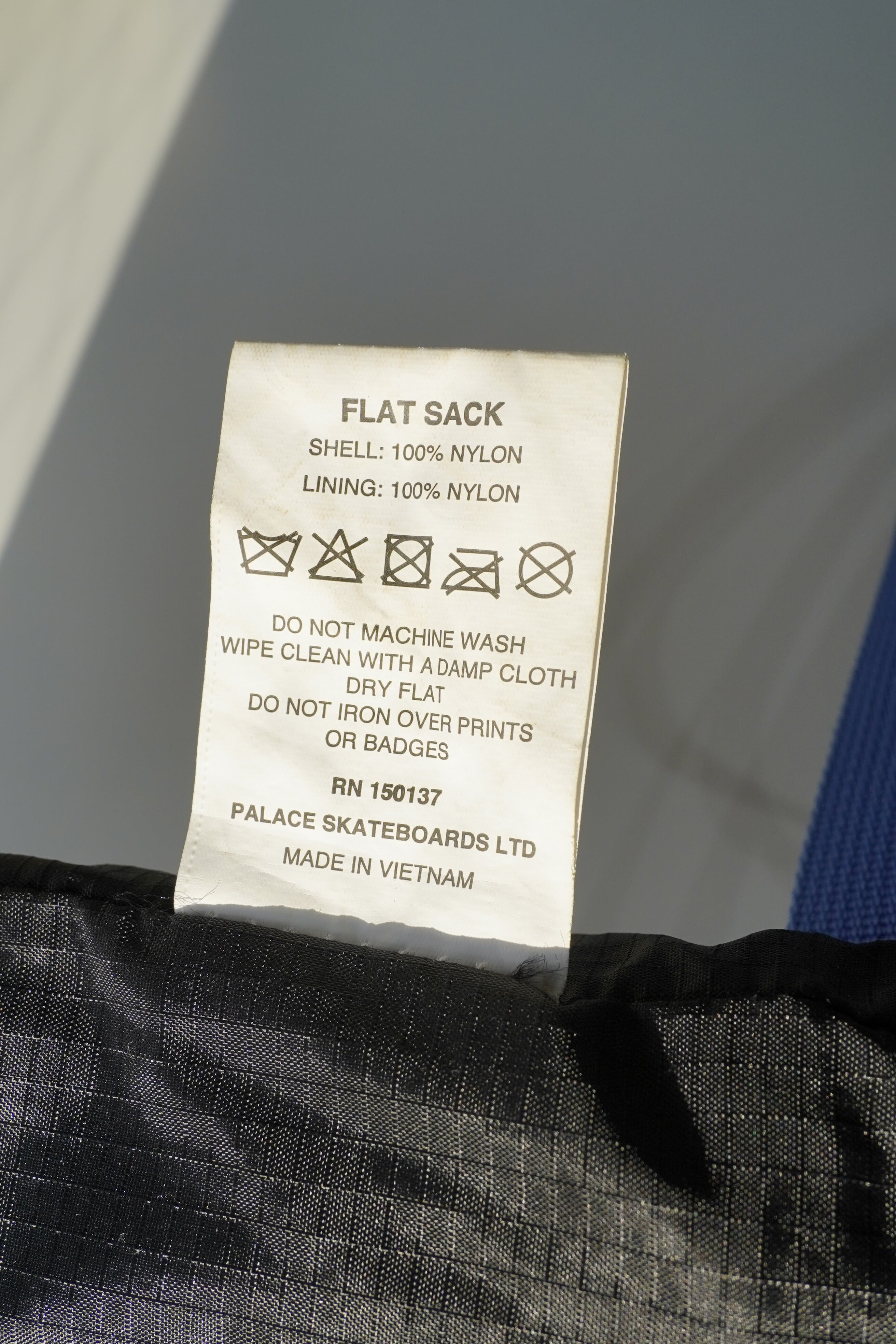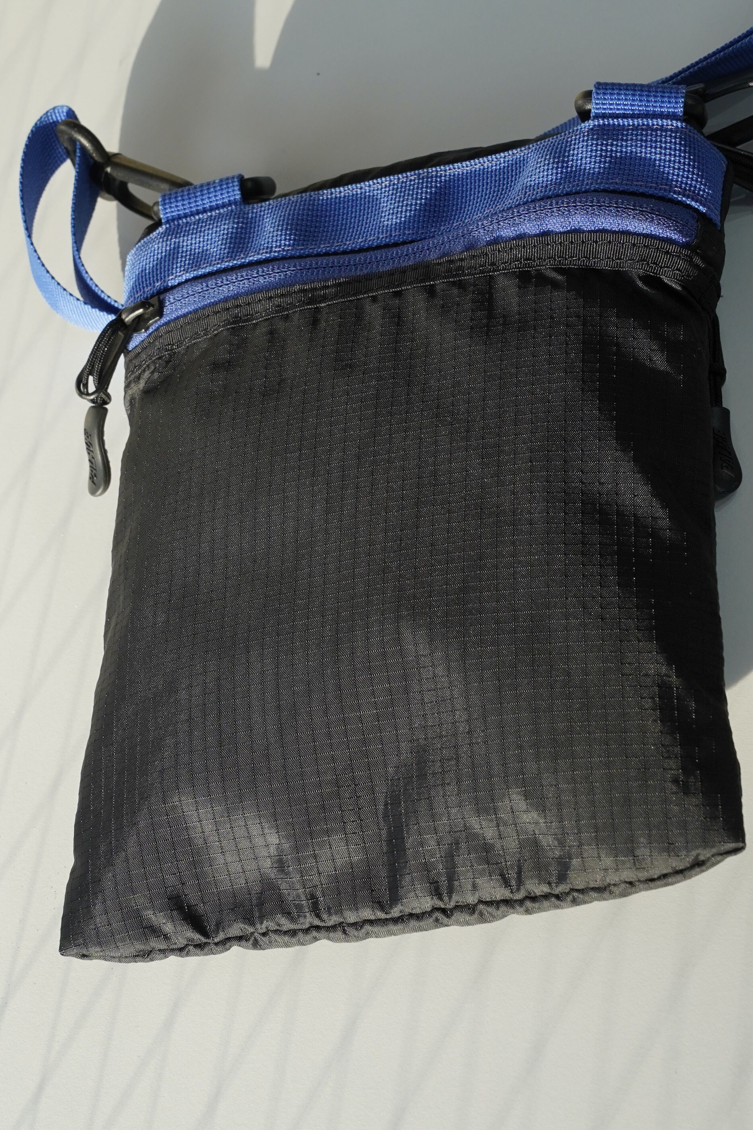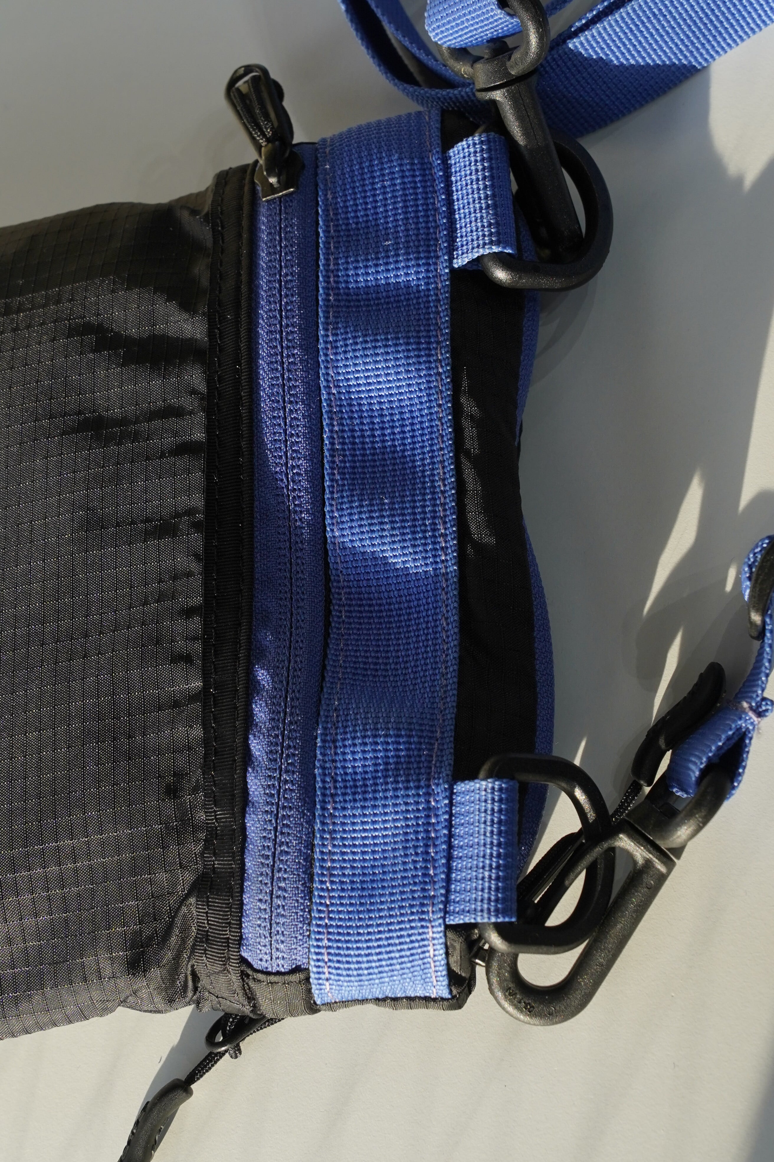 ブラックのリップストップナイロンに、鮮やかなブルーのストラップとジップテープを合わせた当時特有の配色。