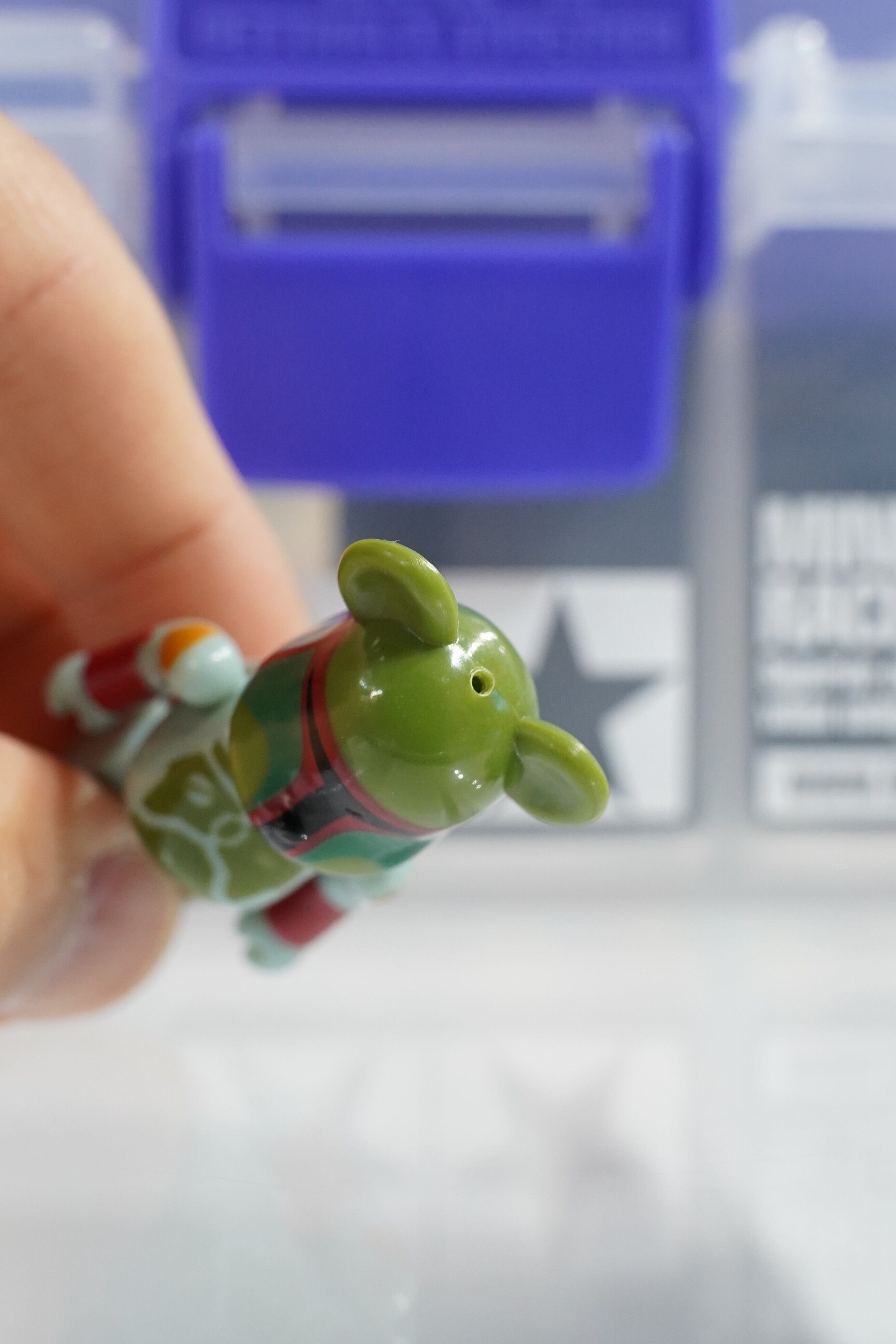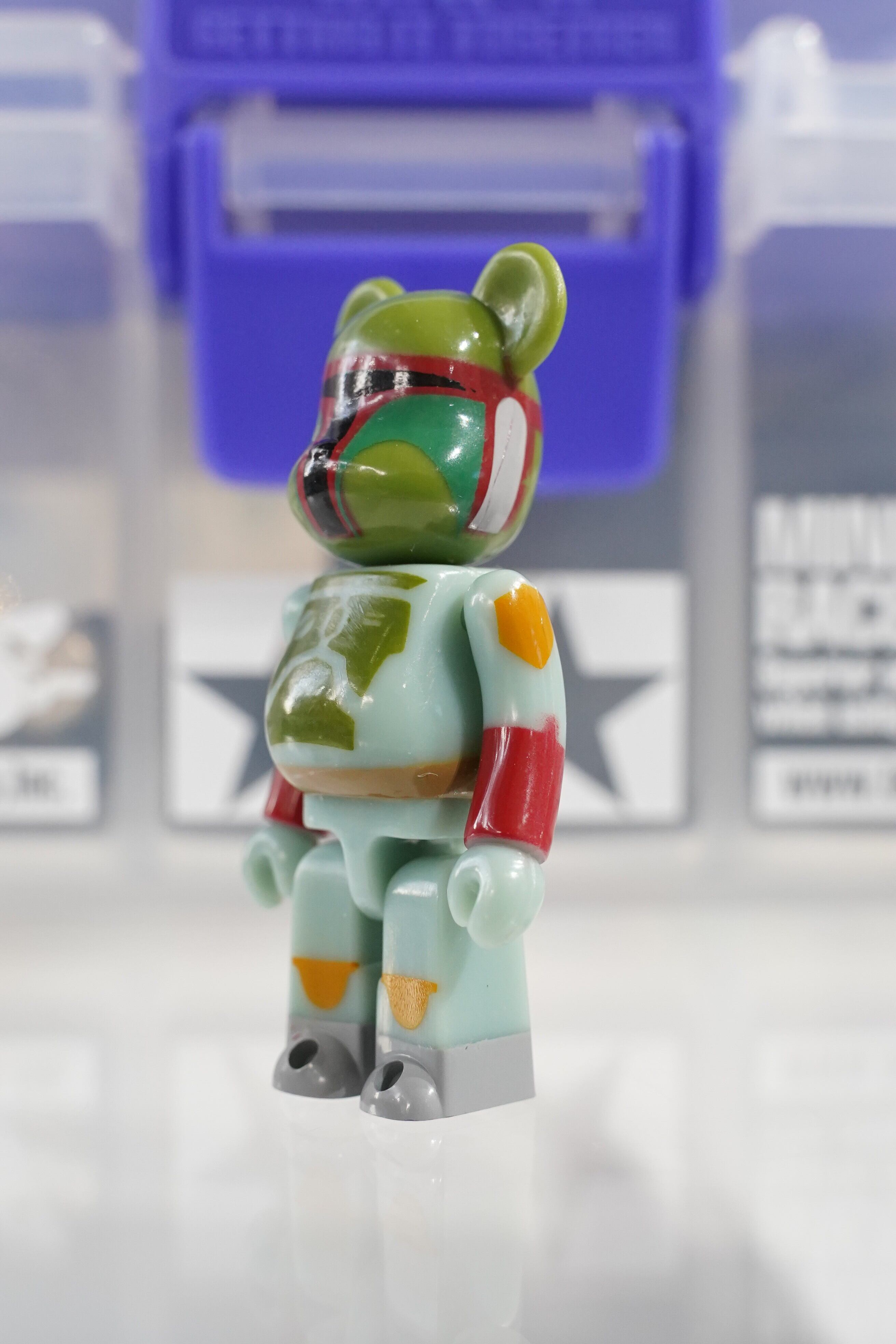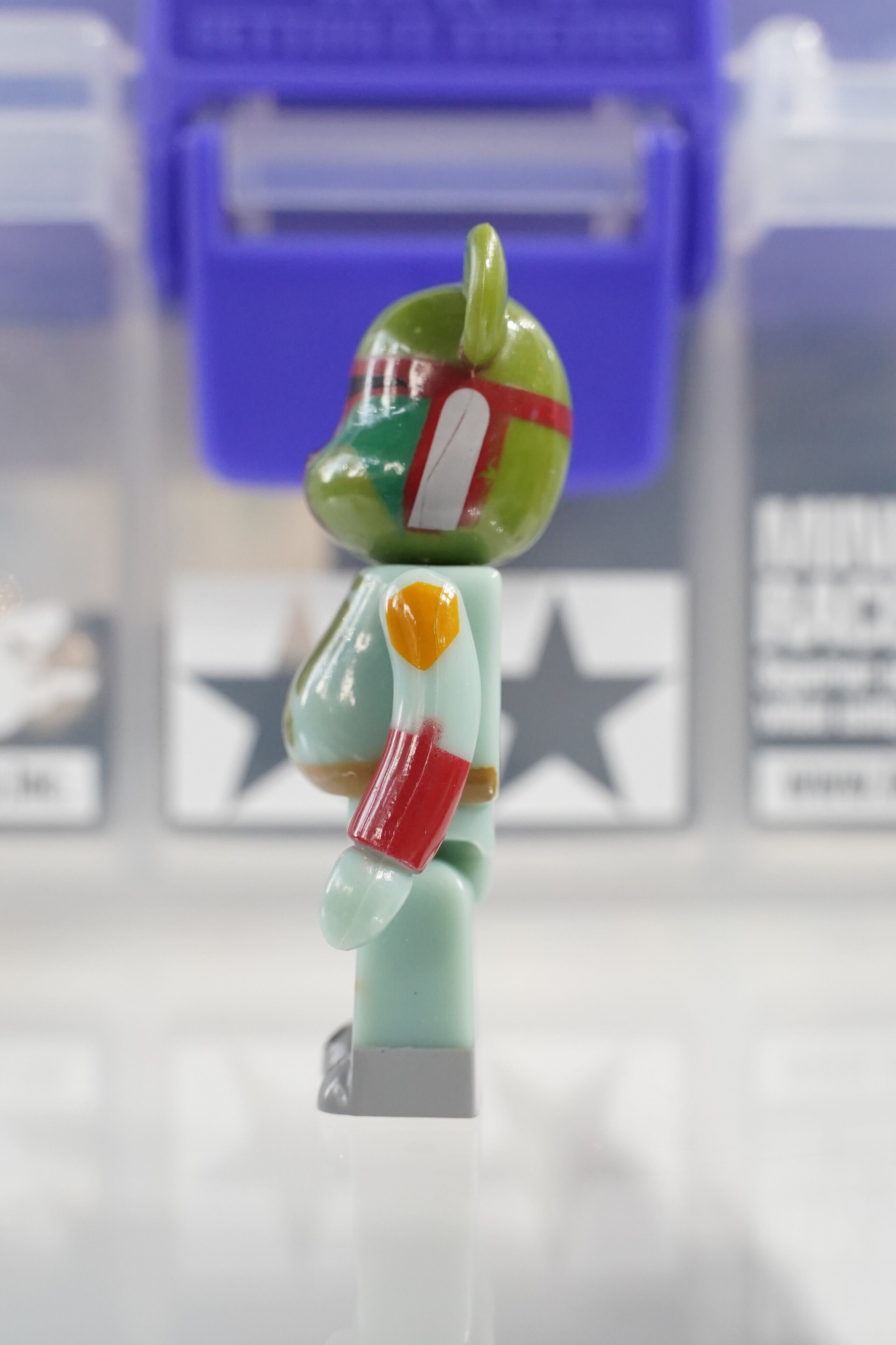 淡いグリーン系のアーマー、赤いバイザーの特徴的なヘルメットラインをBE@RBRICKのフォルムに落とし込んだデザインで、シリーズの中でもコレクター人気が高いモデル。