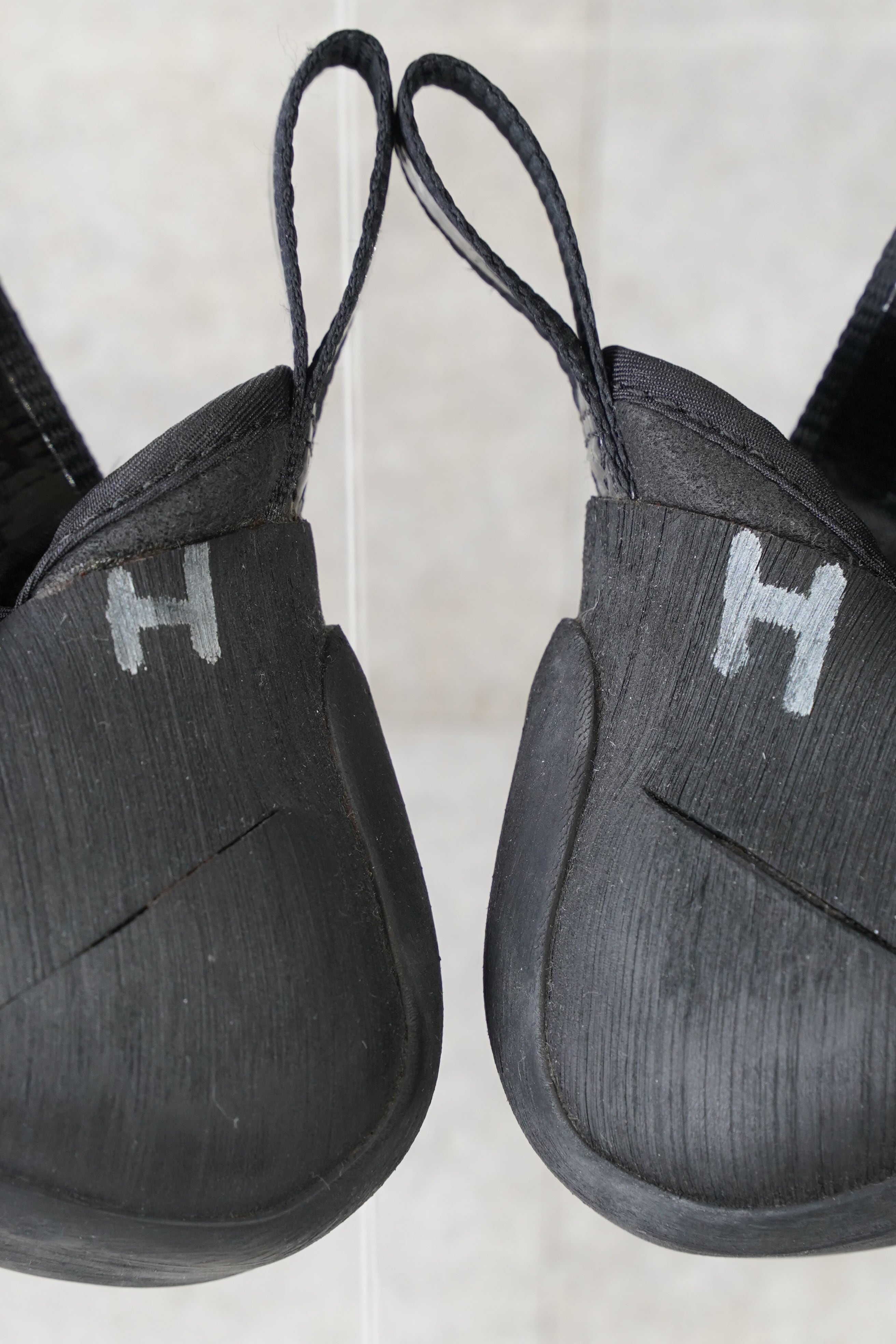 外岩使用に伴うトウ表面の色変化あり(写真参照)