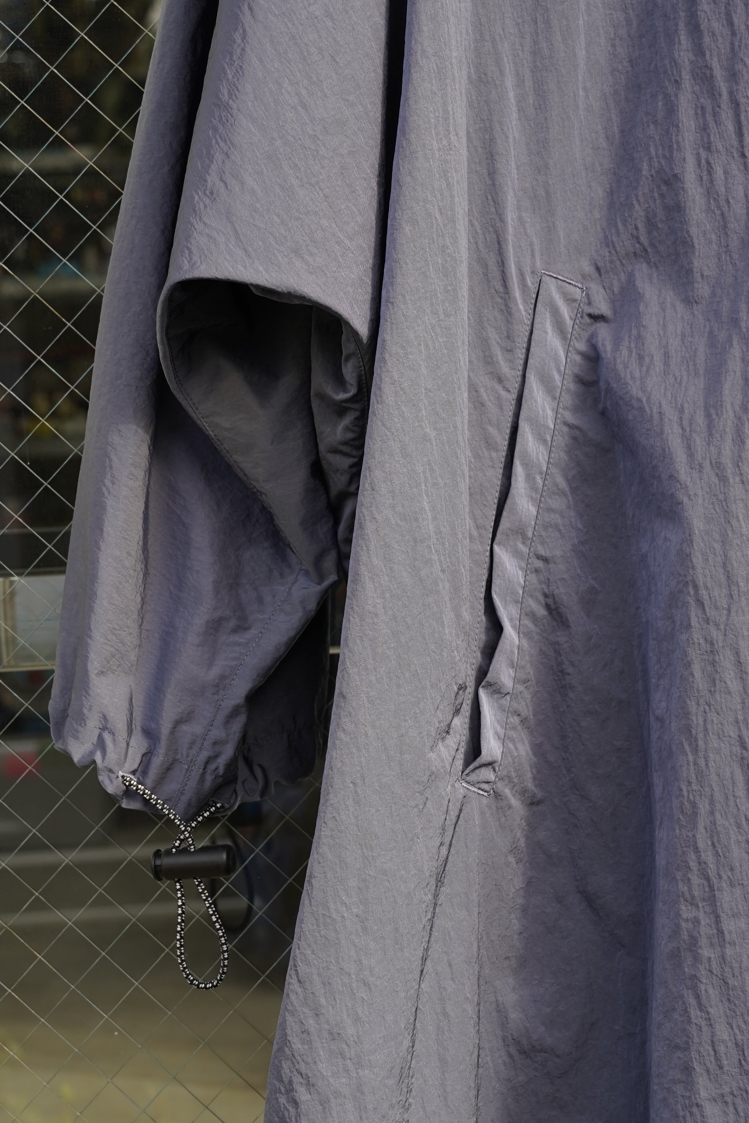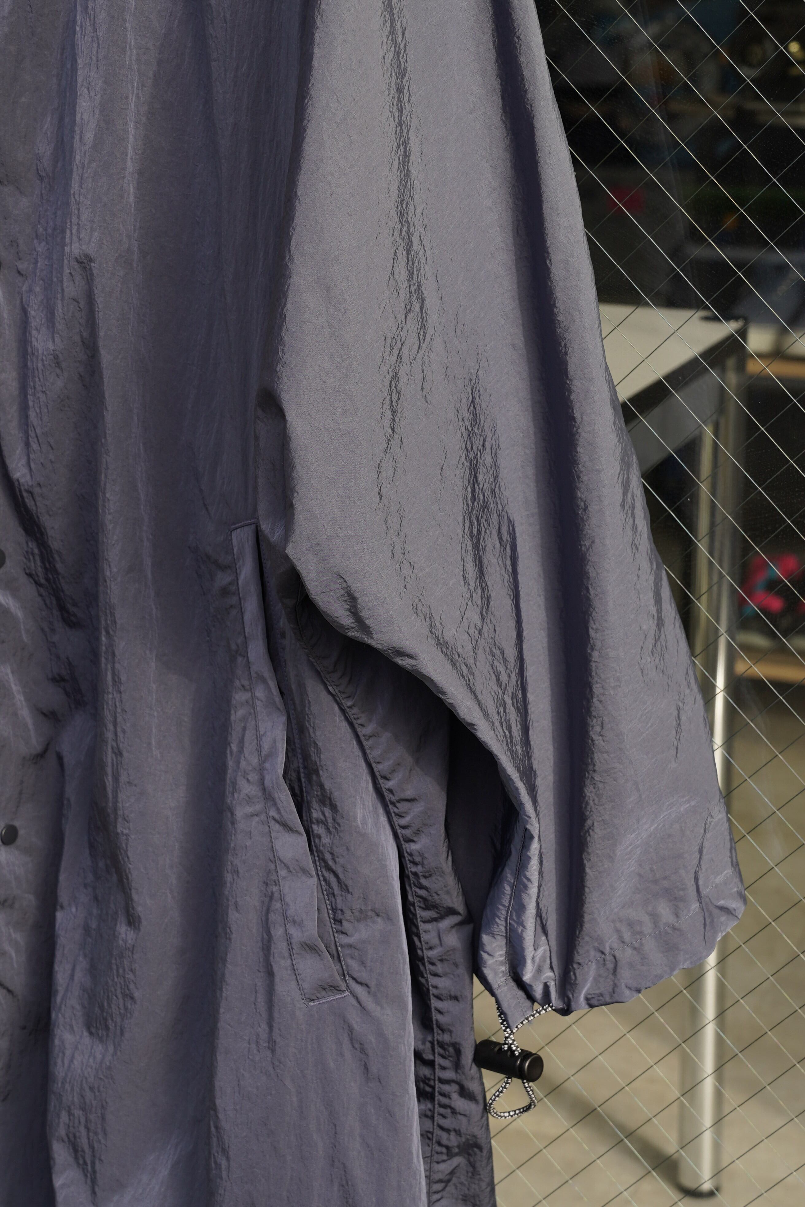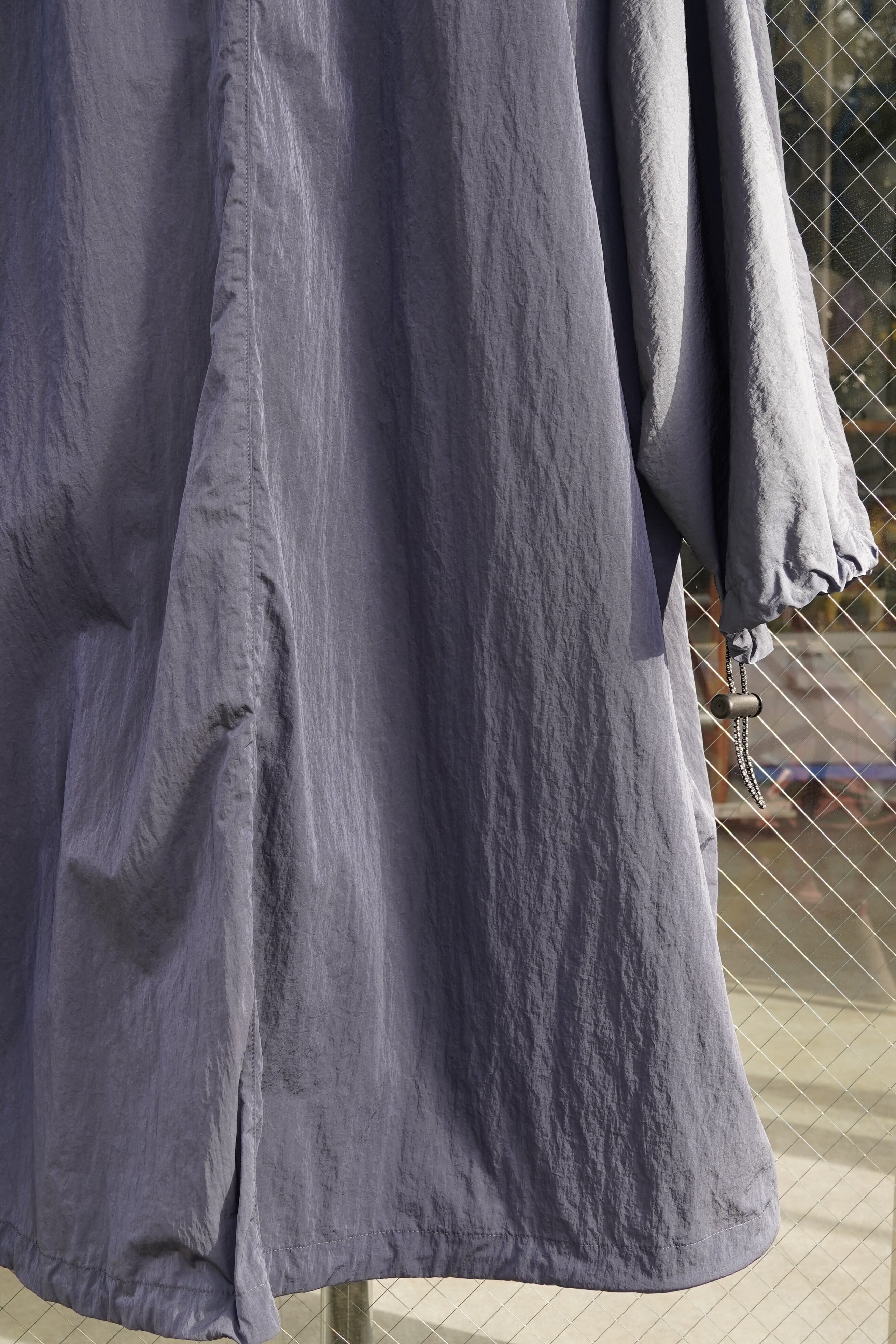 ブルゾンやジャケットというよりも、軽いナイロンコートとしての位置付けがしっくりくる一着です。