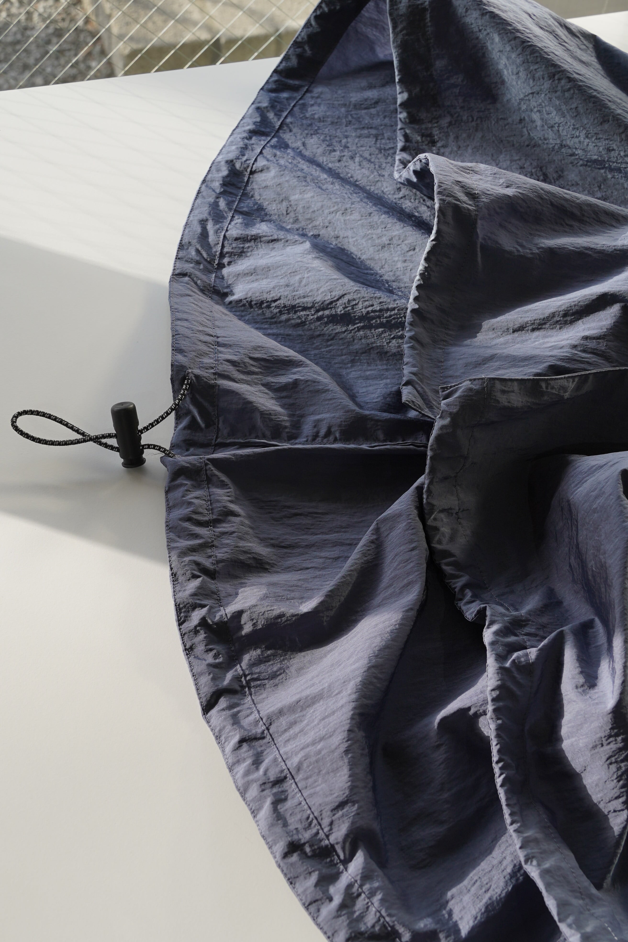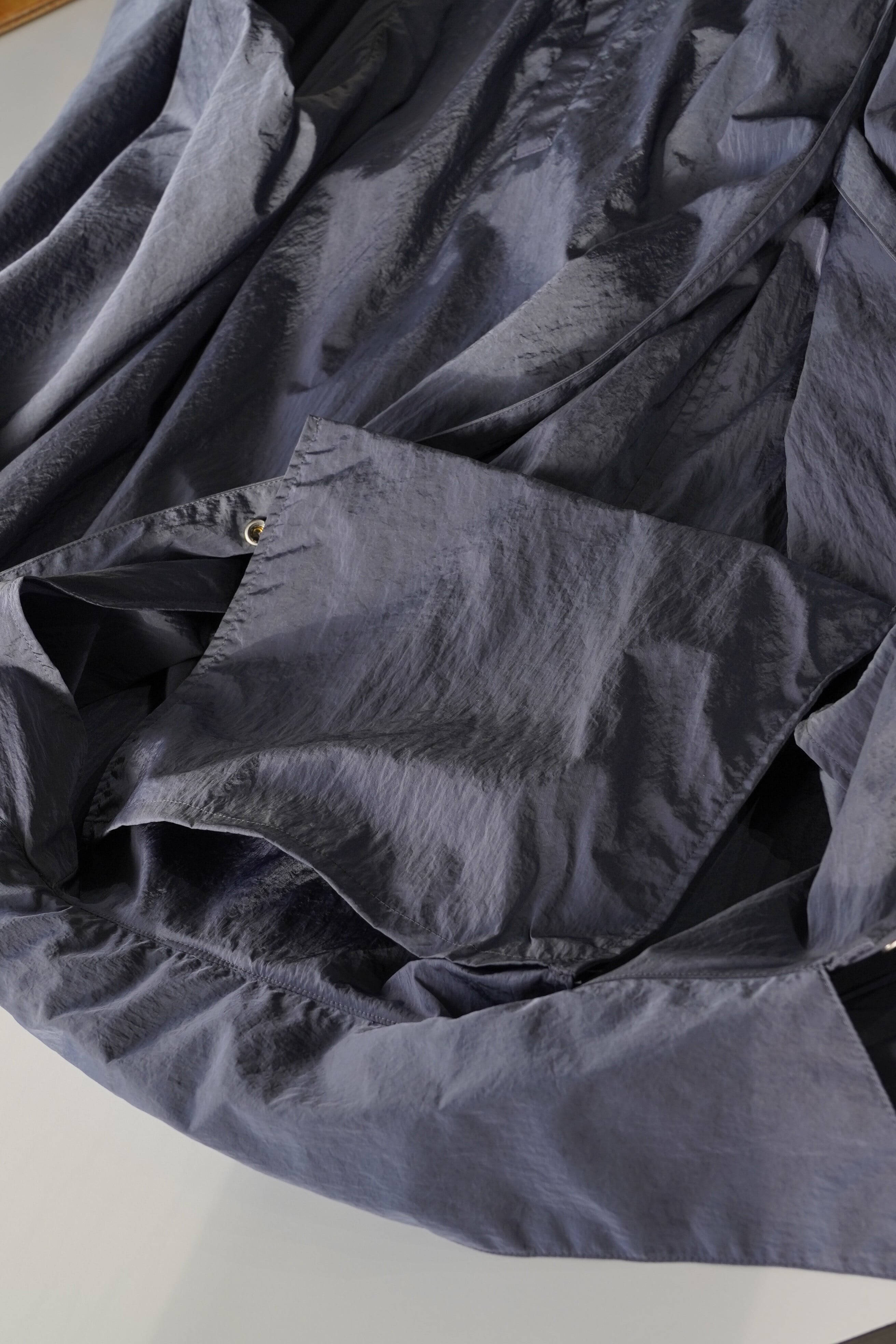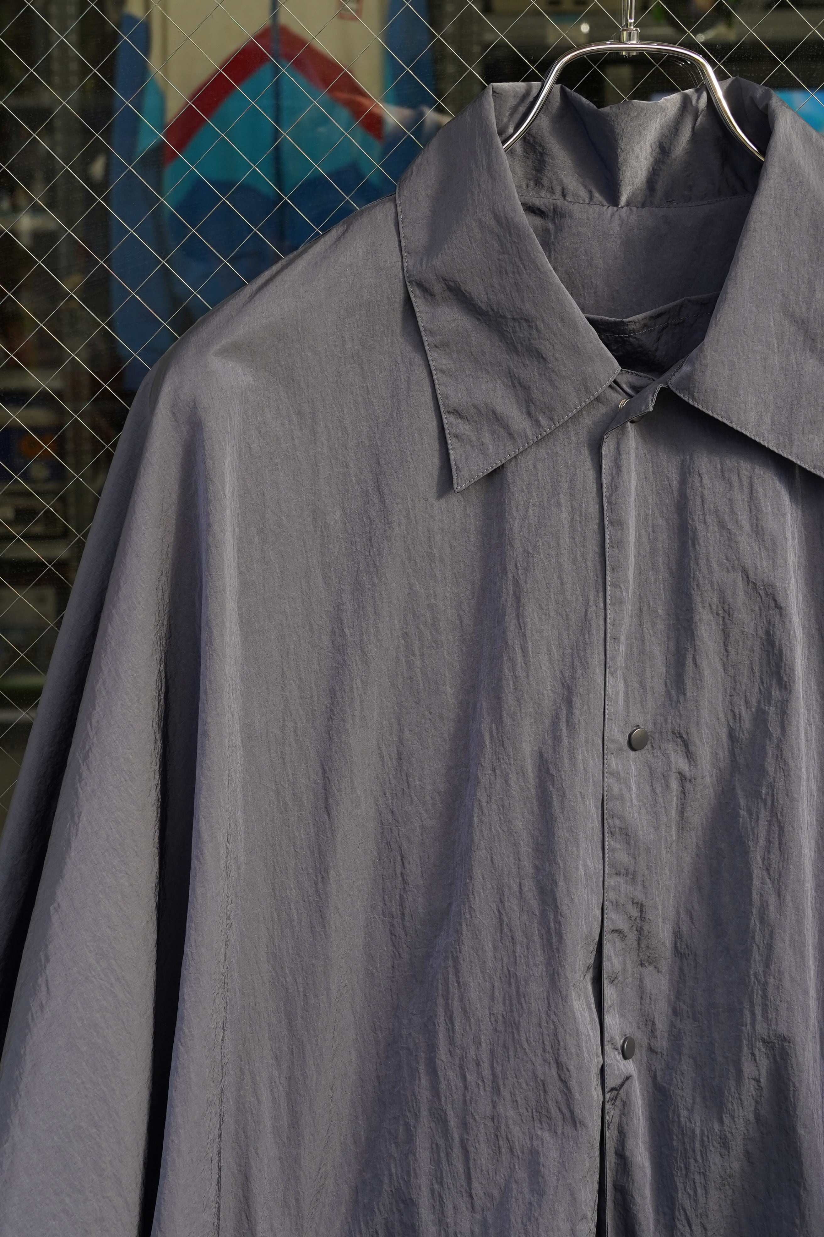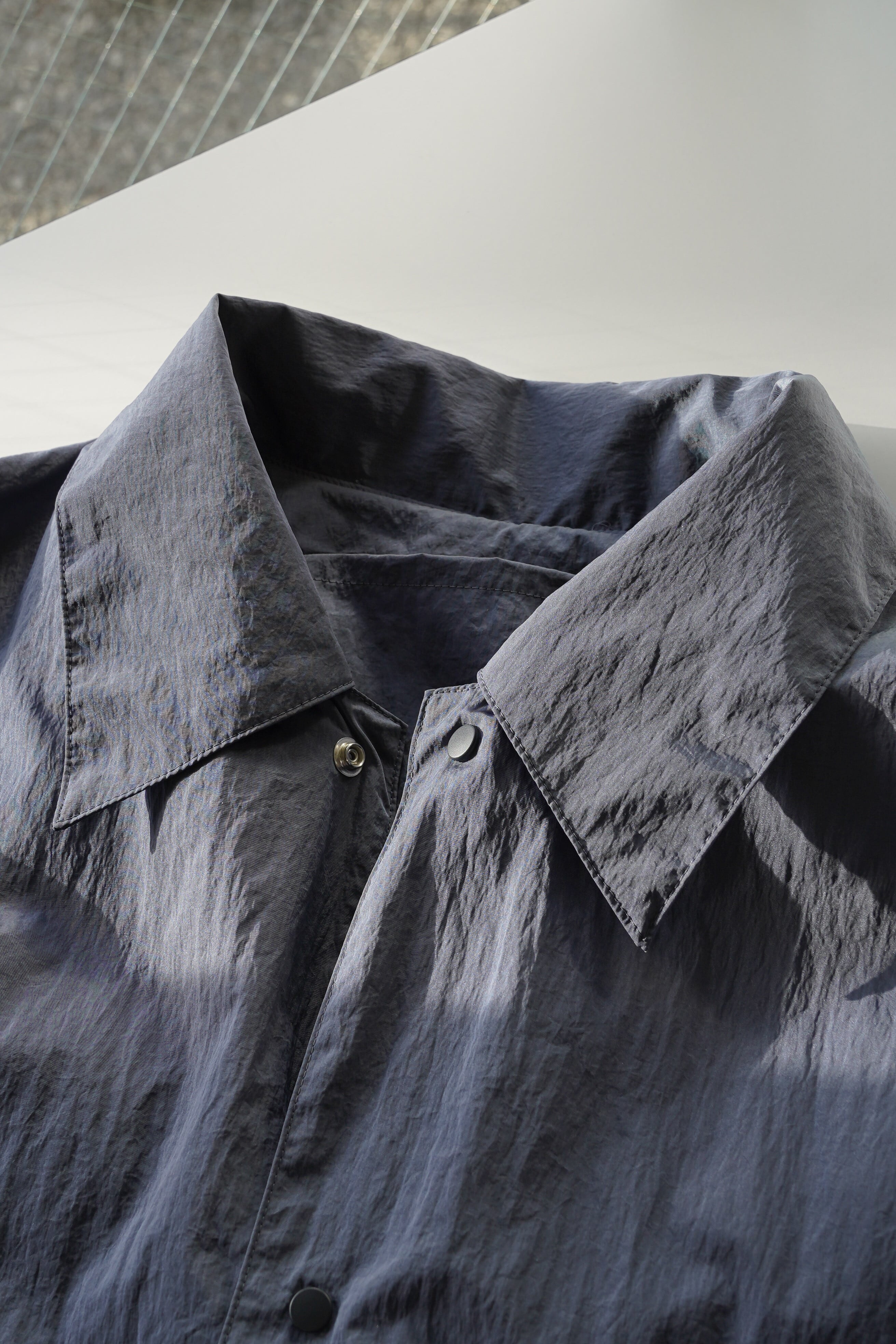 ブルゾンやジャケットというよりも、軽いナイロンコートとしての位置付けがしっくりくる一着です。