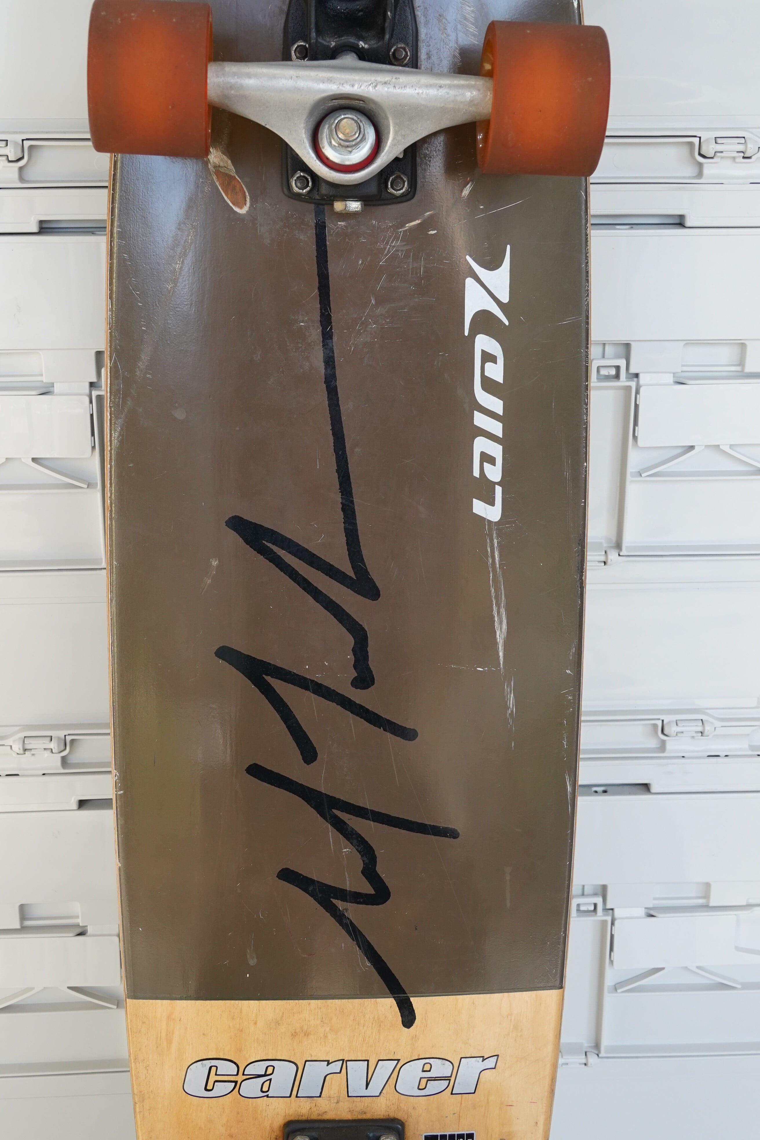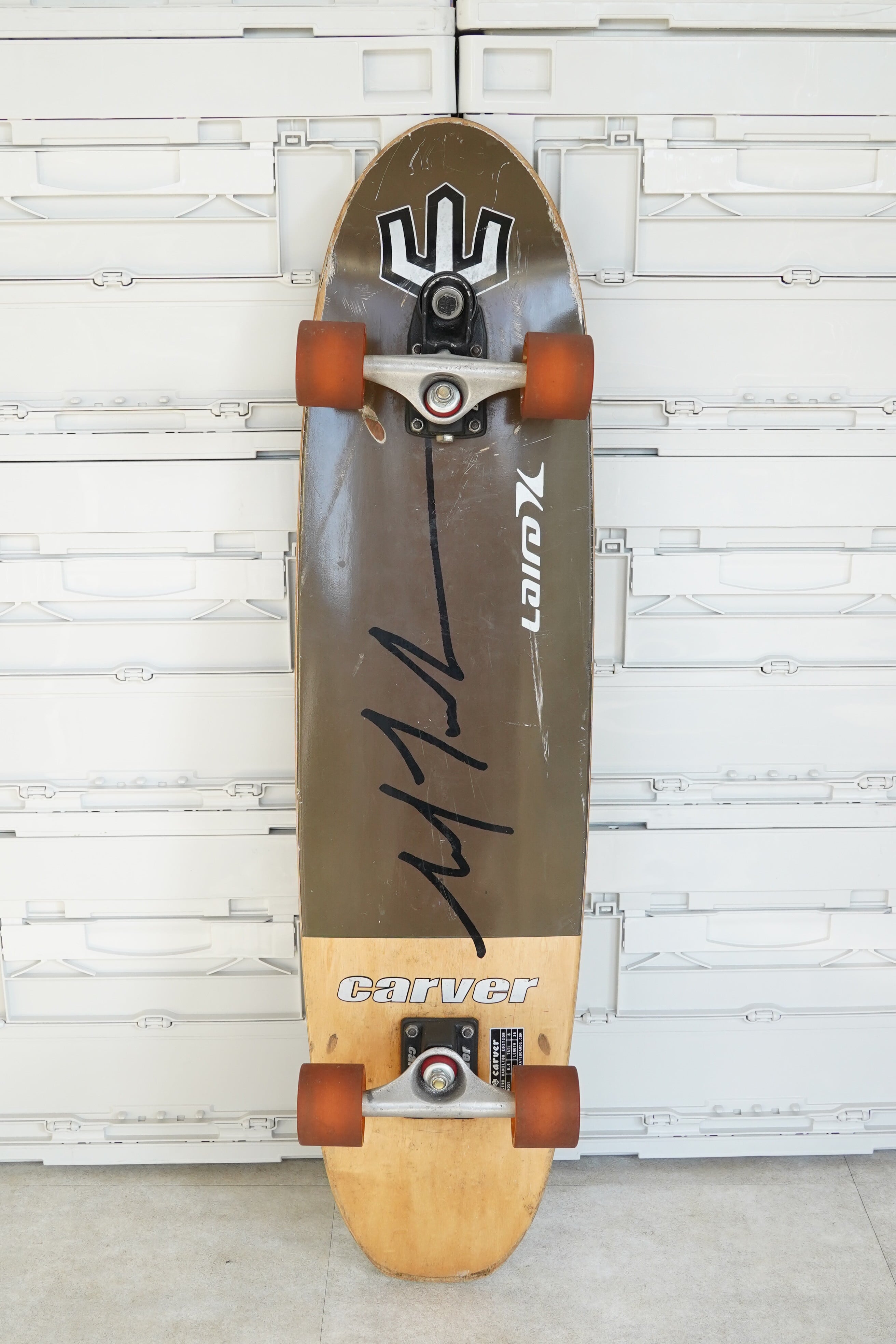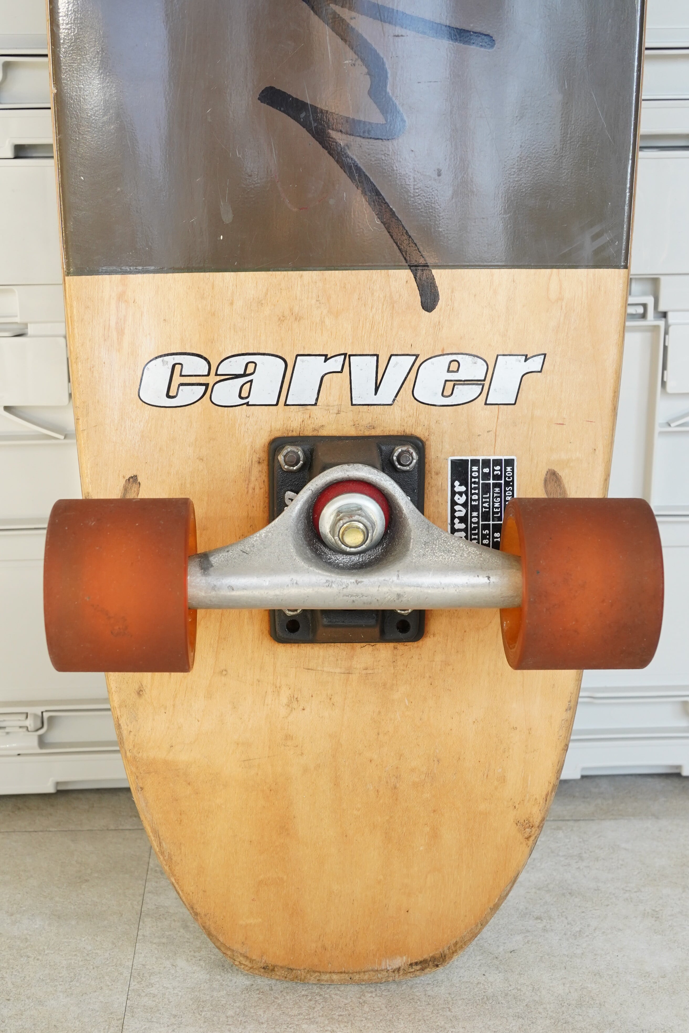 本モデルは、Carver Skateboards公式のデッキスペック表記が貼付された