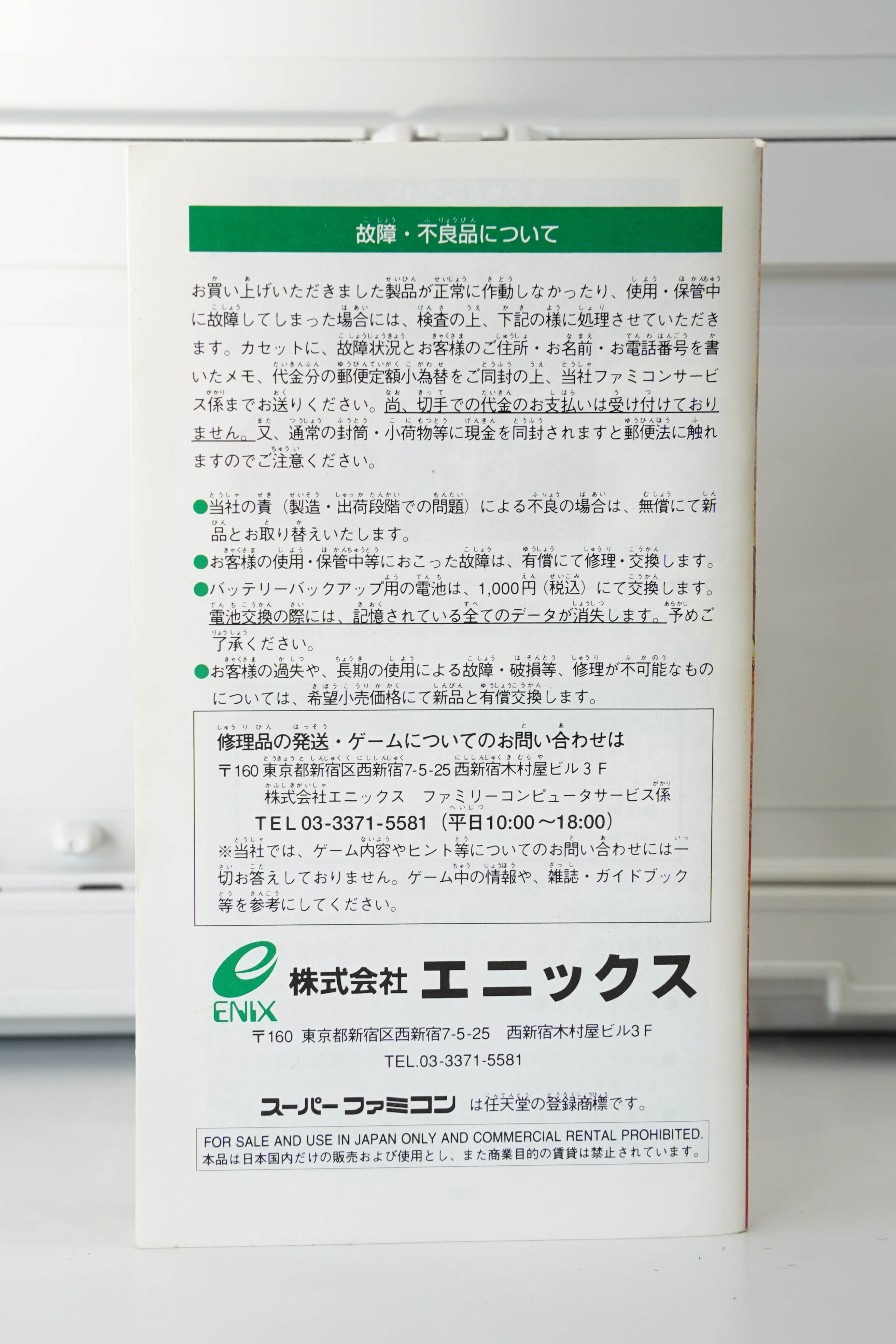 ・機種:スーパーファミコン(SFC/NTSC-J)
