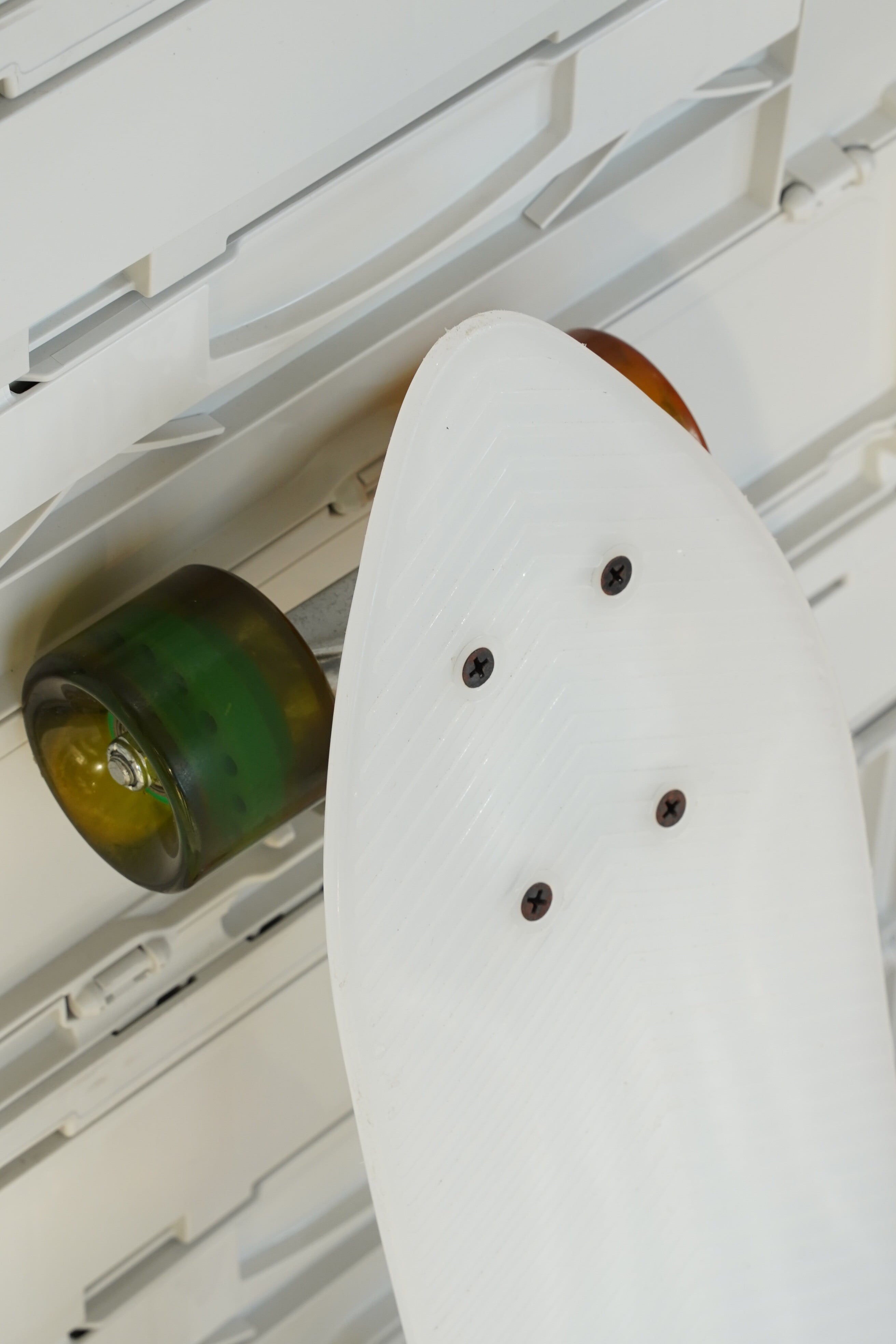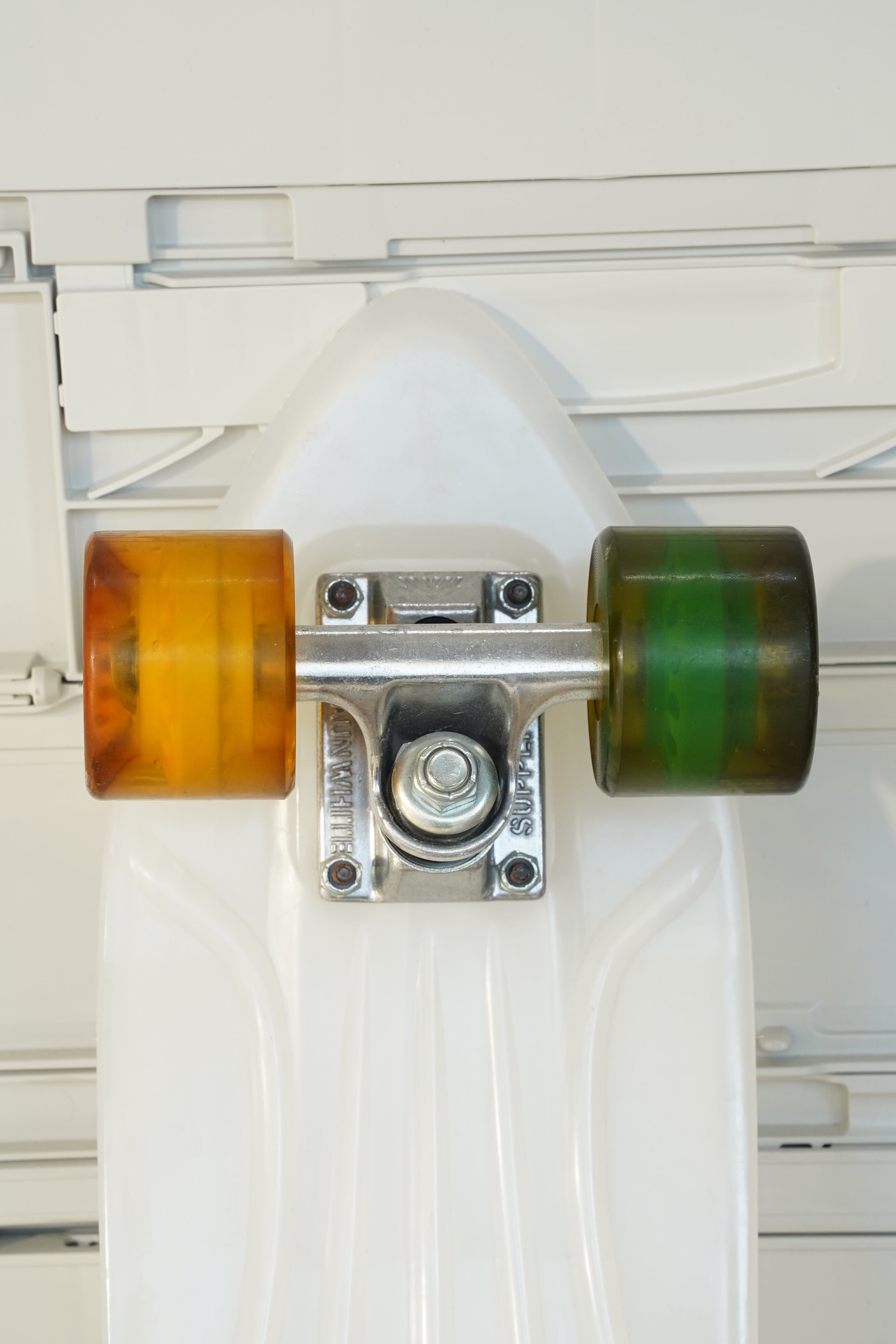 ホワイトデッキをベースにした コンプリート・クルーザースケートボード です。