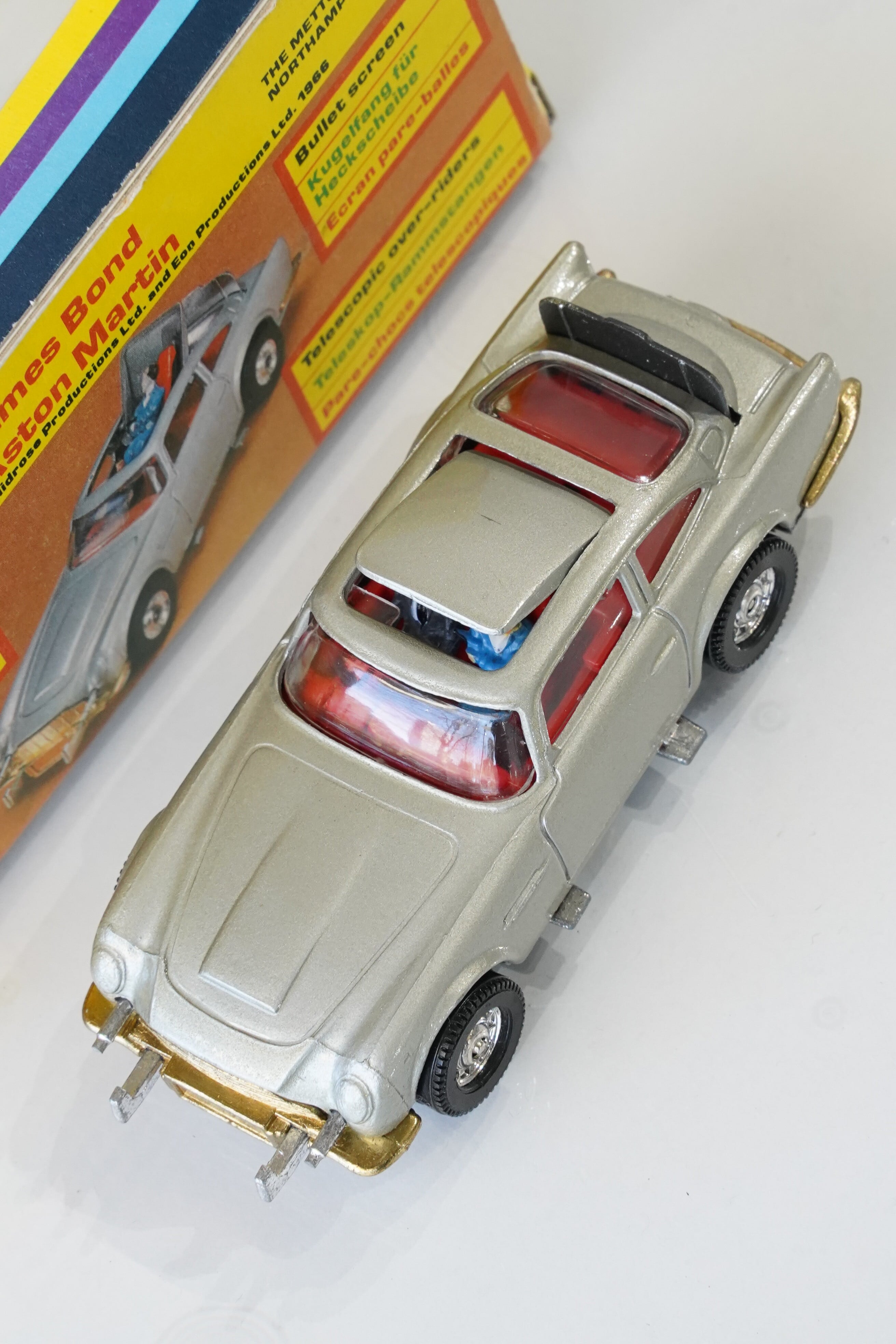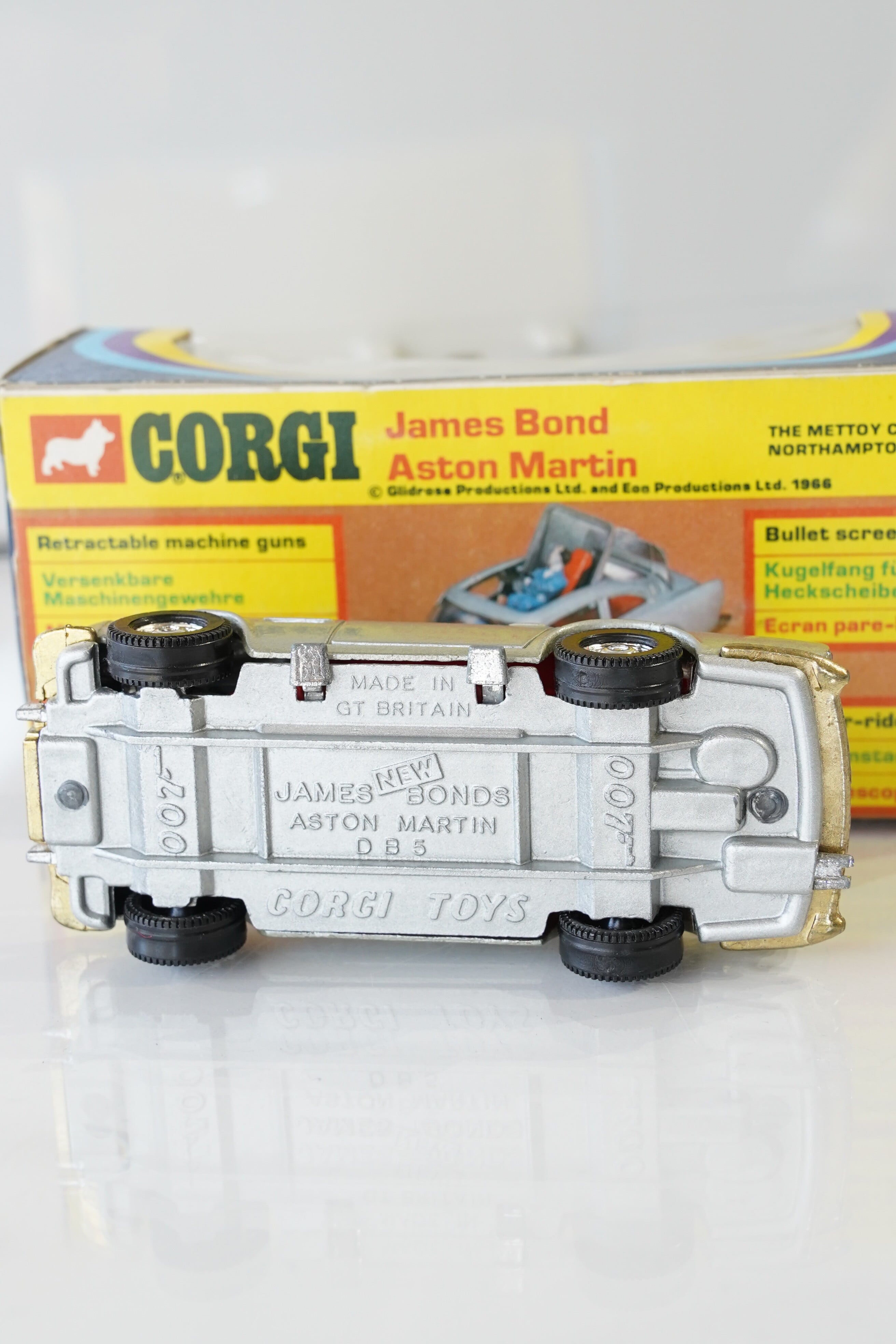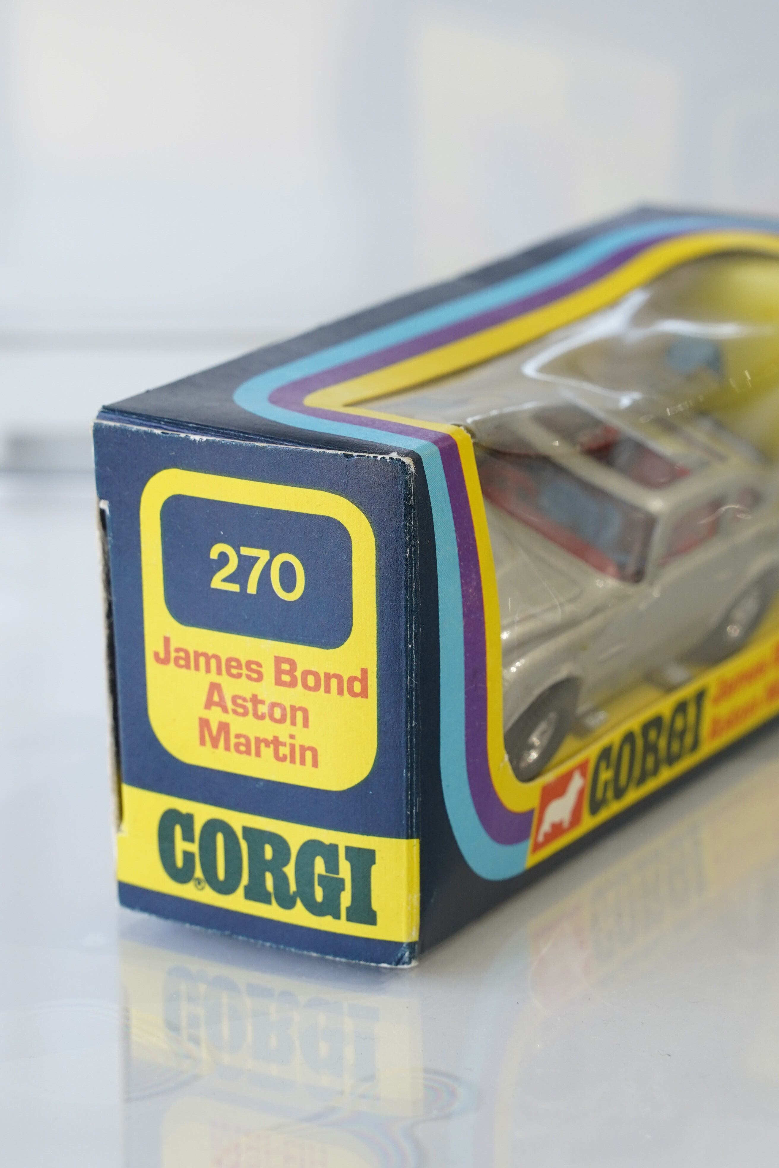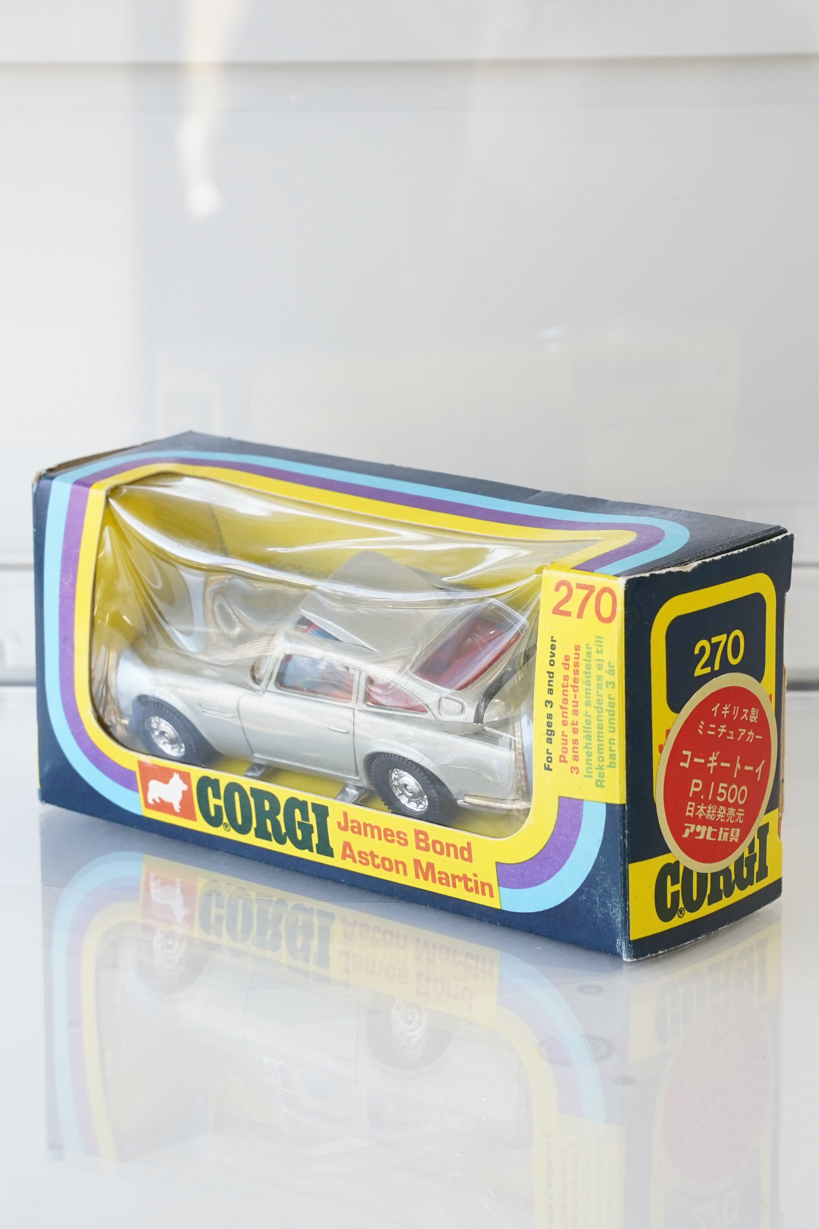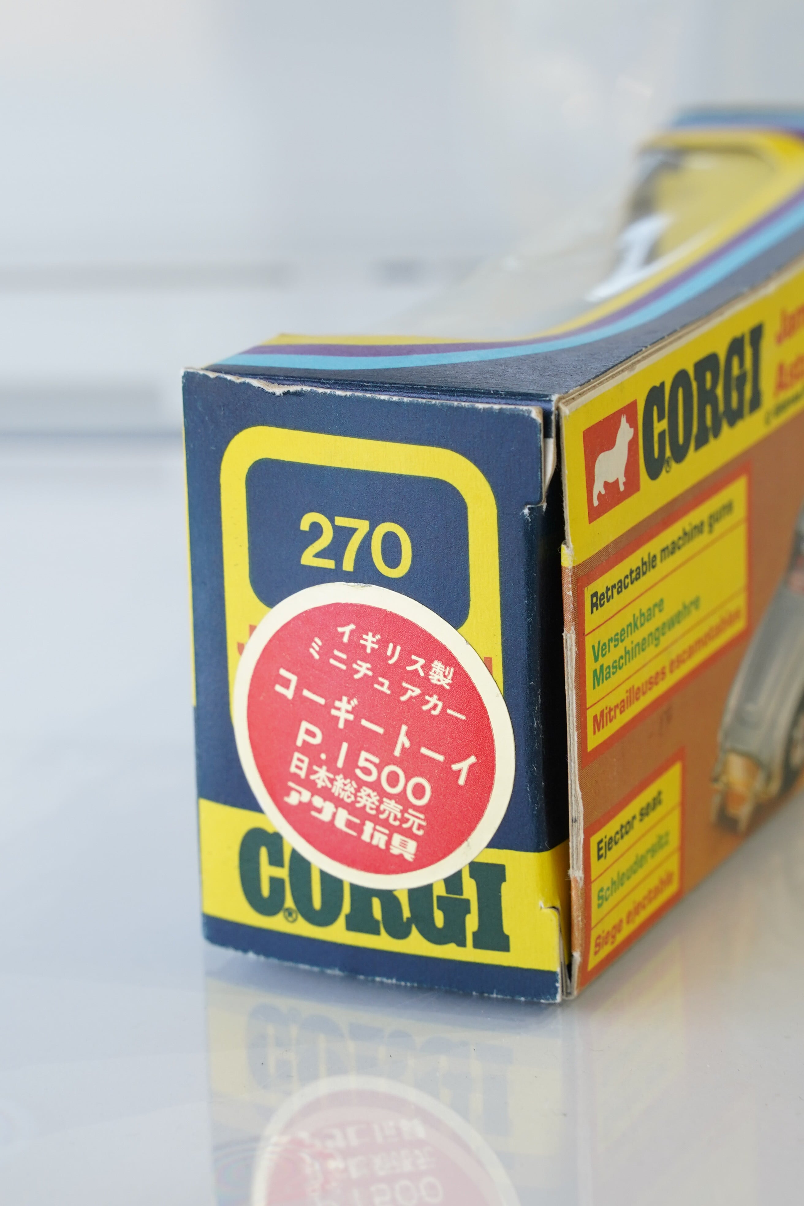 【英国製1977年】CORGI 007 ジェームズボンド アストンマーチン DB5 No.270/James Bond Aston Martin DB5 箱付き/アサヒ玩具ラベル付/フィギュア3体/ギミック完動