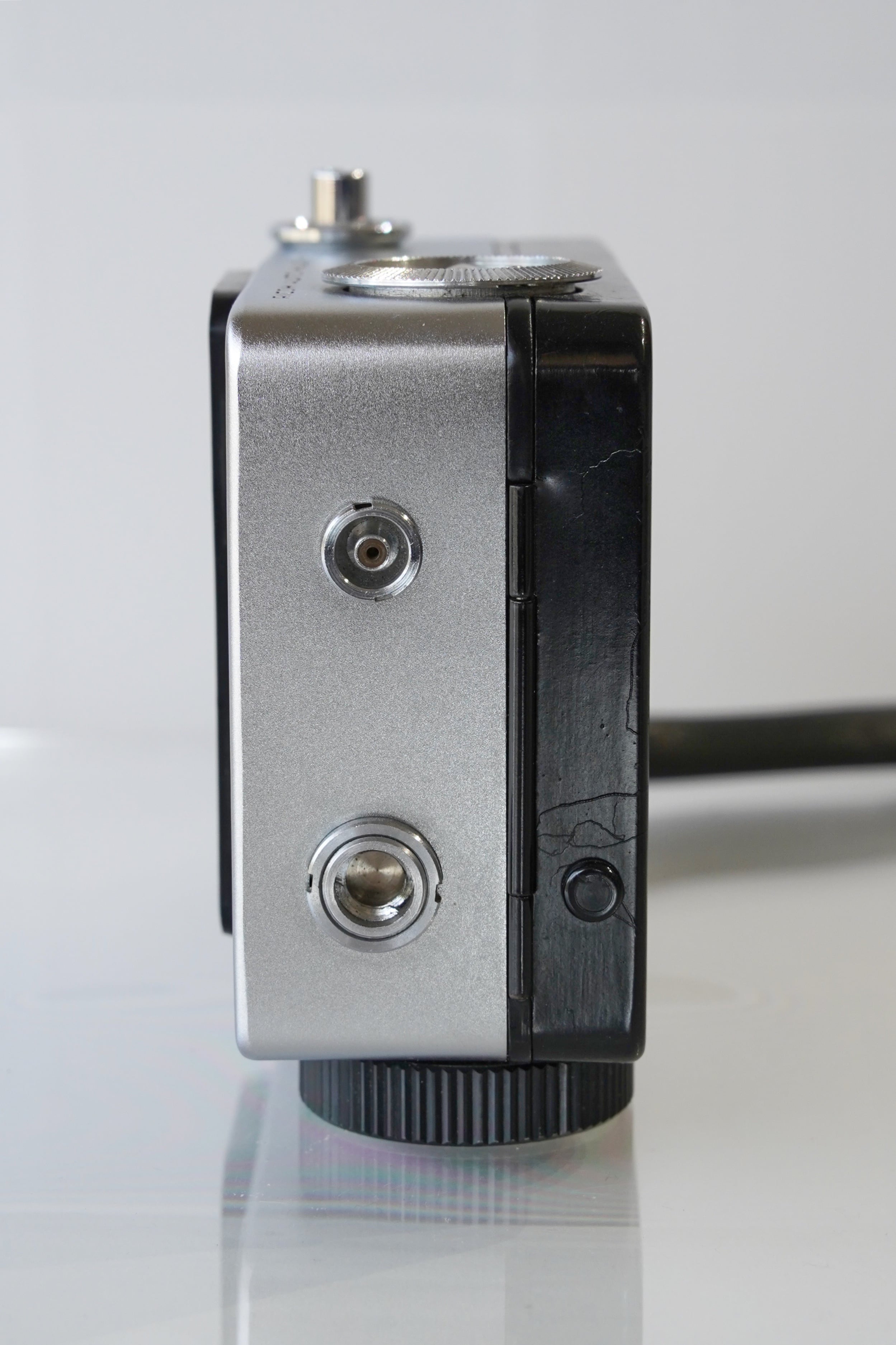 ゼンマイ式自動巻き上げと、電池を使わないセレン露出計を備えた革新的なカメラで、