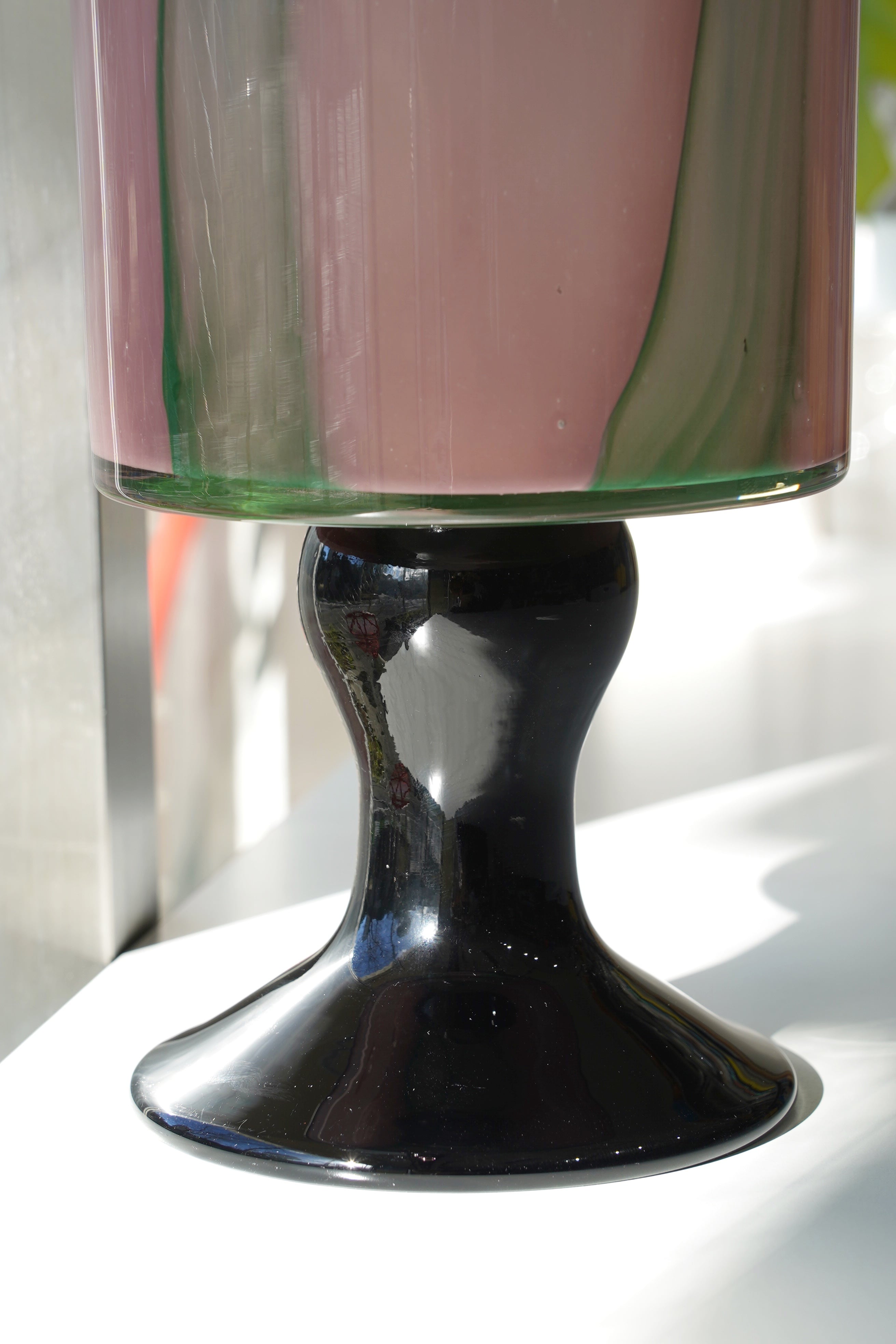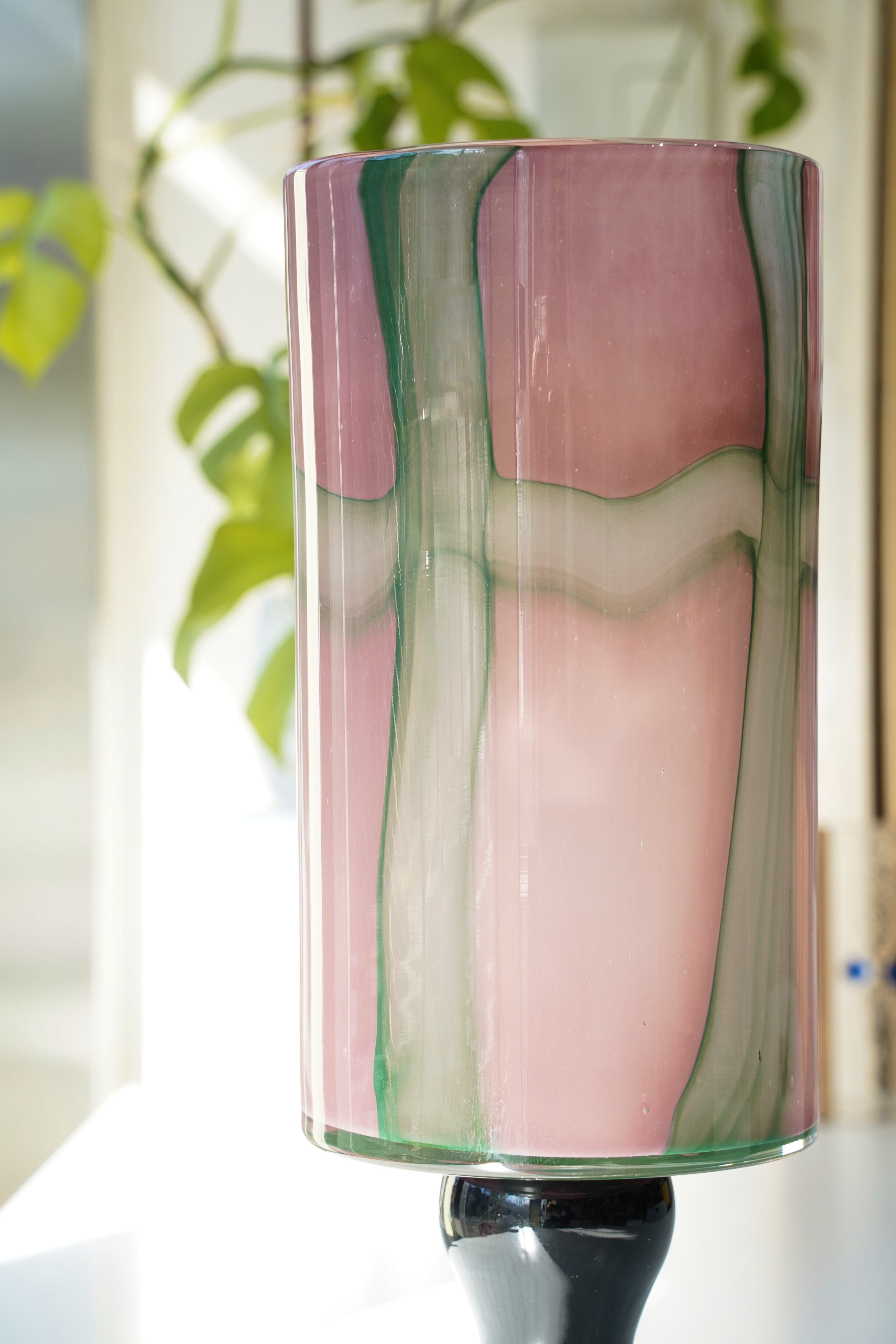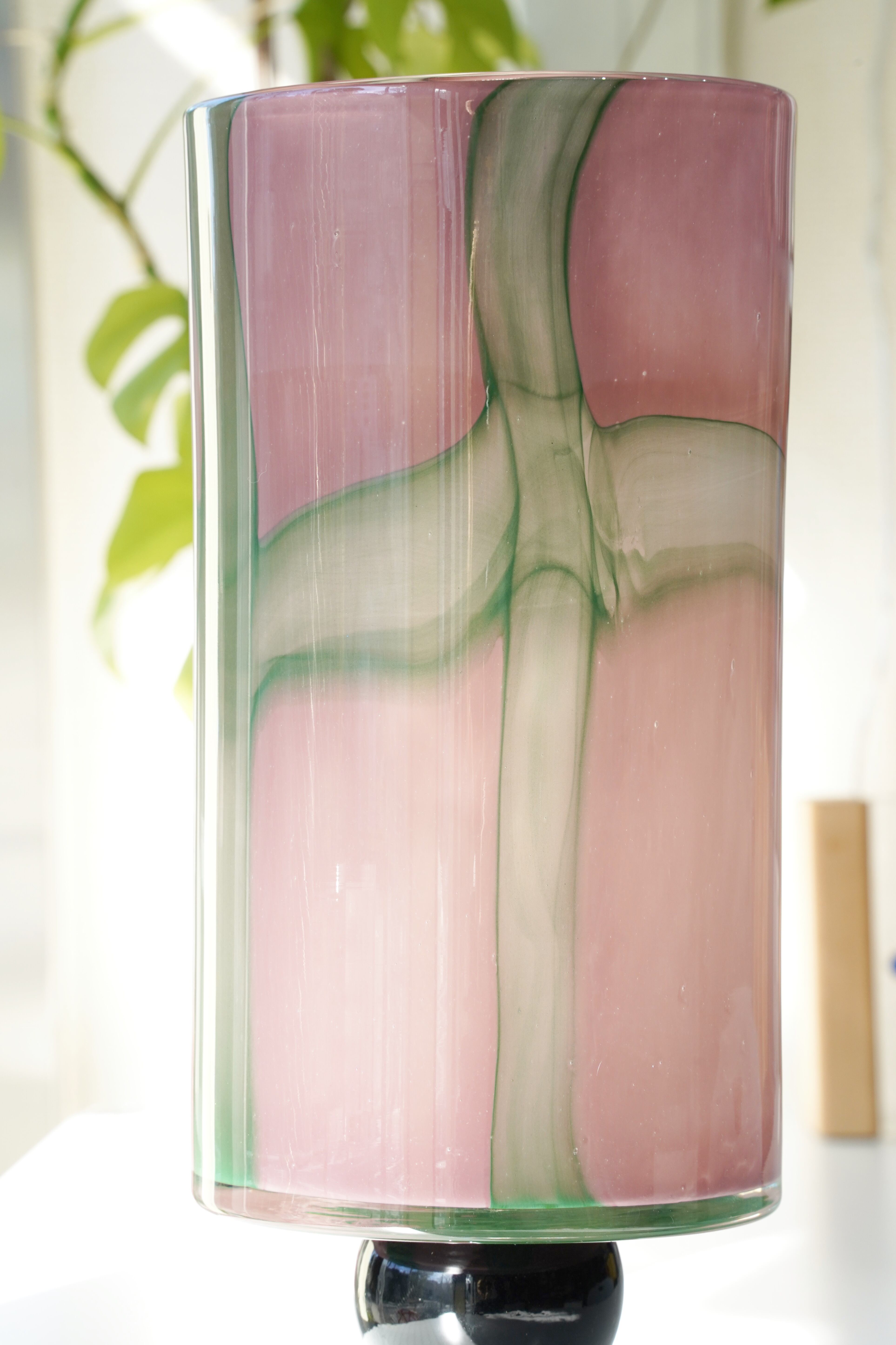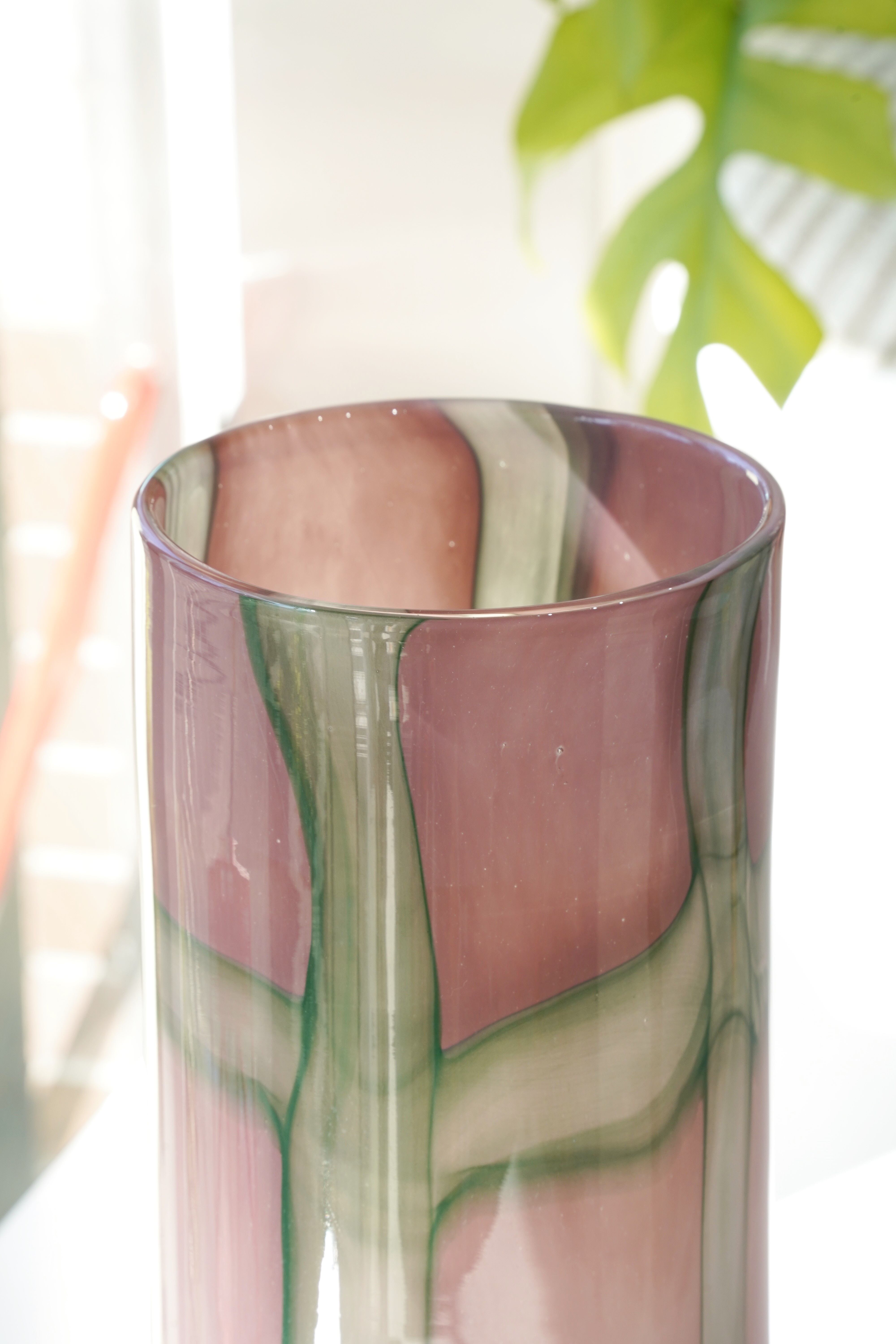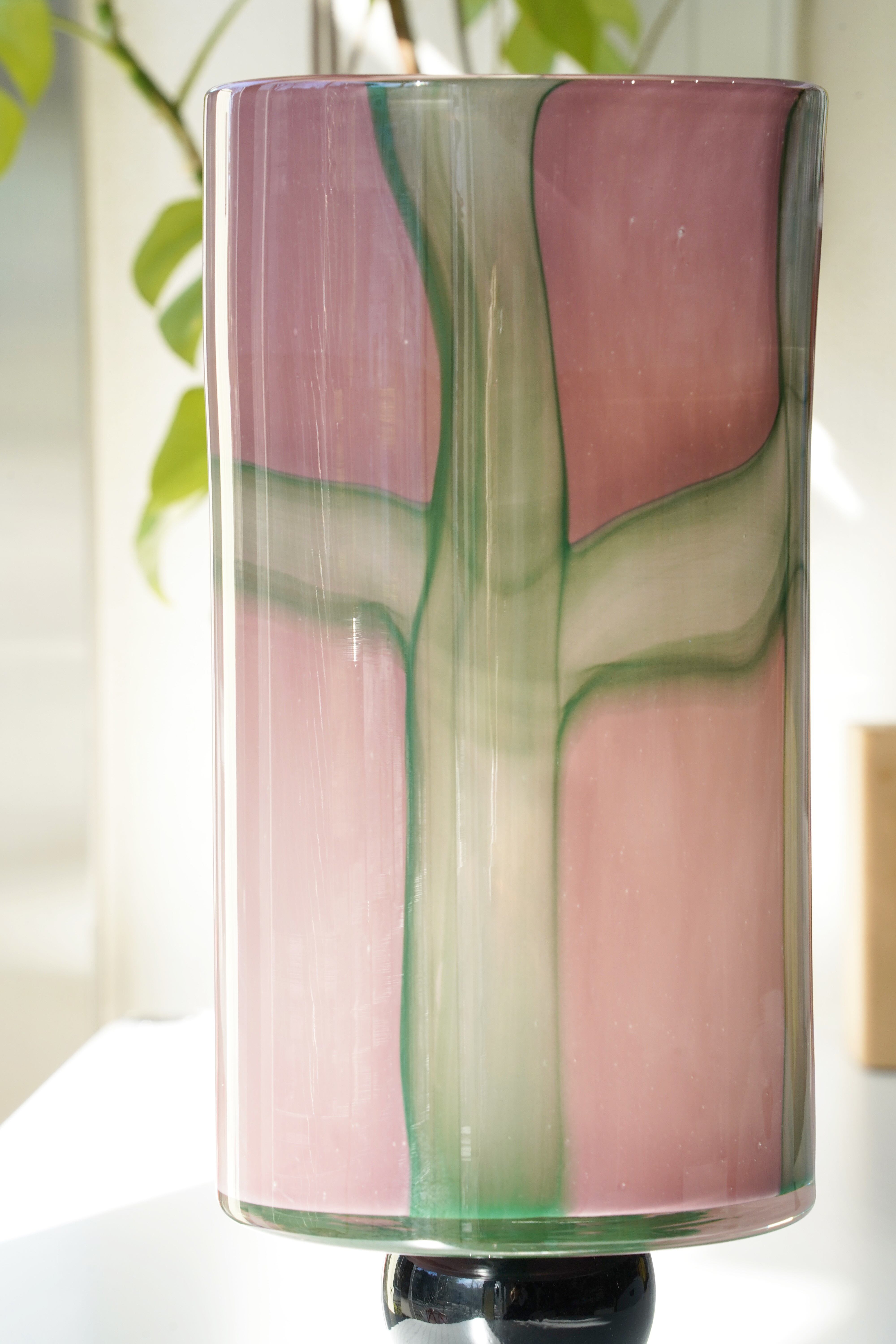オーロラガラス フラワーベース(ピンク×グリーン) です。