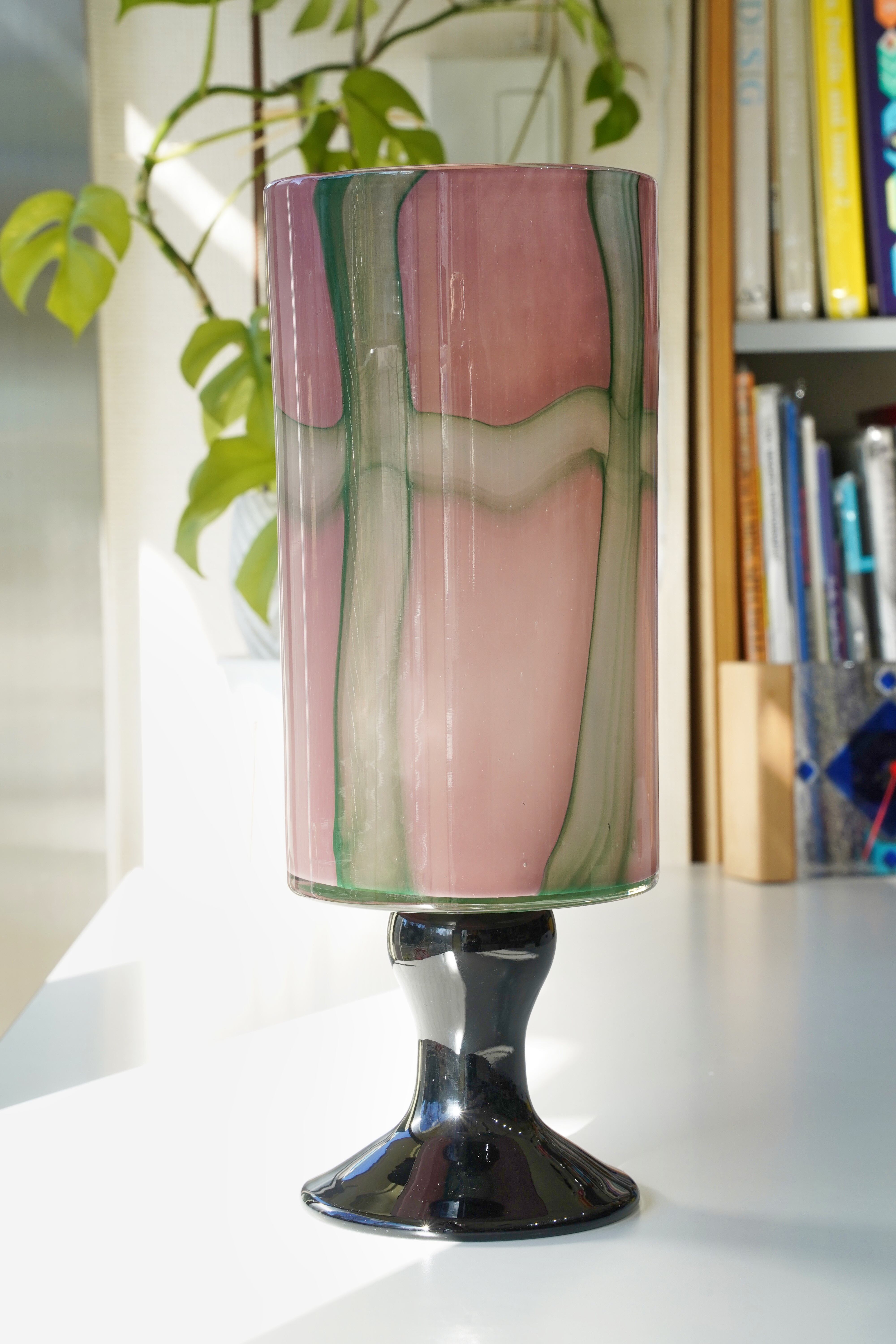 kocol オーロラガラス フラワーベース パープルレッド 脚付き 花瓶 高さ37.5cm