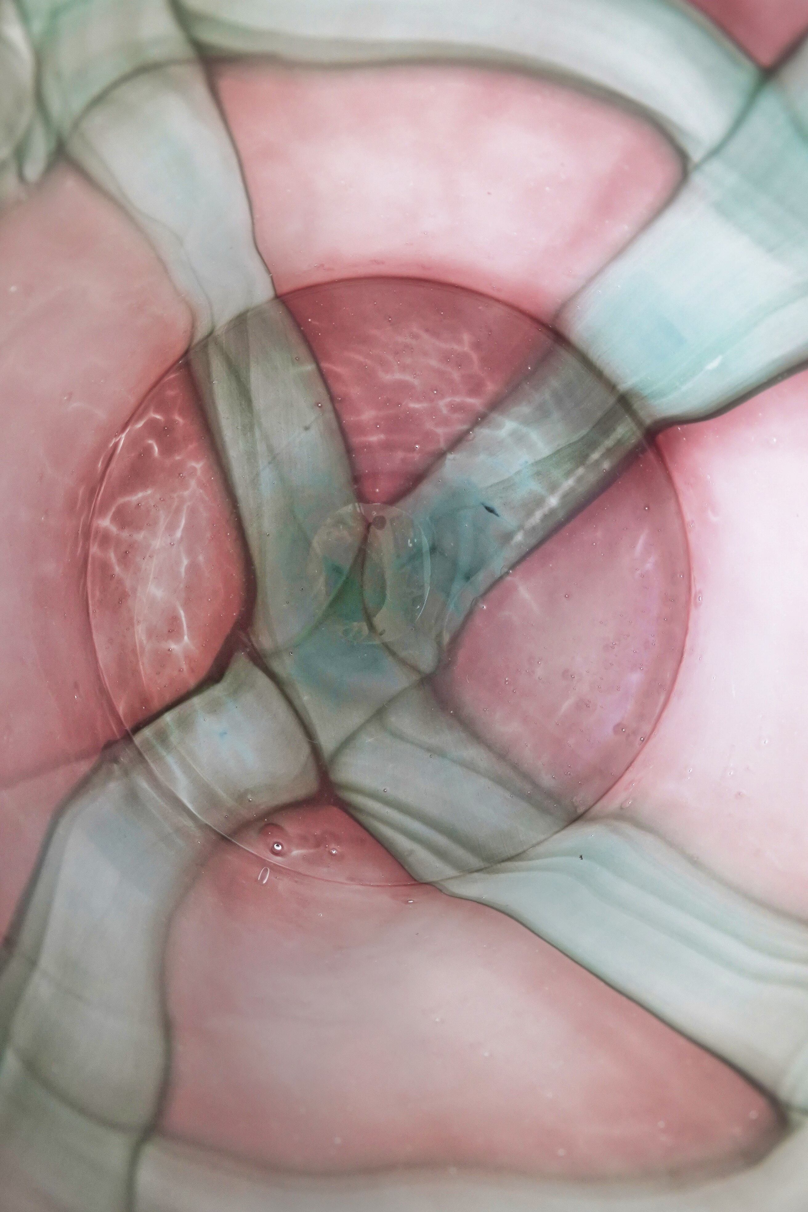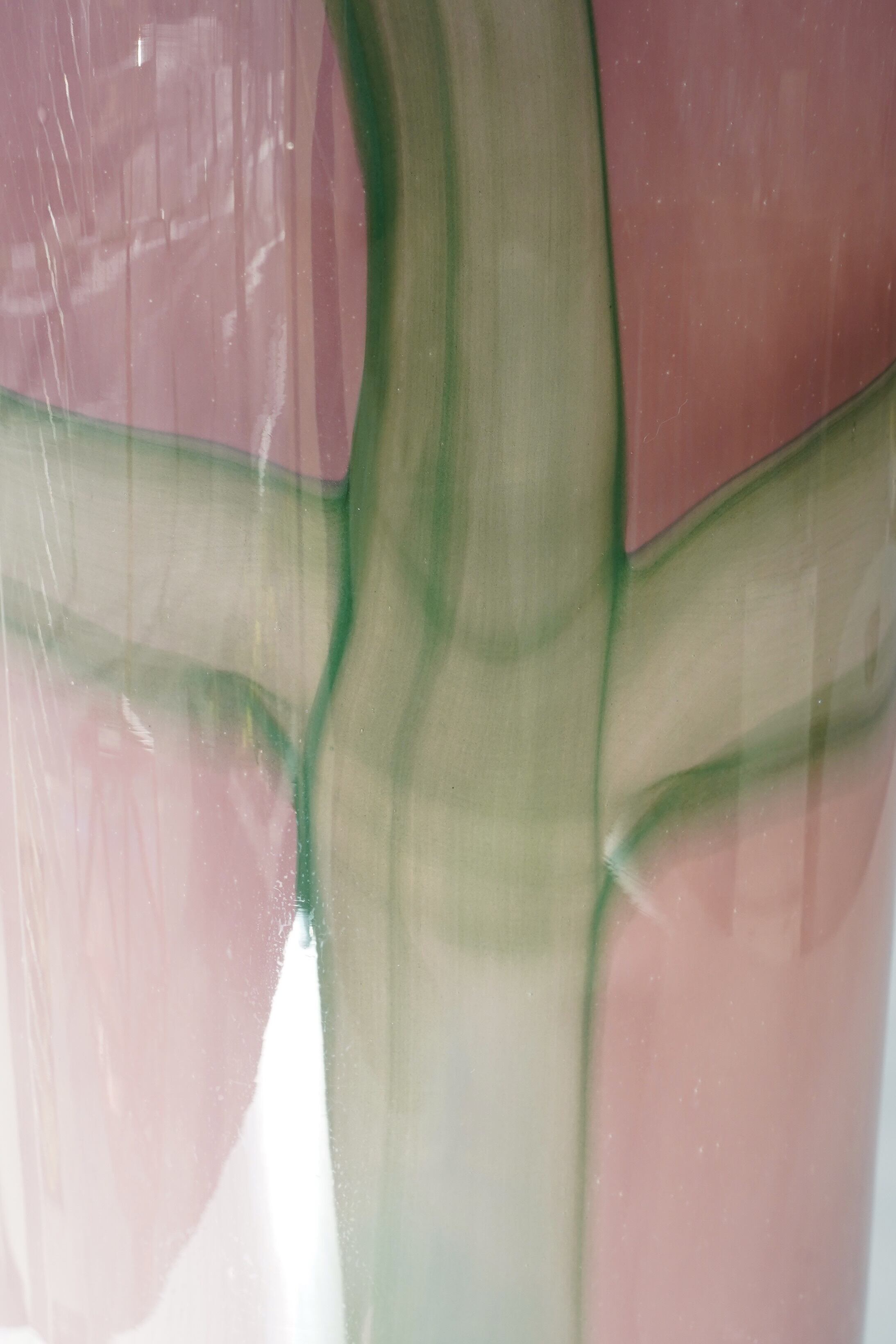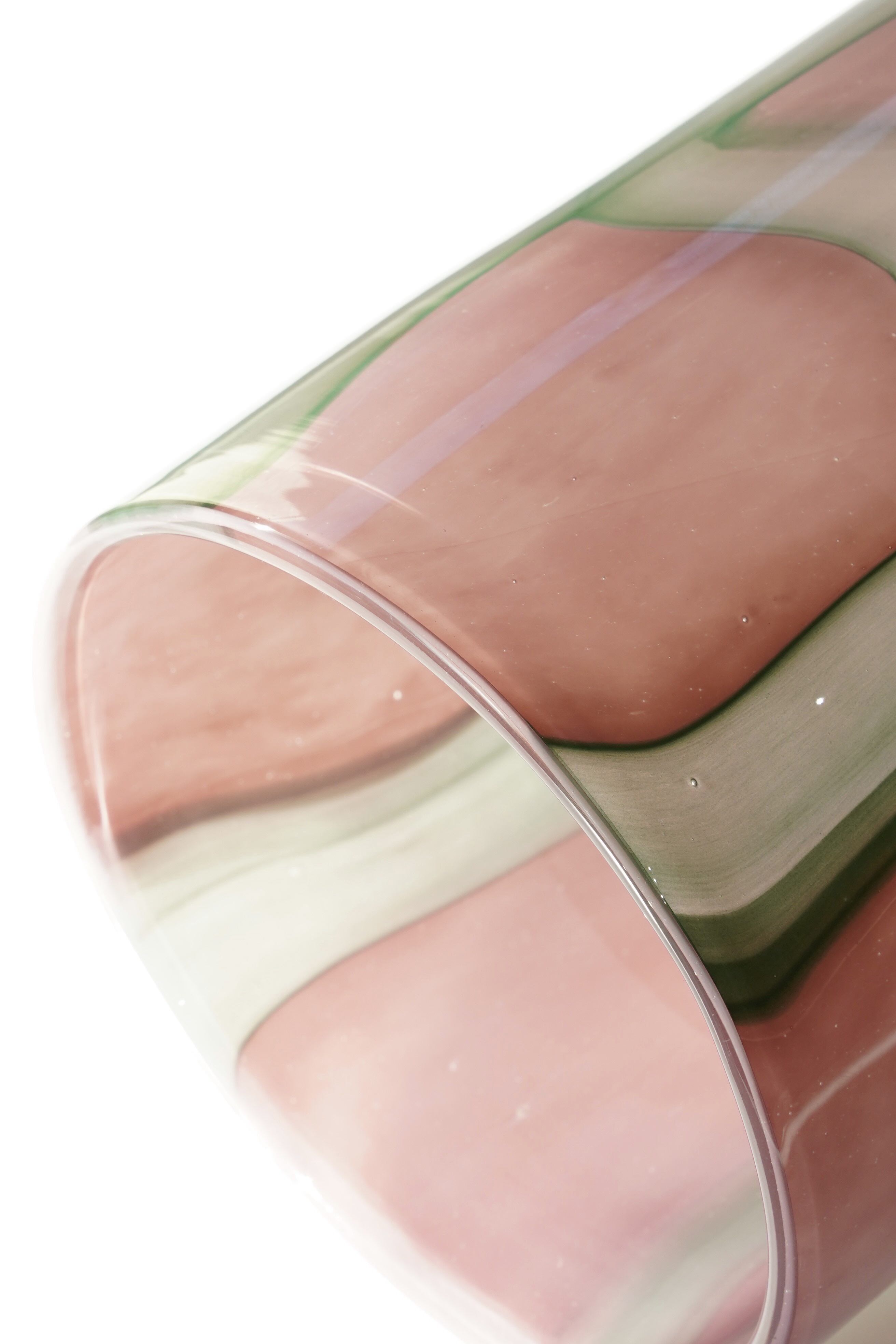 スモーキーなピンクをベースに、グリーン〜エメラルド調のラインが溶け合い、