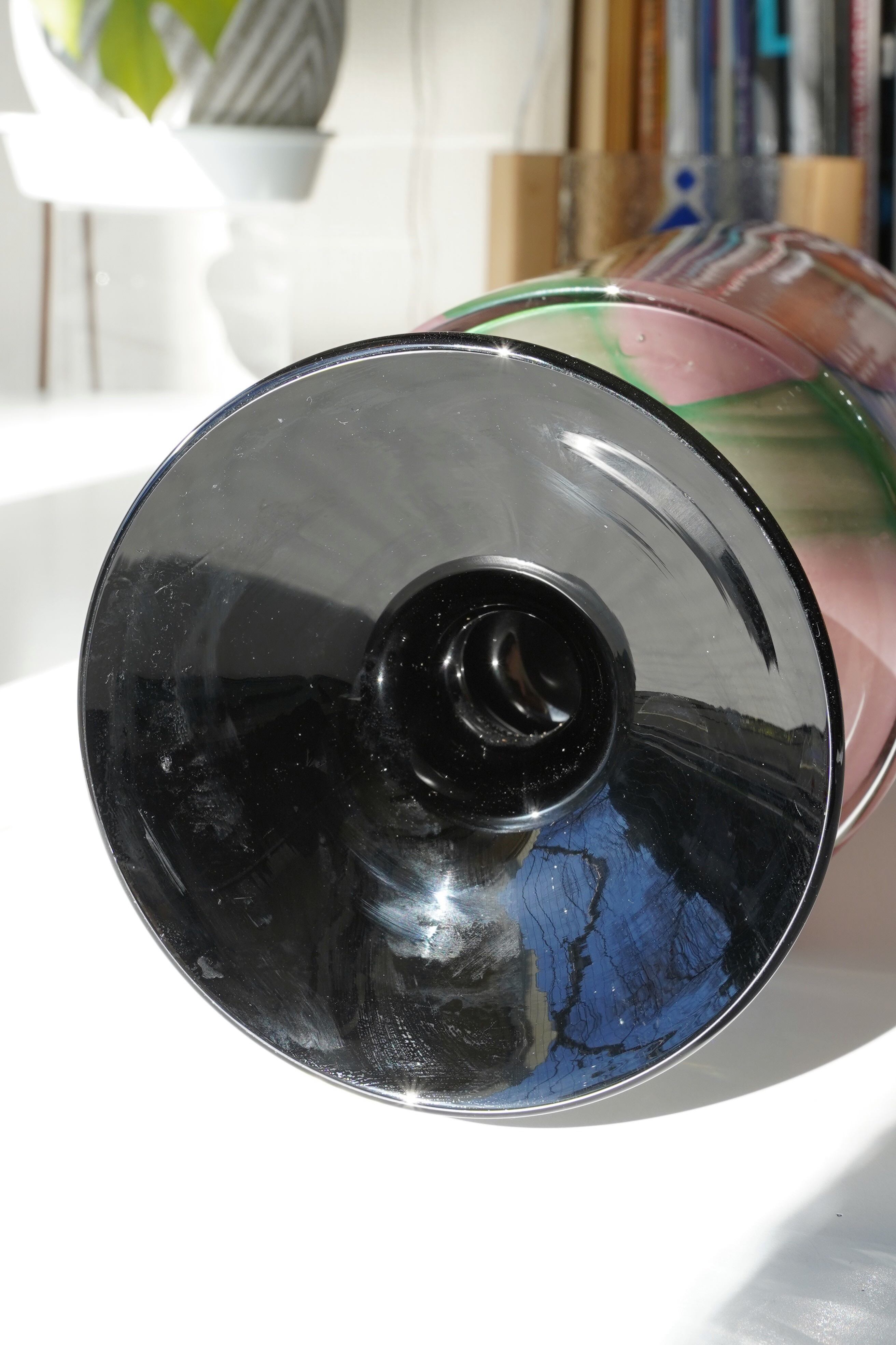 光を受けるたびに表情を変える、オーロラのような色合いが特徴のガラスベース。