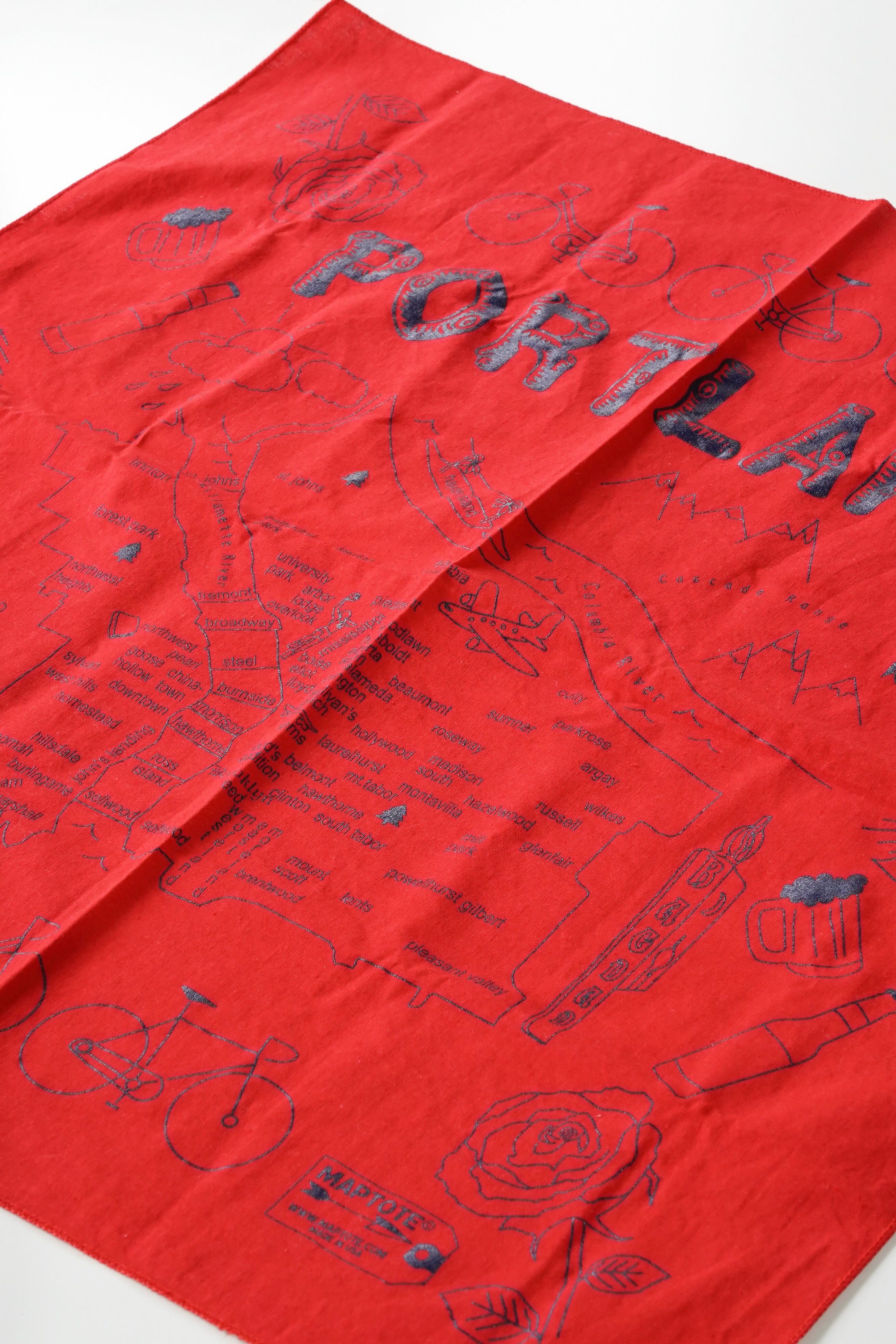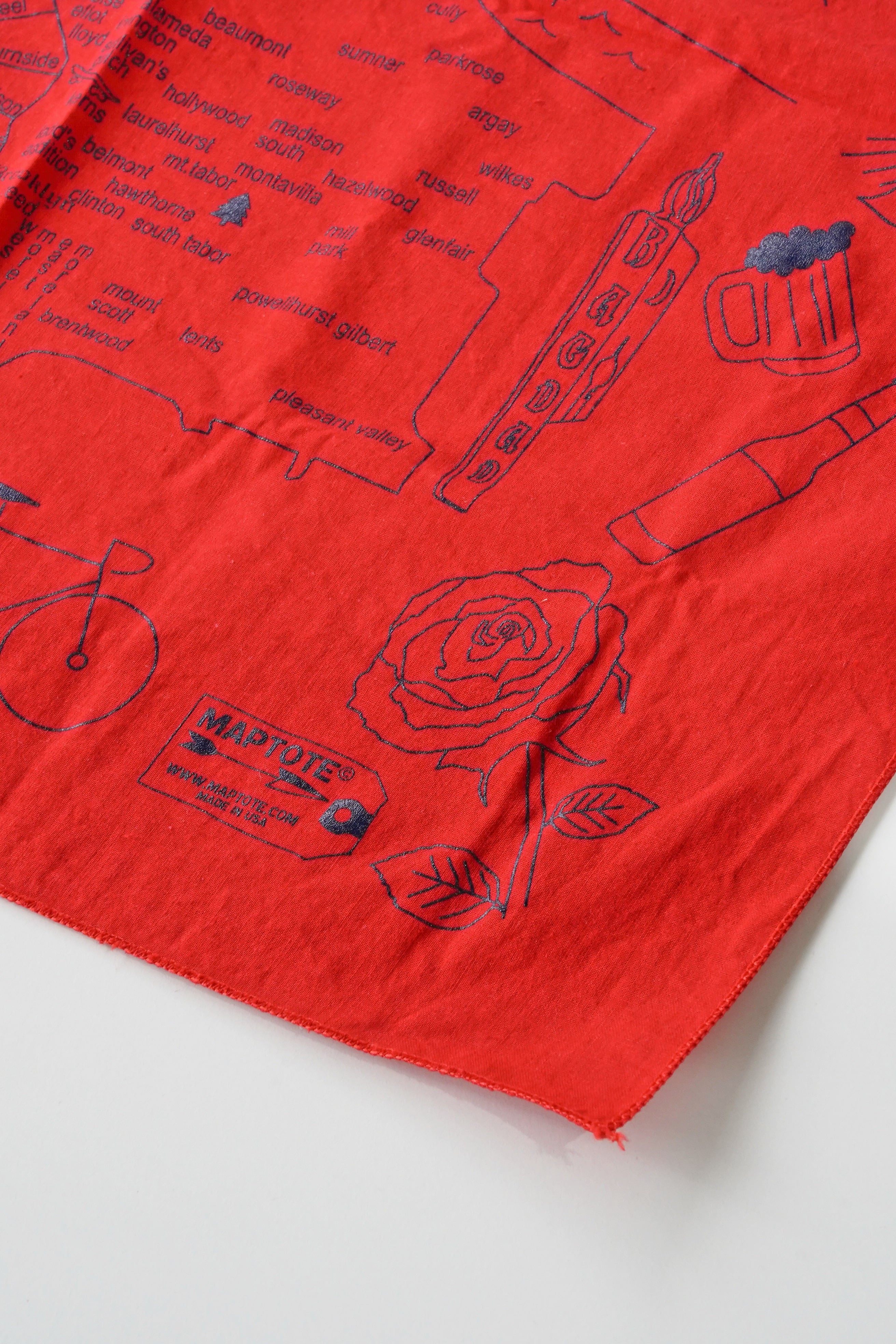 MAPTOTE “PORTLAND” マップバンダナ USA製 赤 コットン100%