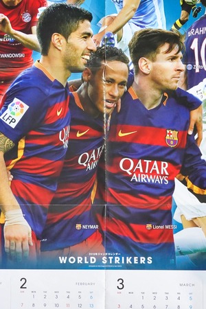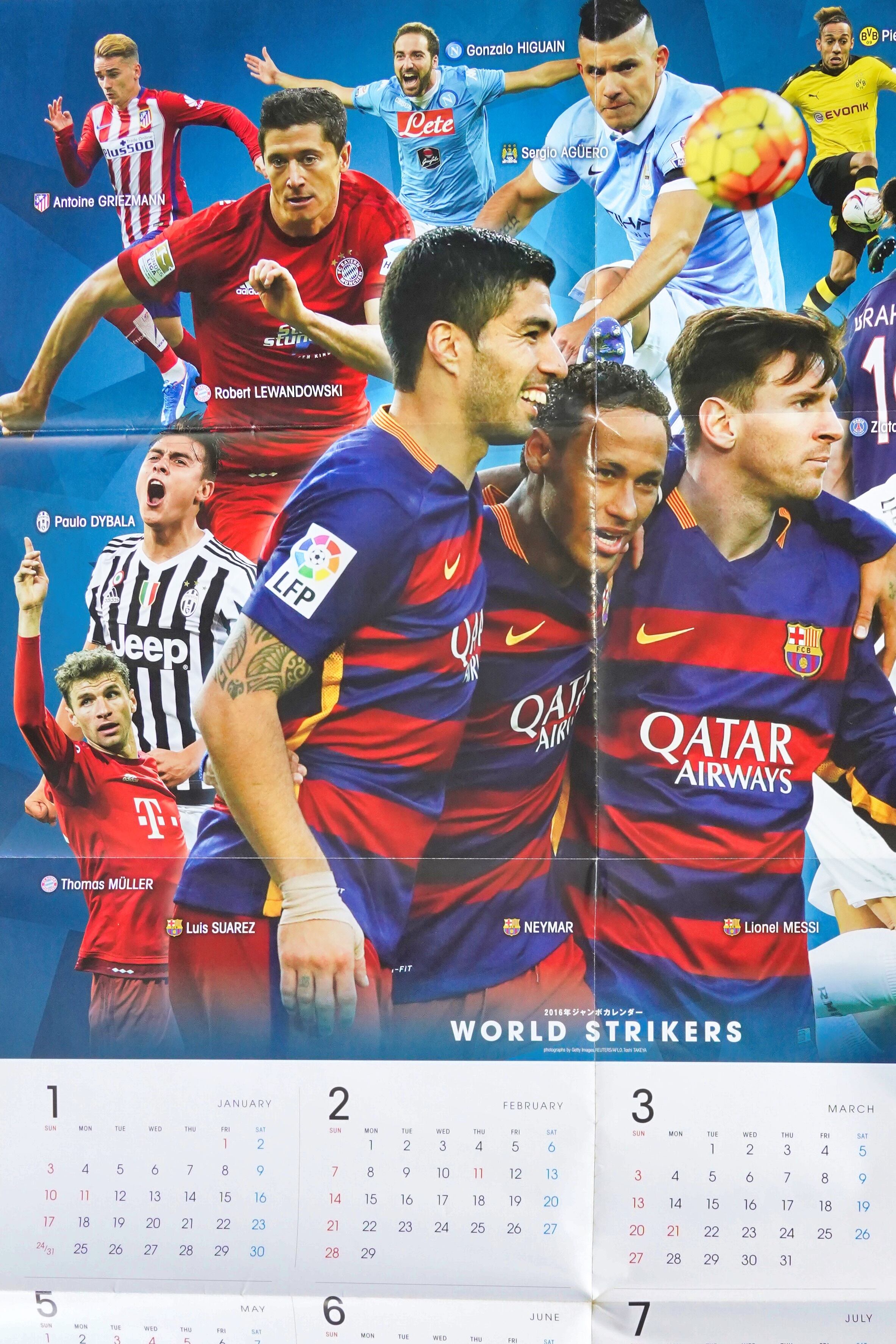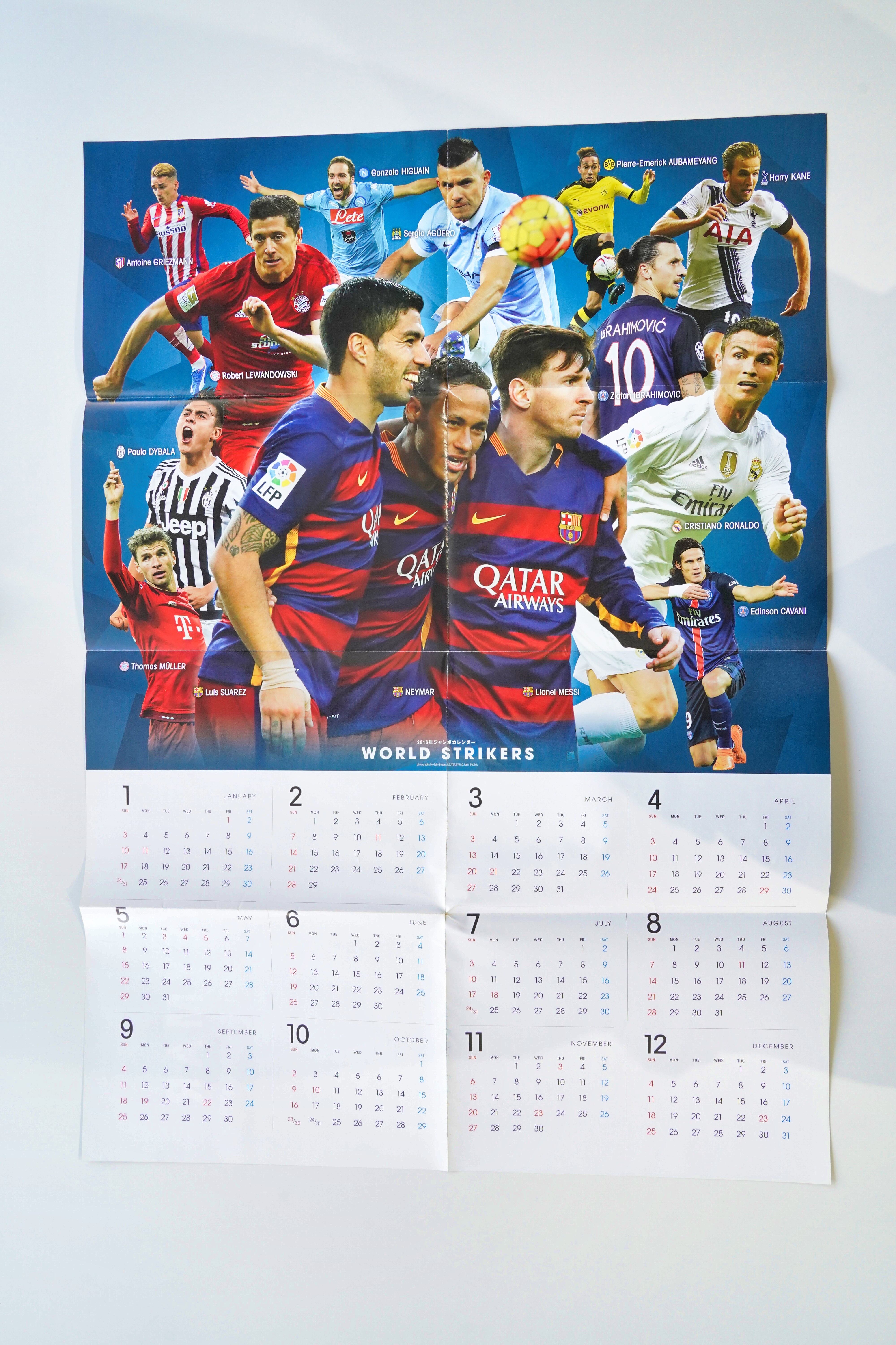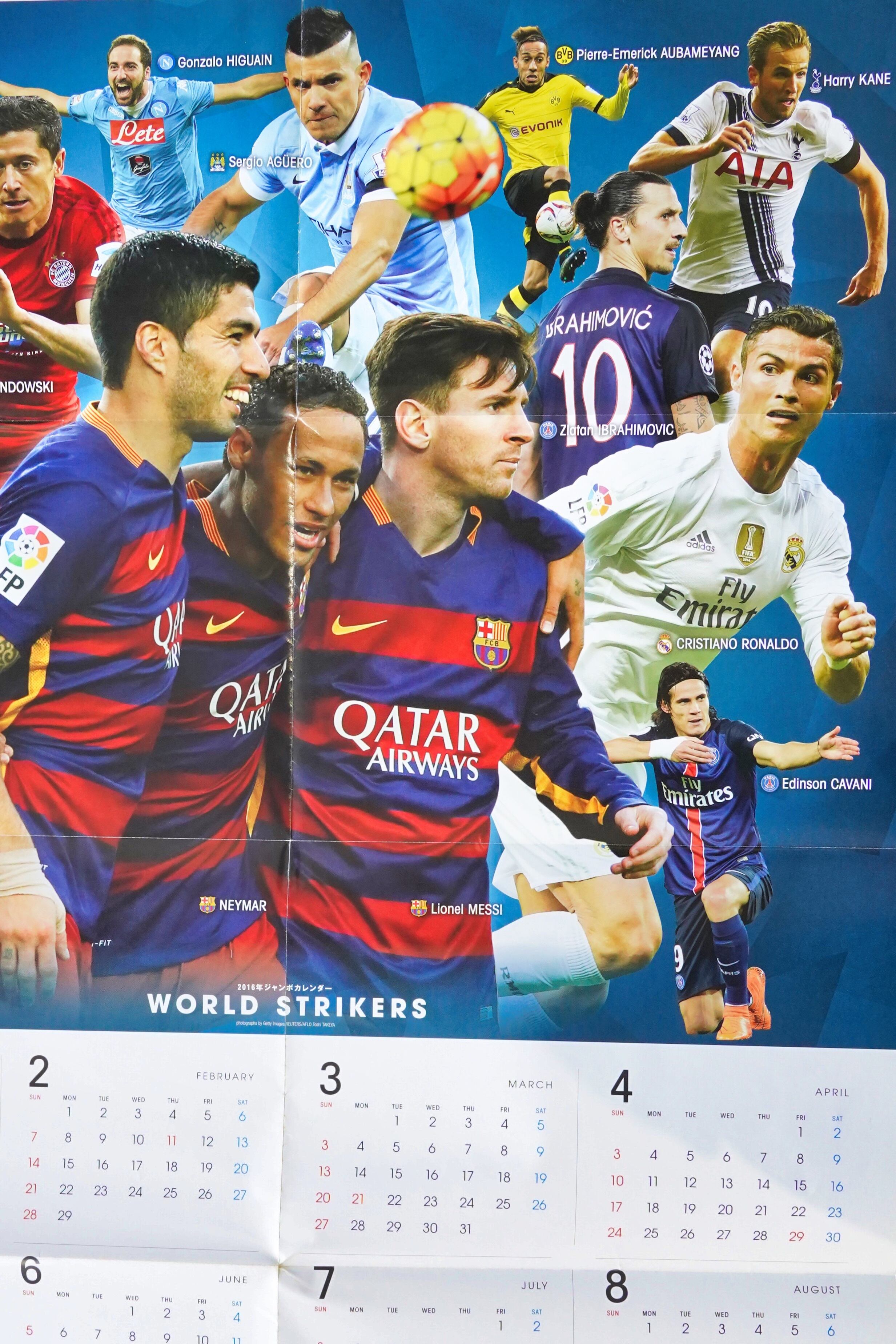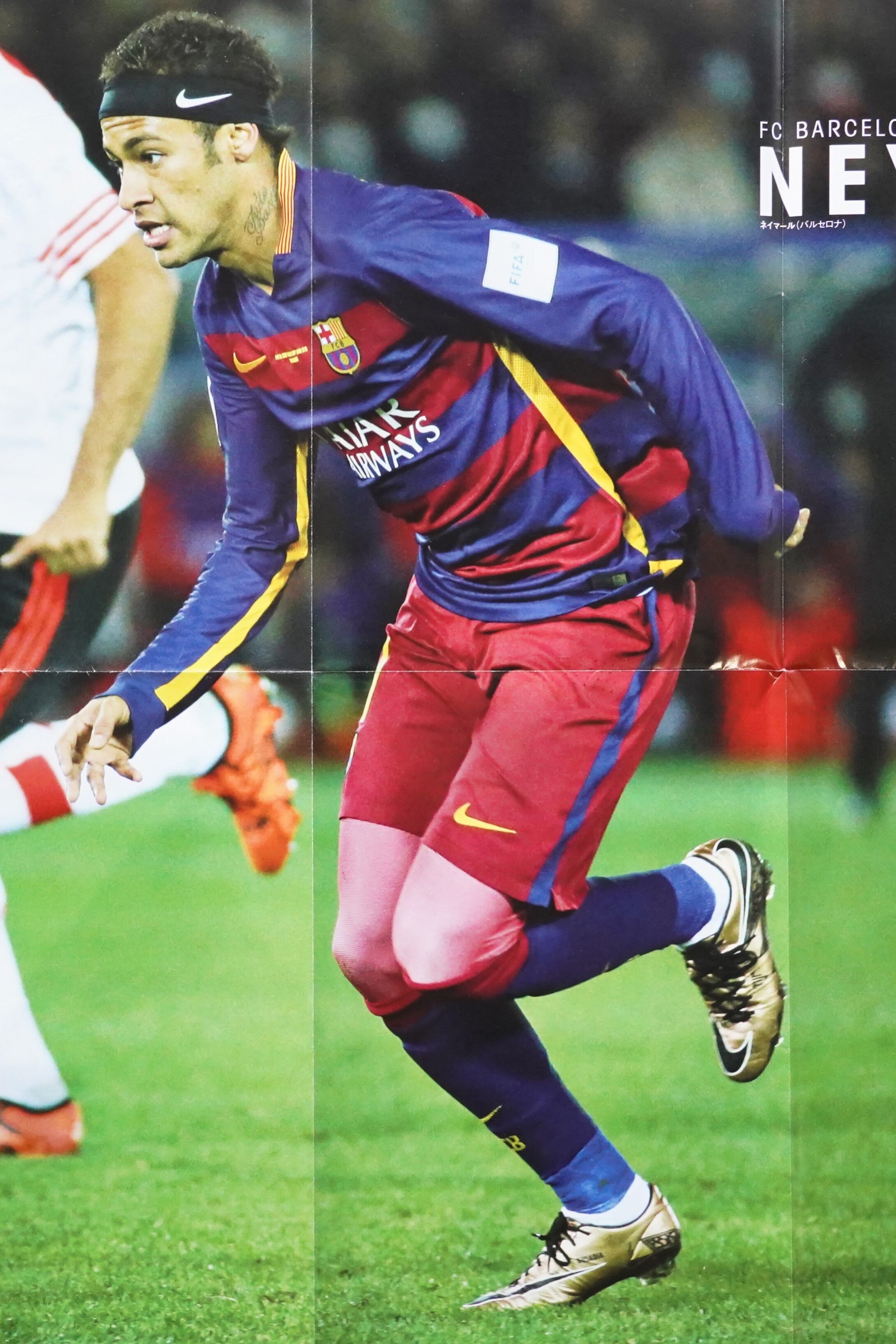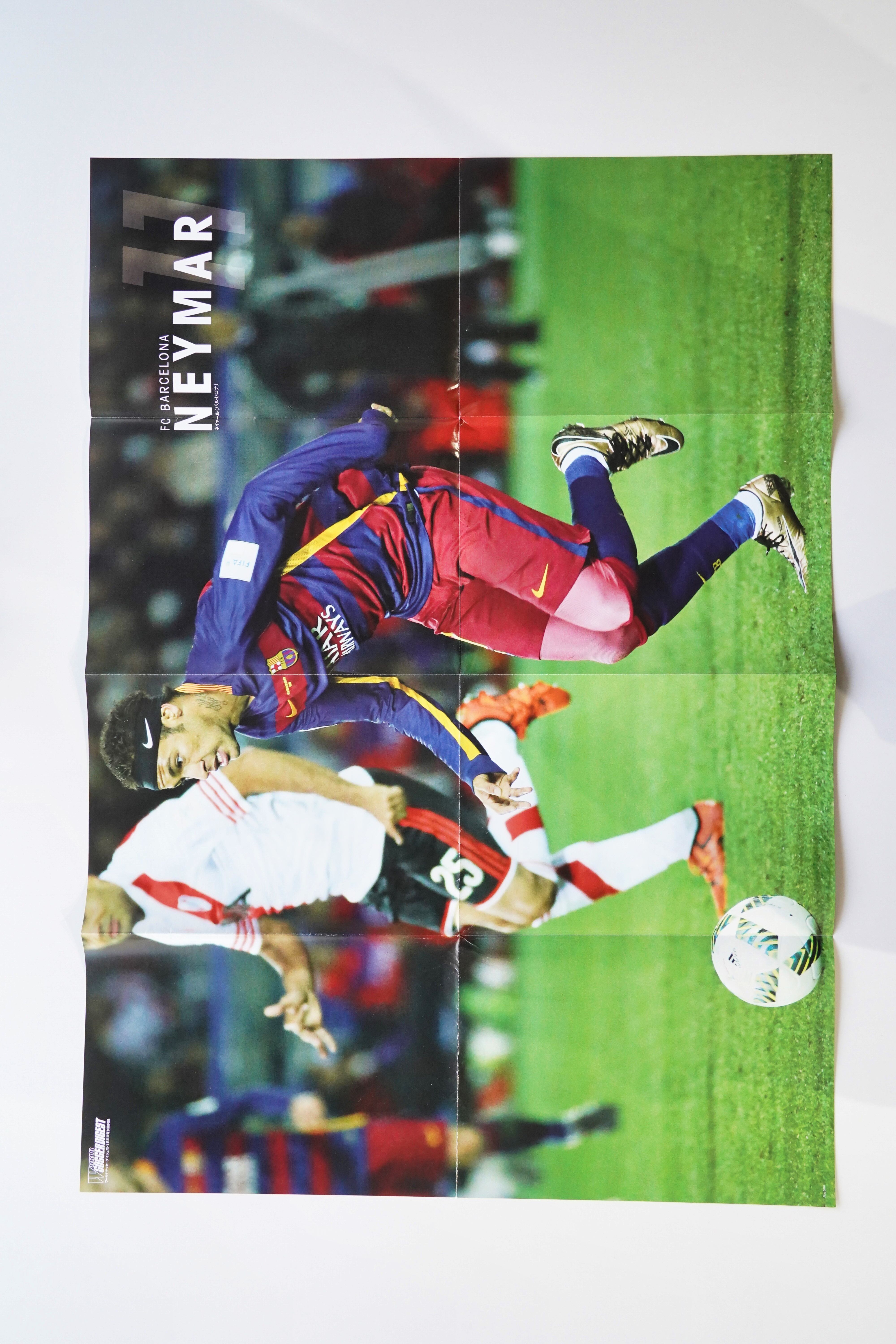 片面はFCバルセロナ時代のネイマール、もう片面は当時の世界的ストライカーが一堂に会した「WORLD STRIKERS」ビジュアルで、資料性とインテリア性を兼ね備えた構成です。