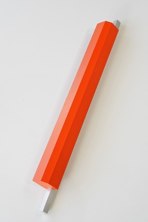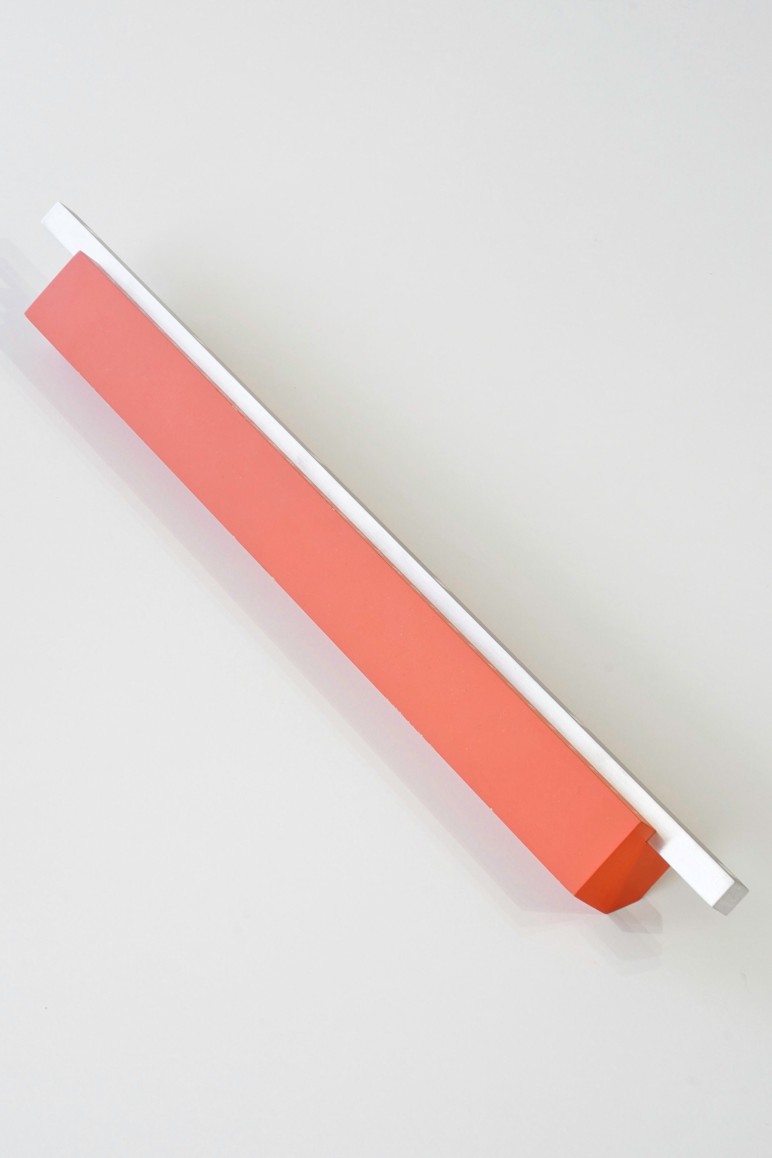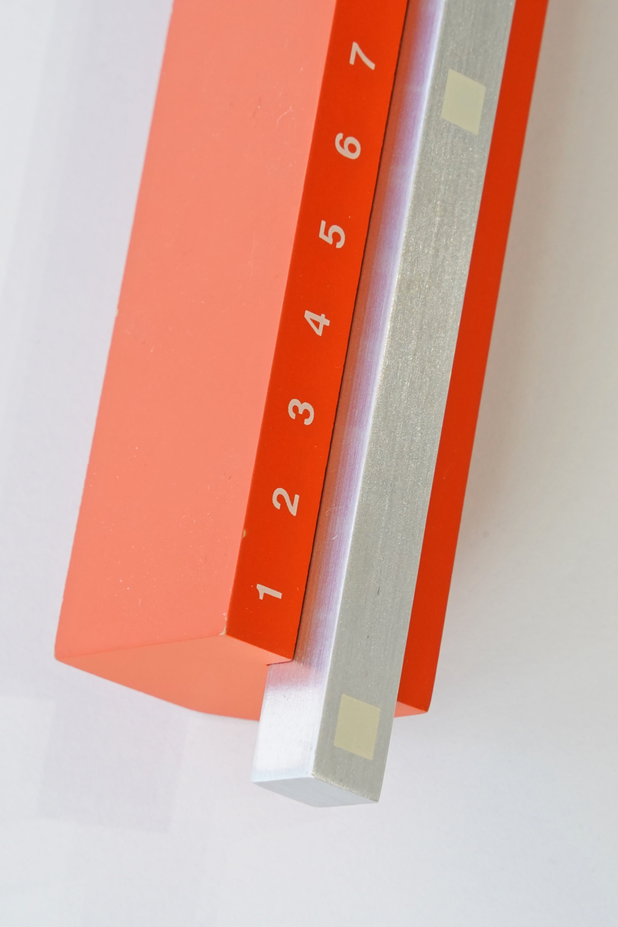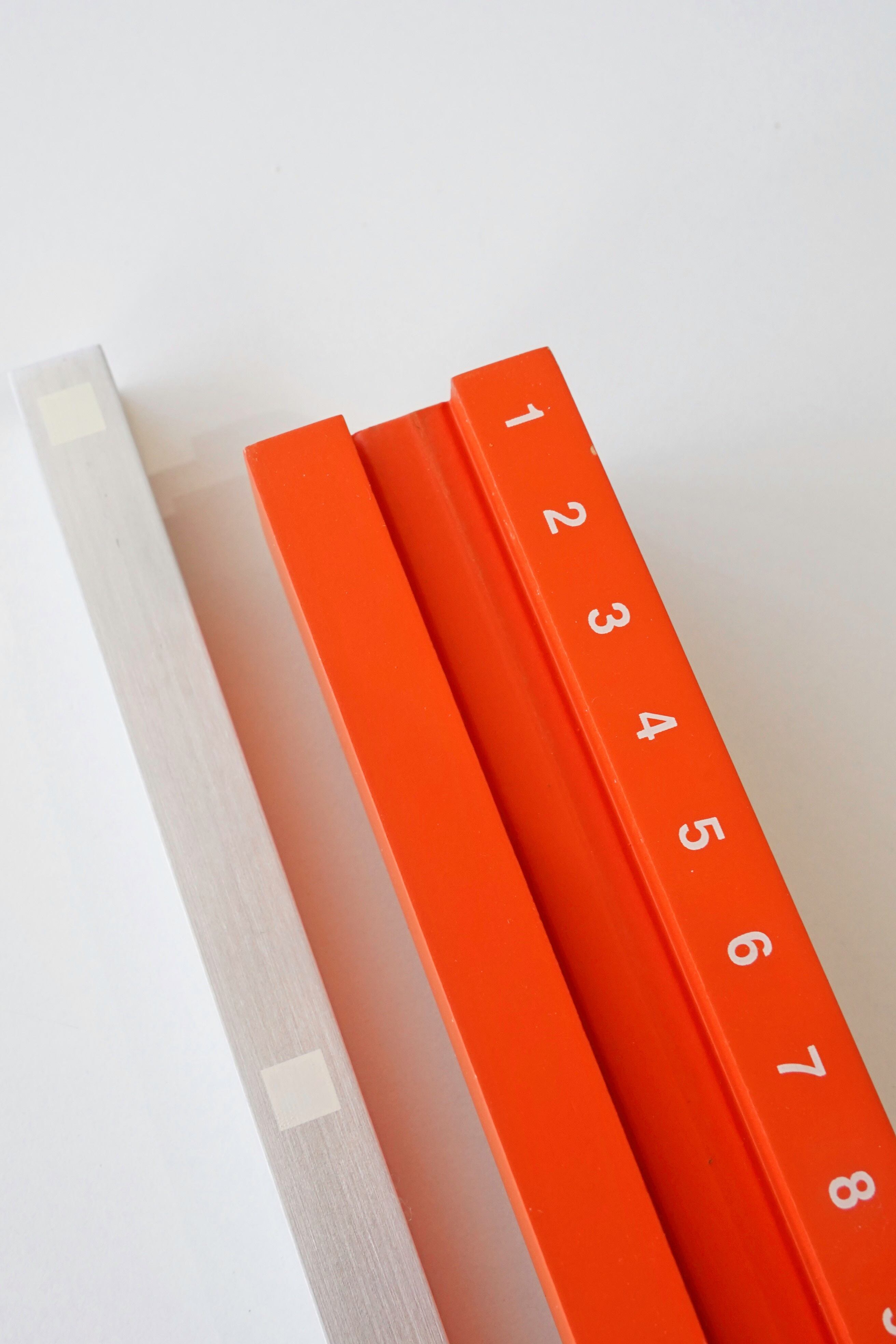 オレンジカラーの数字ベースにシルバーの金属バーを組み合わせた、シンプルながら強い存在感のあるデザイン。