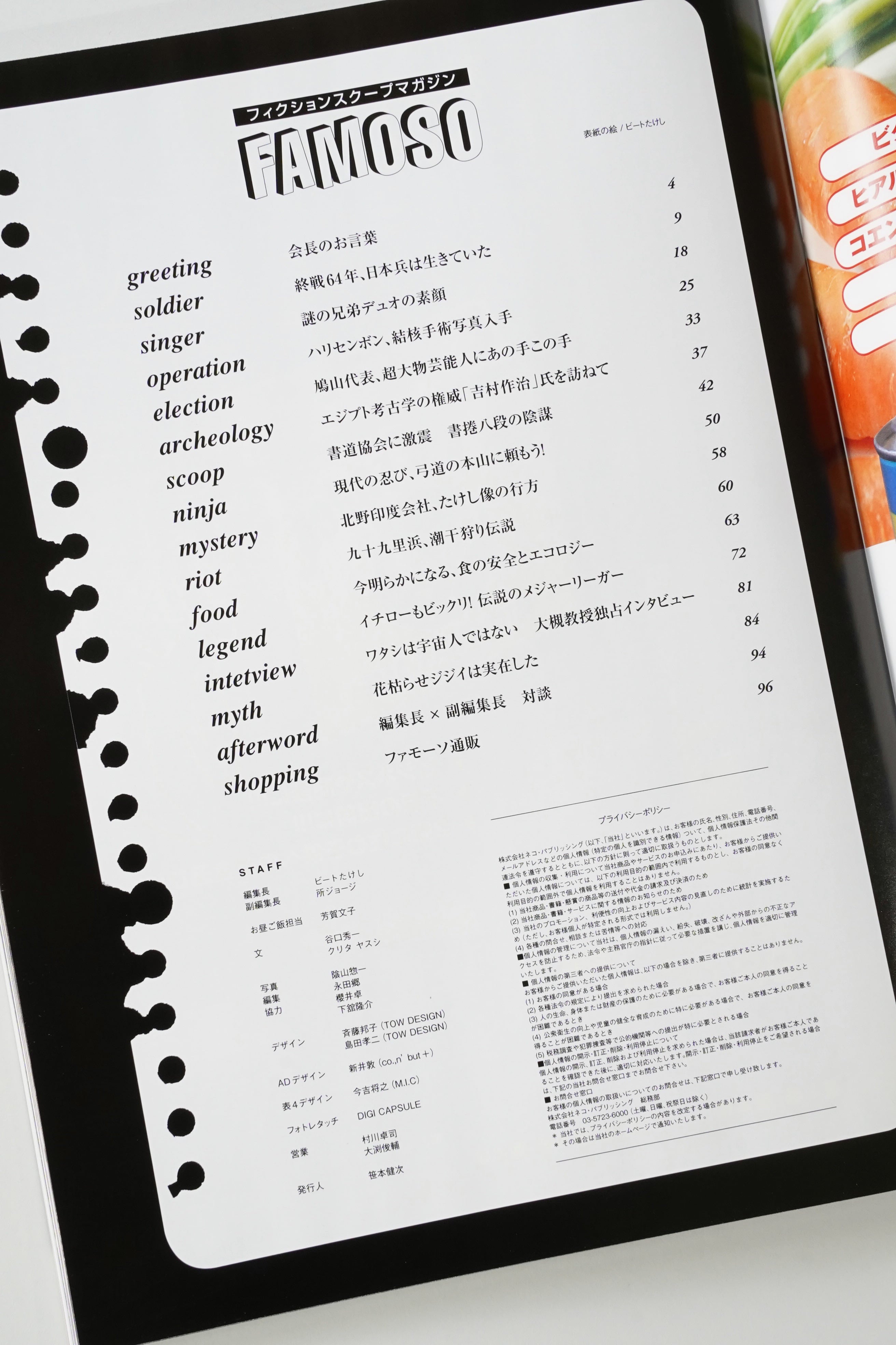 FAMOSO(ファモーソ)Vol.2(第2号)2009年10月号 ビートたけし編集長×所ジョージ副編集長 フィクションスクープ雑誌