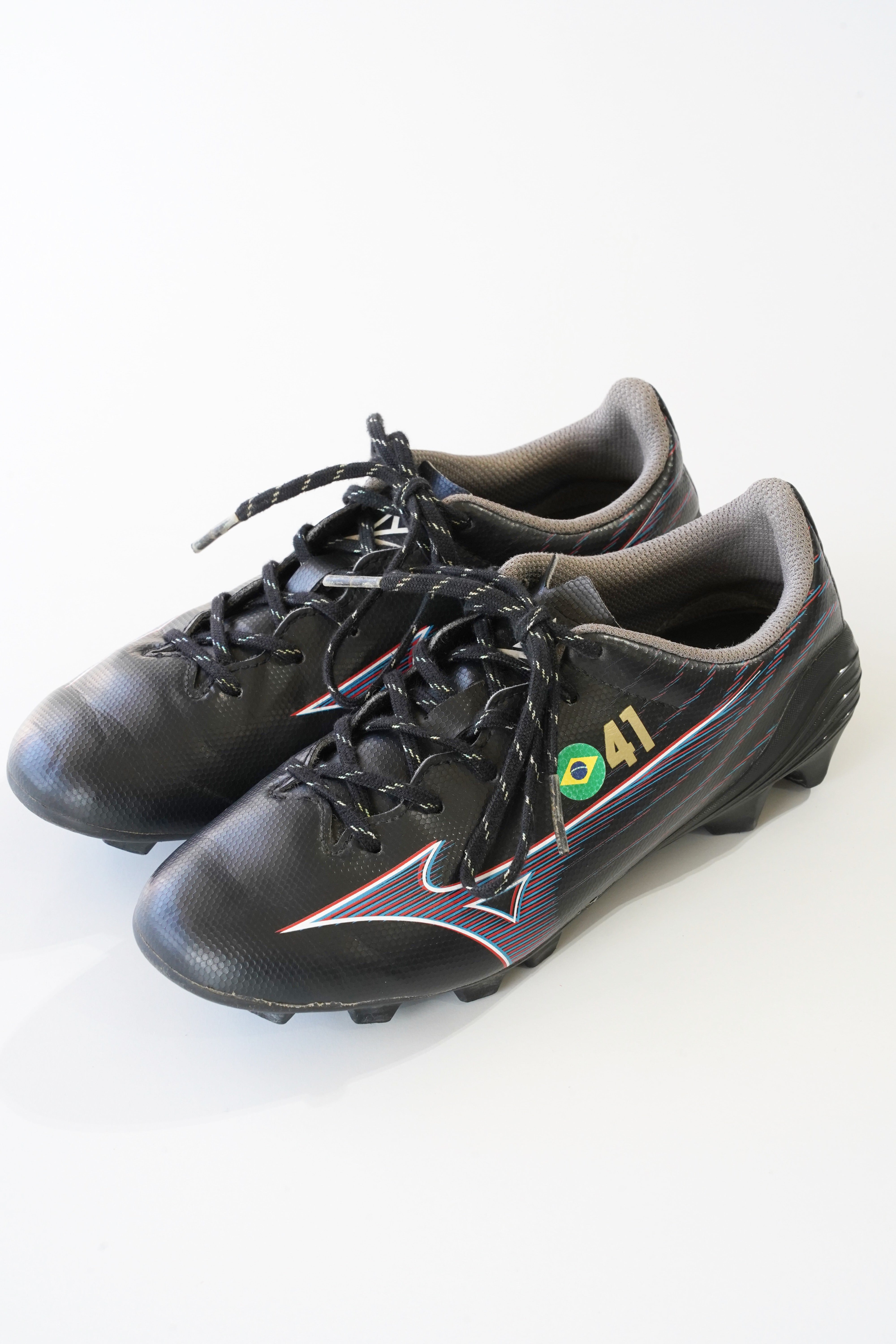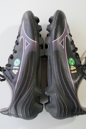 アッパー外側には「41」とブラジル国旗の刺繍があります。