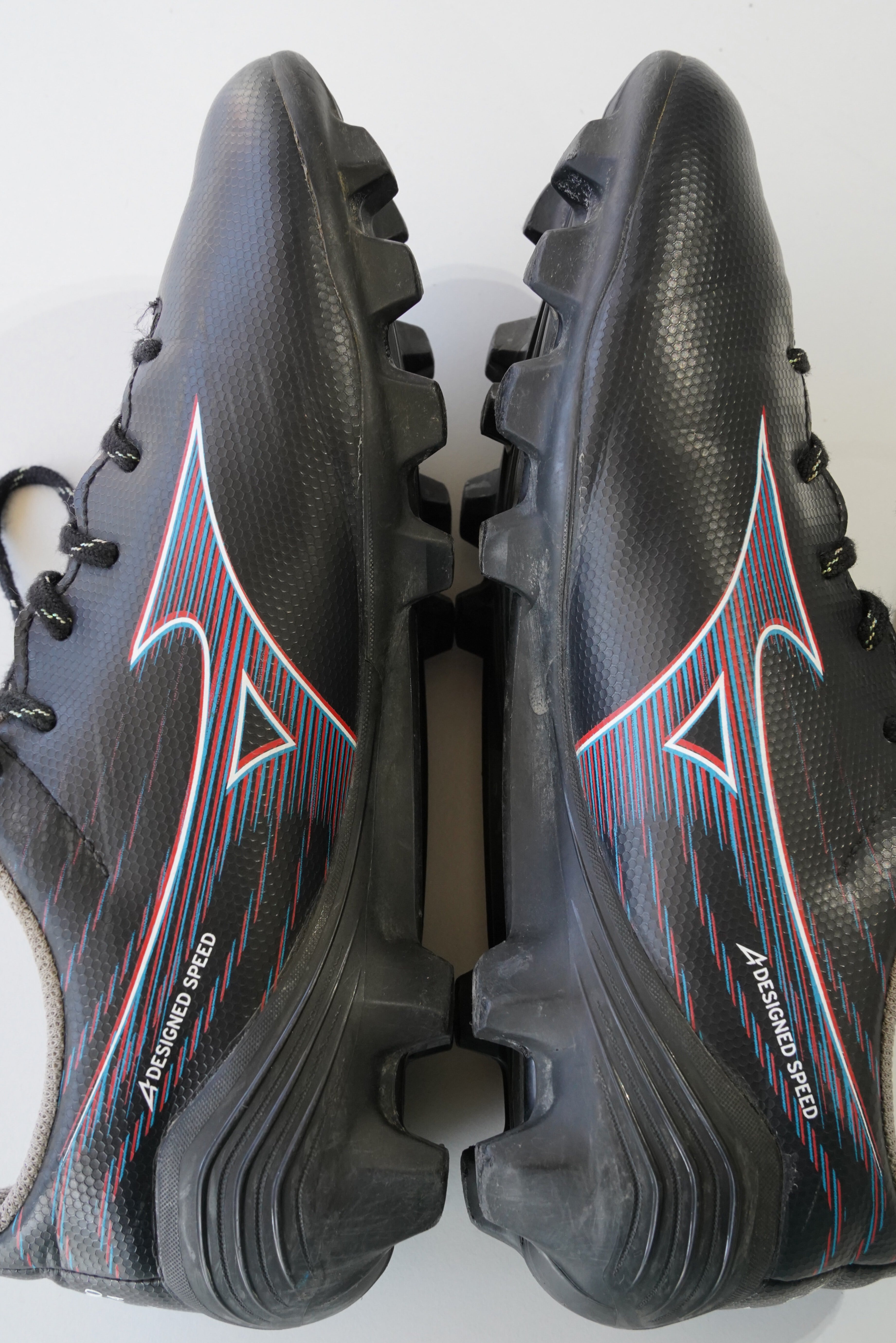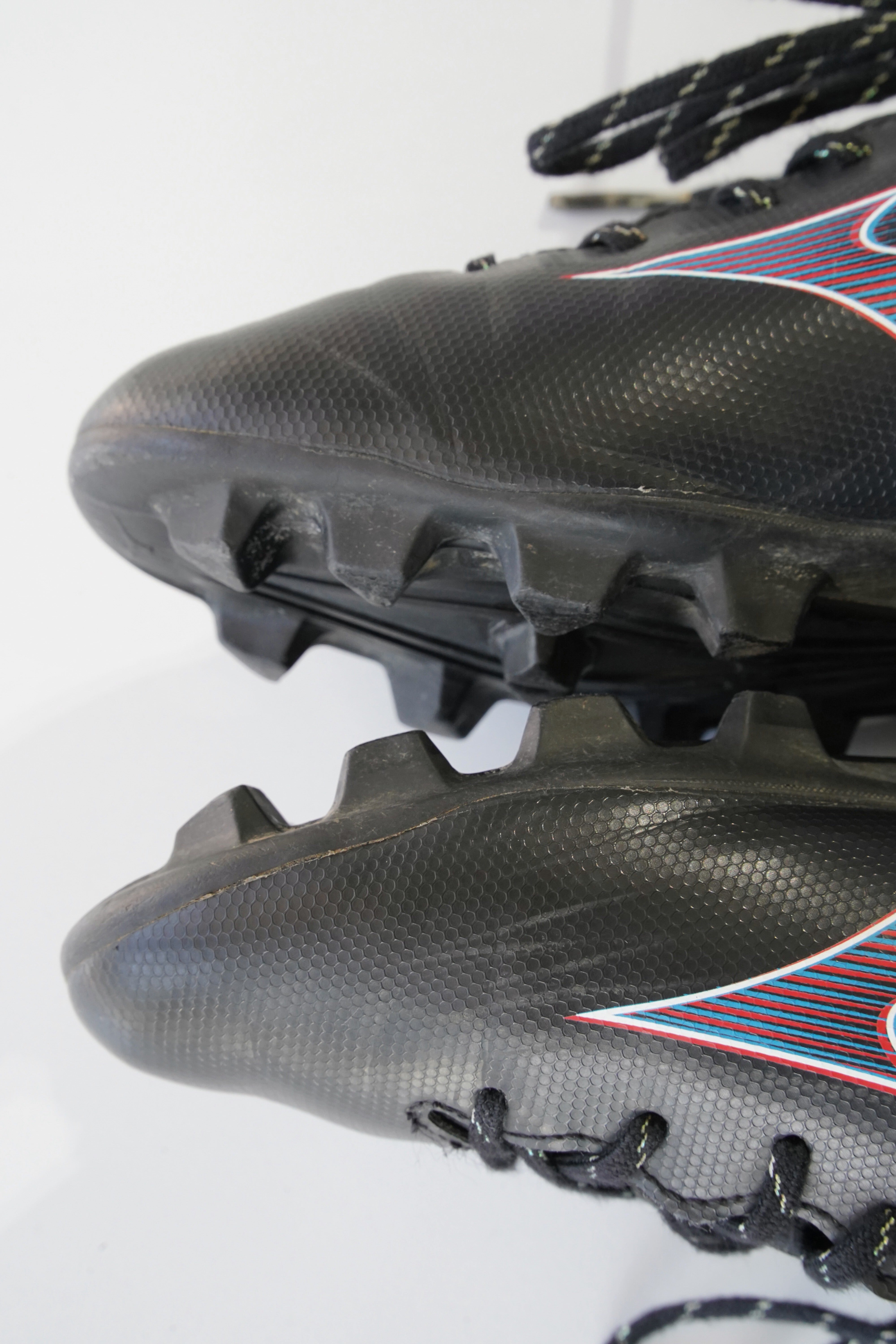 縦への推進力を意識した三角スタッド設計で、ダッシュや切り返しに対応するジュニア向け軽量モデルです。