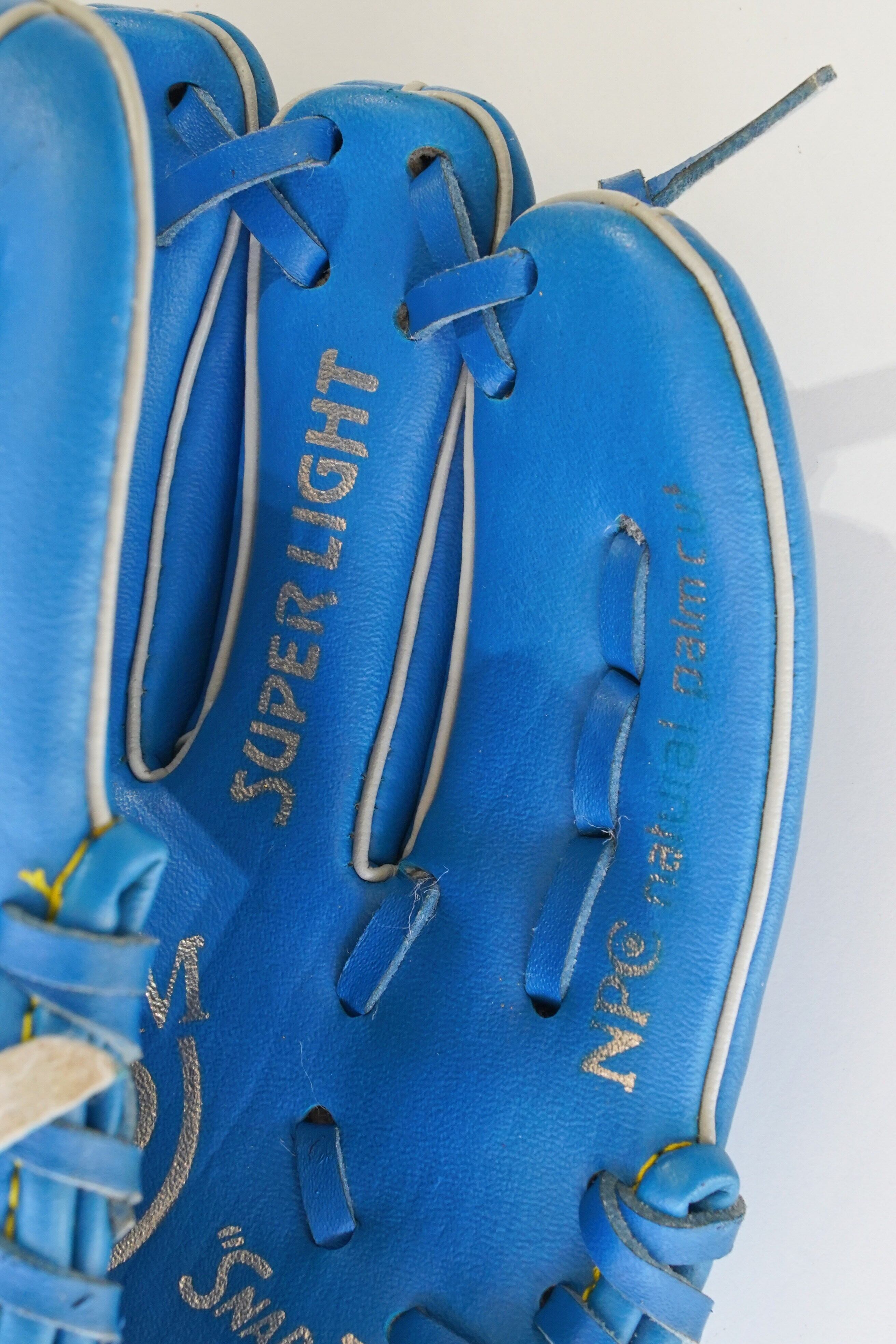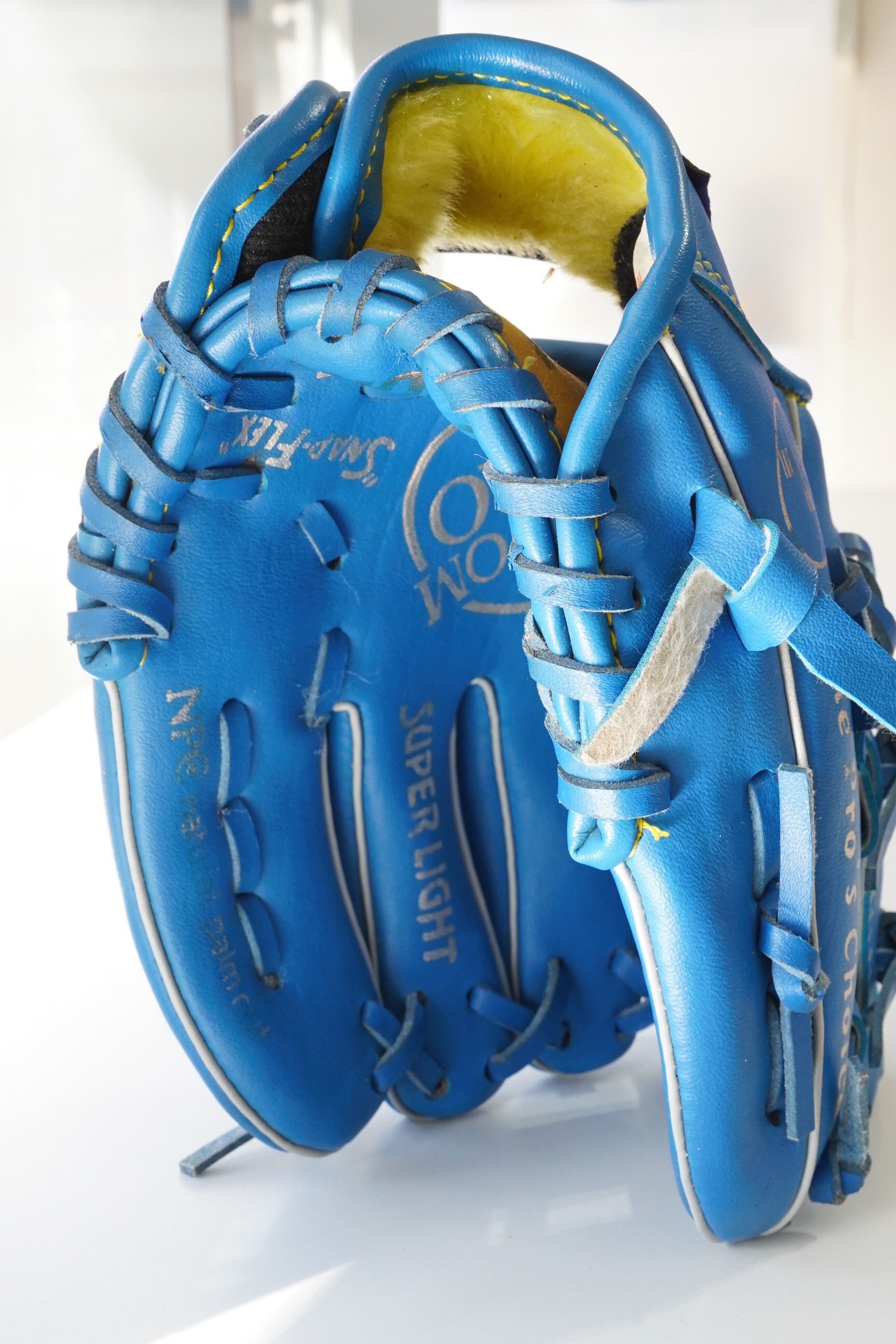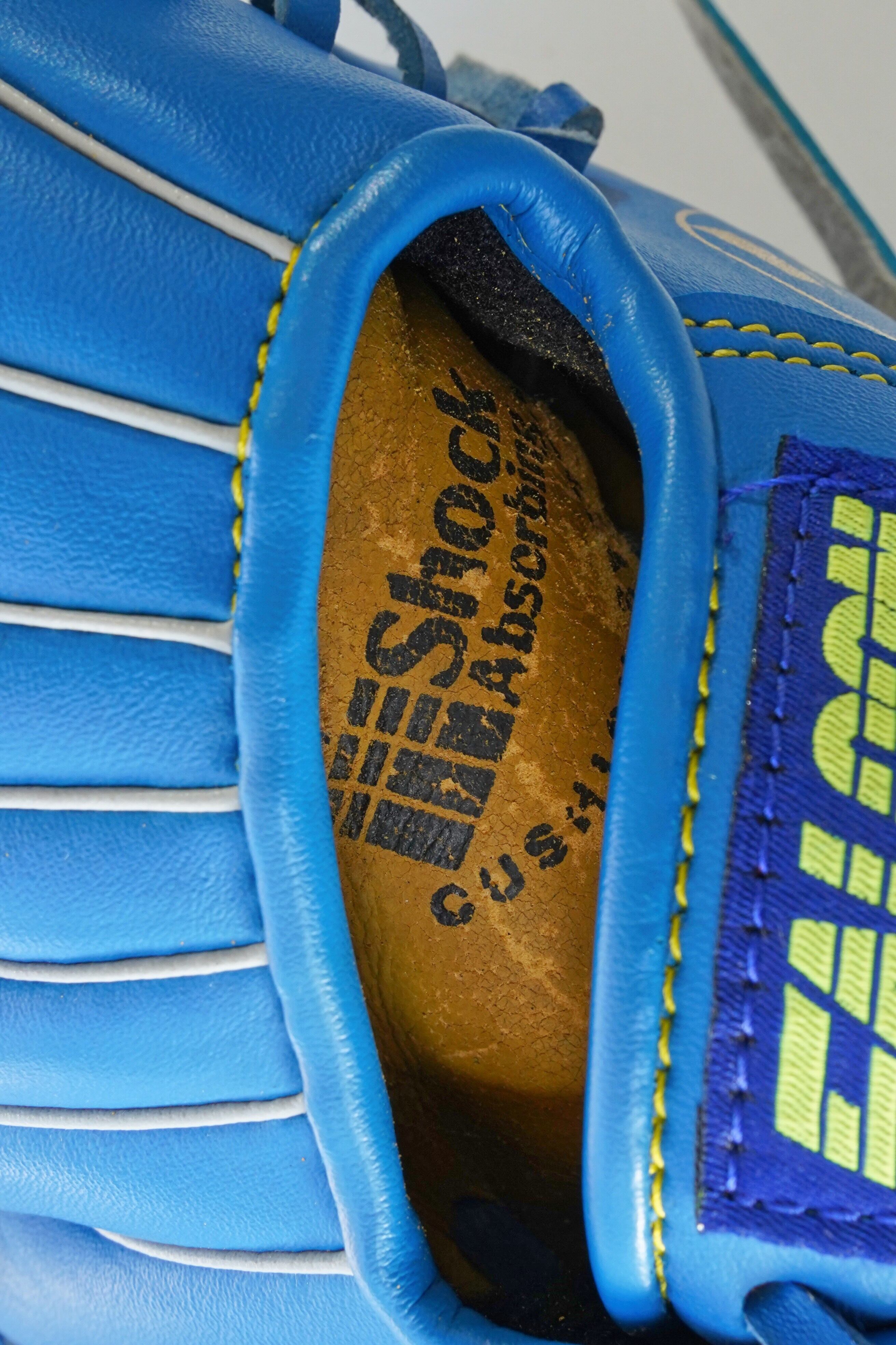 捕球面には “Shock Absorbing Cushion” の表記があり、軽量設計(Super Light)の入門モデルです。