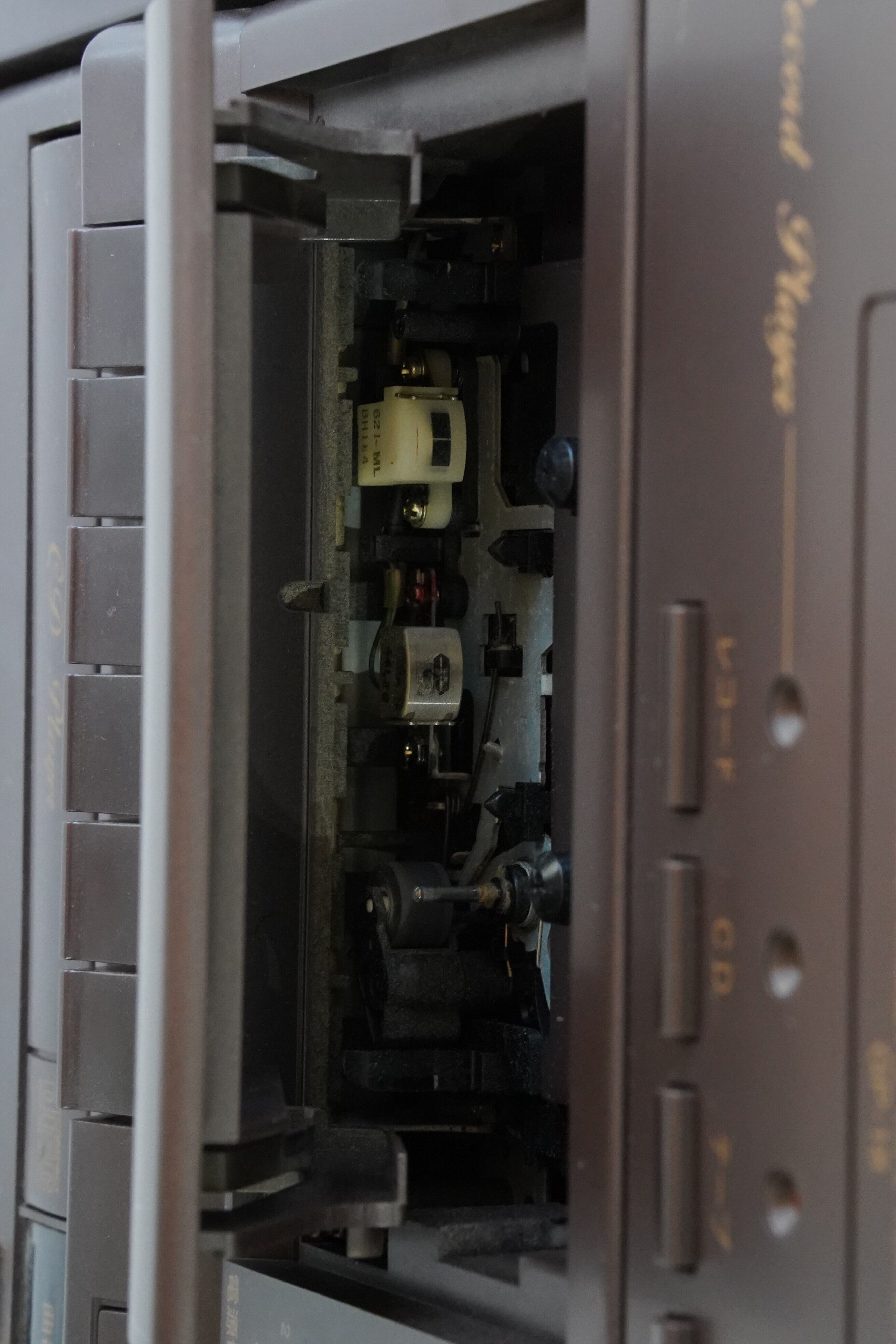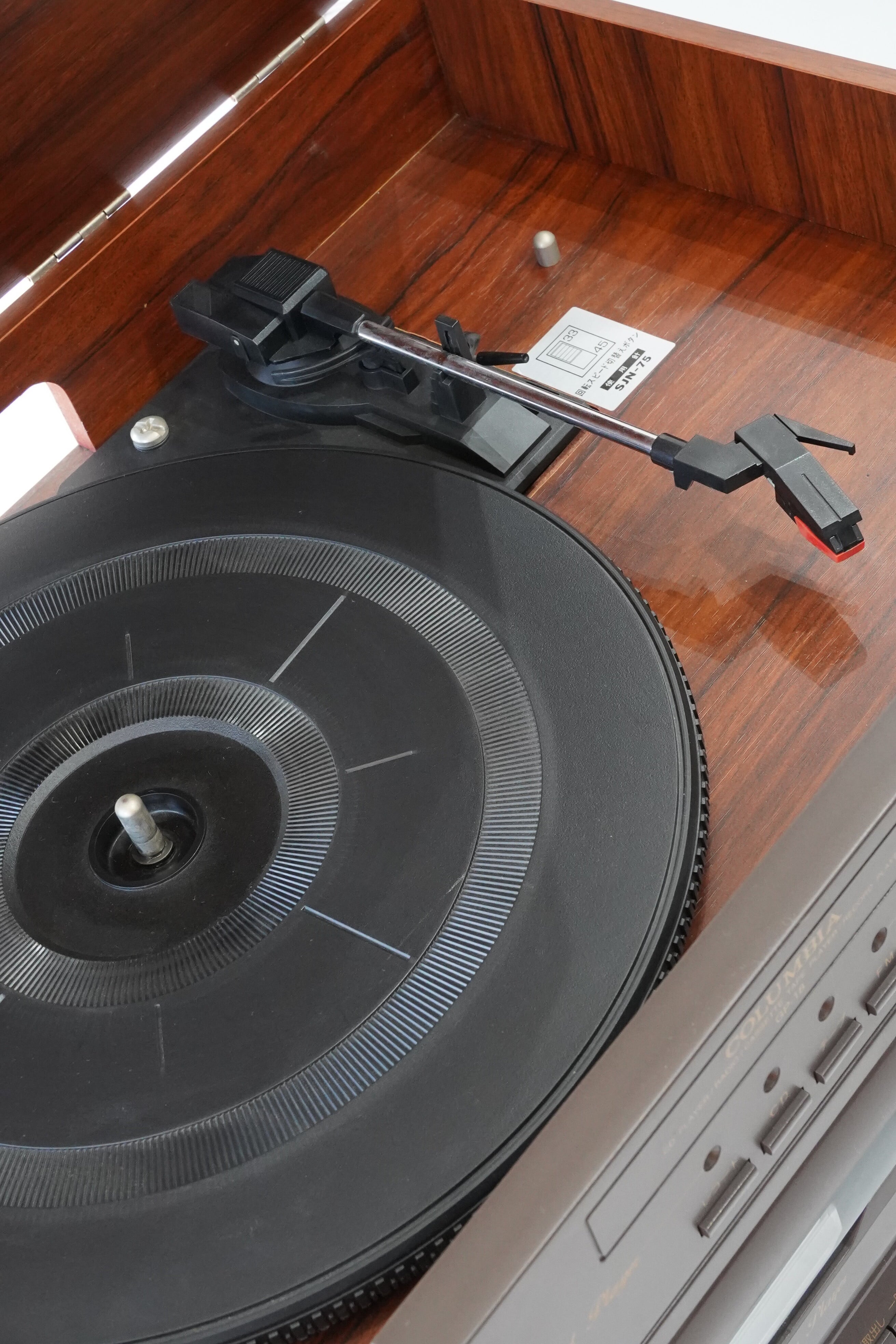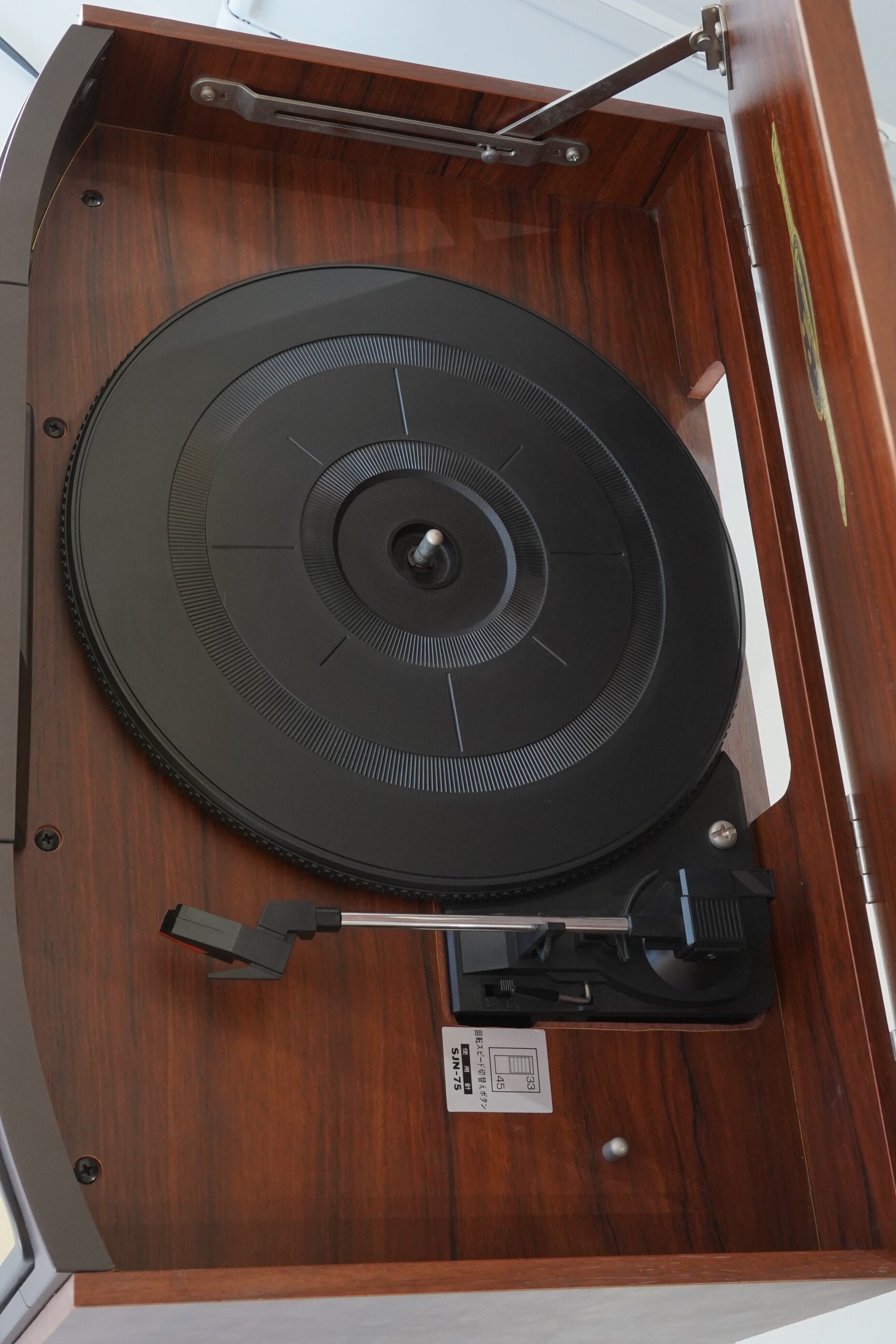 さらに、この機種の魅力は天面のダストカバーを開けるとターンテーブルが現れる構造です。