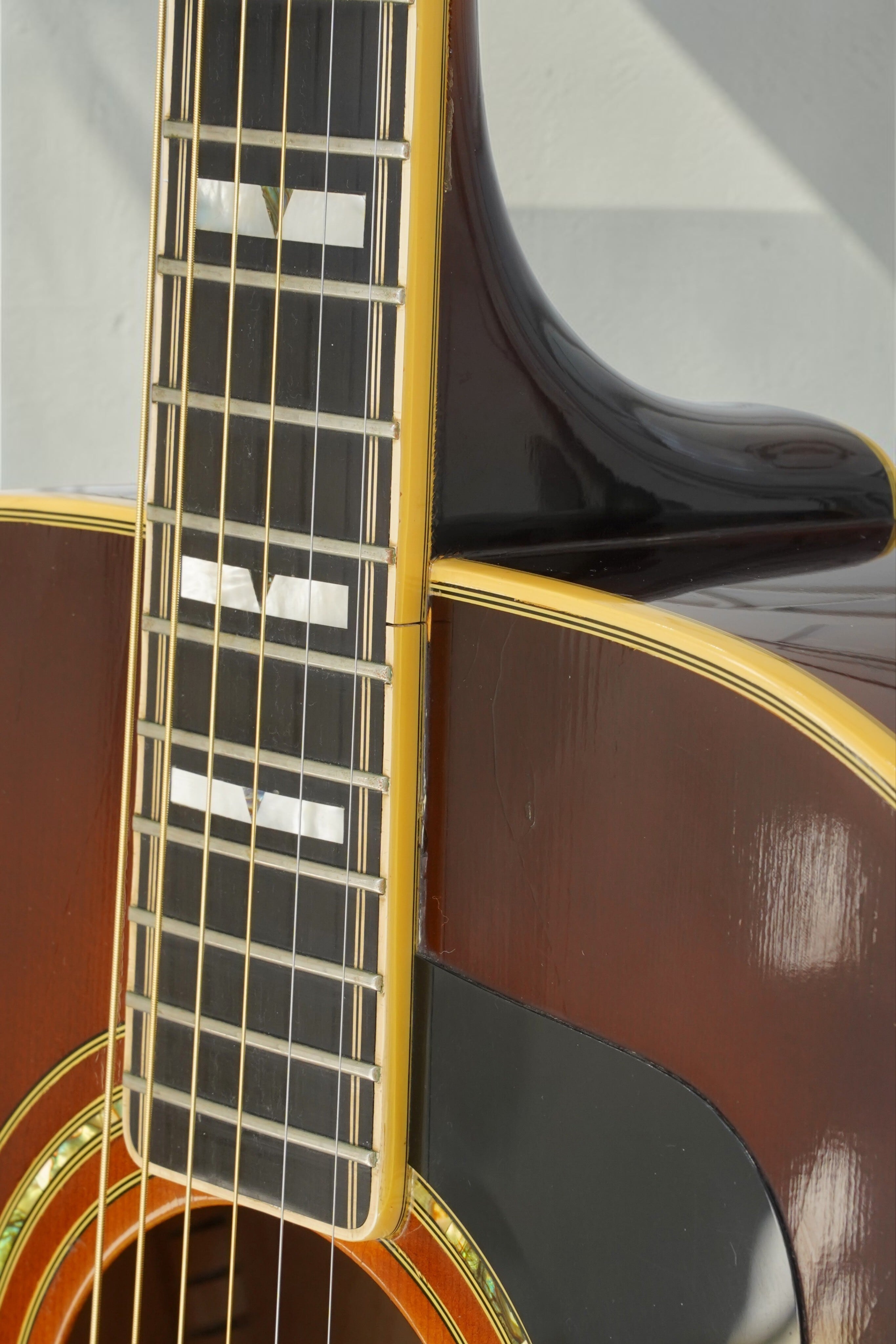 ※ネック側面の指板エッジ(バインディング付近)に、数箇所(2〜3F、4〜5F、11〜12F、14〜15F付近)にクラックが見られます。