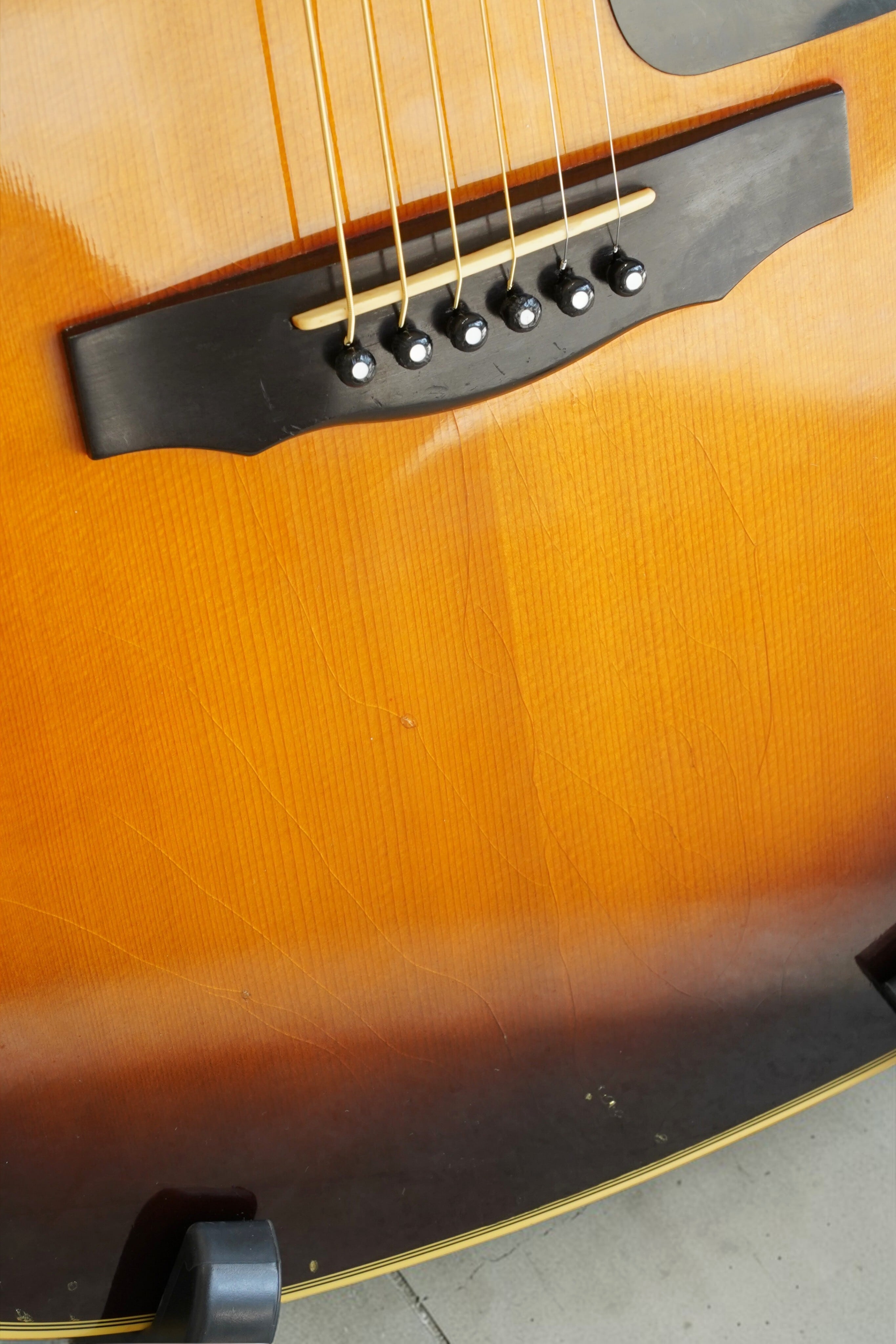 トップには経年による塗装クラック(ウェザーチェック)および細かなスレが見られますが、