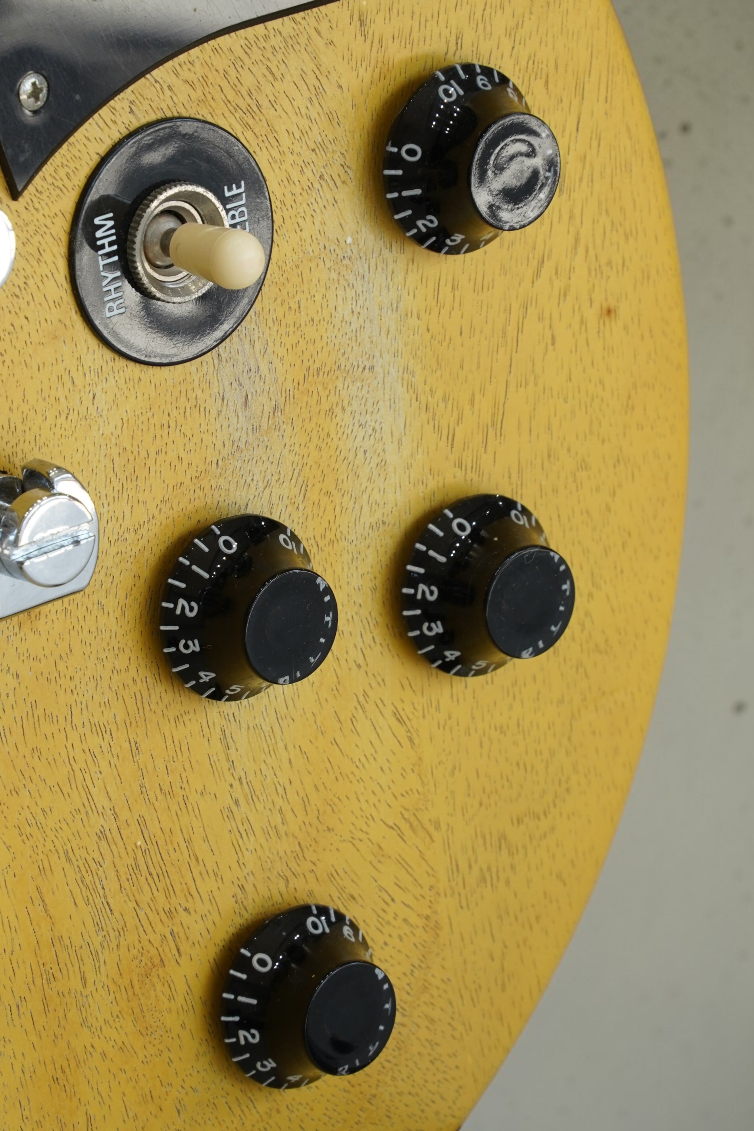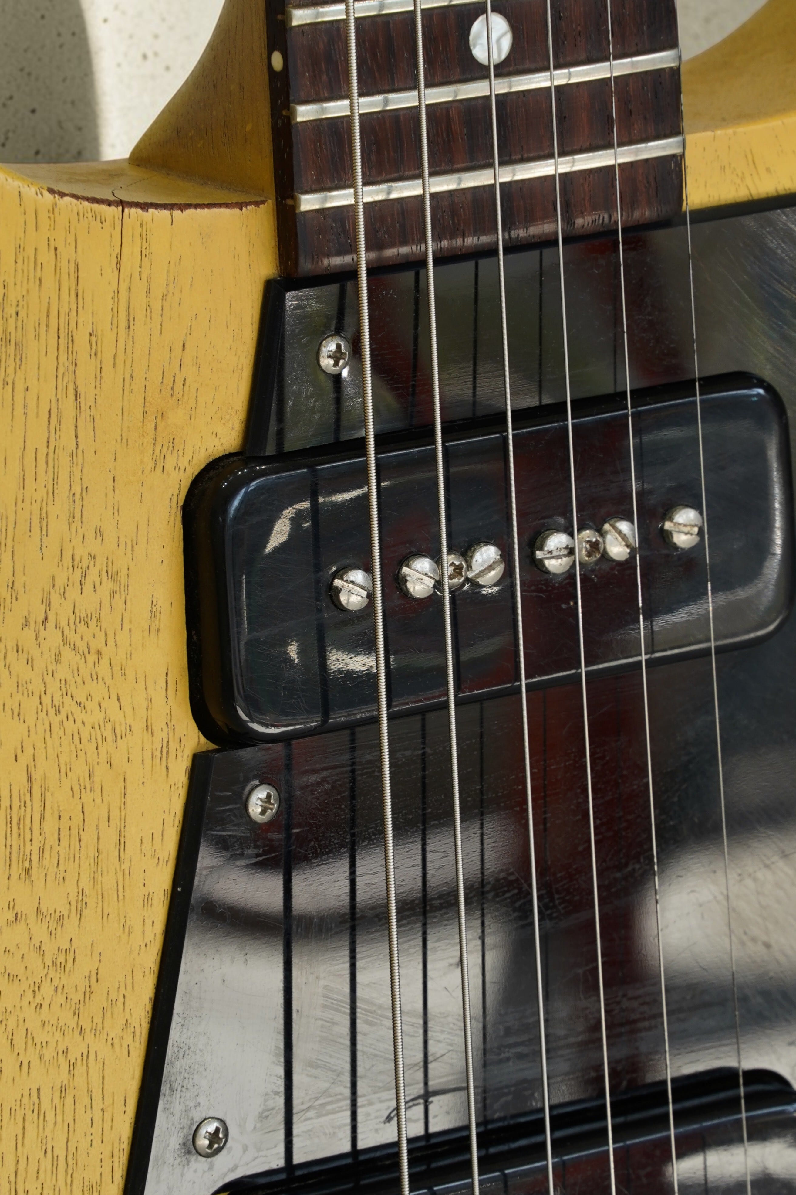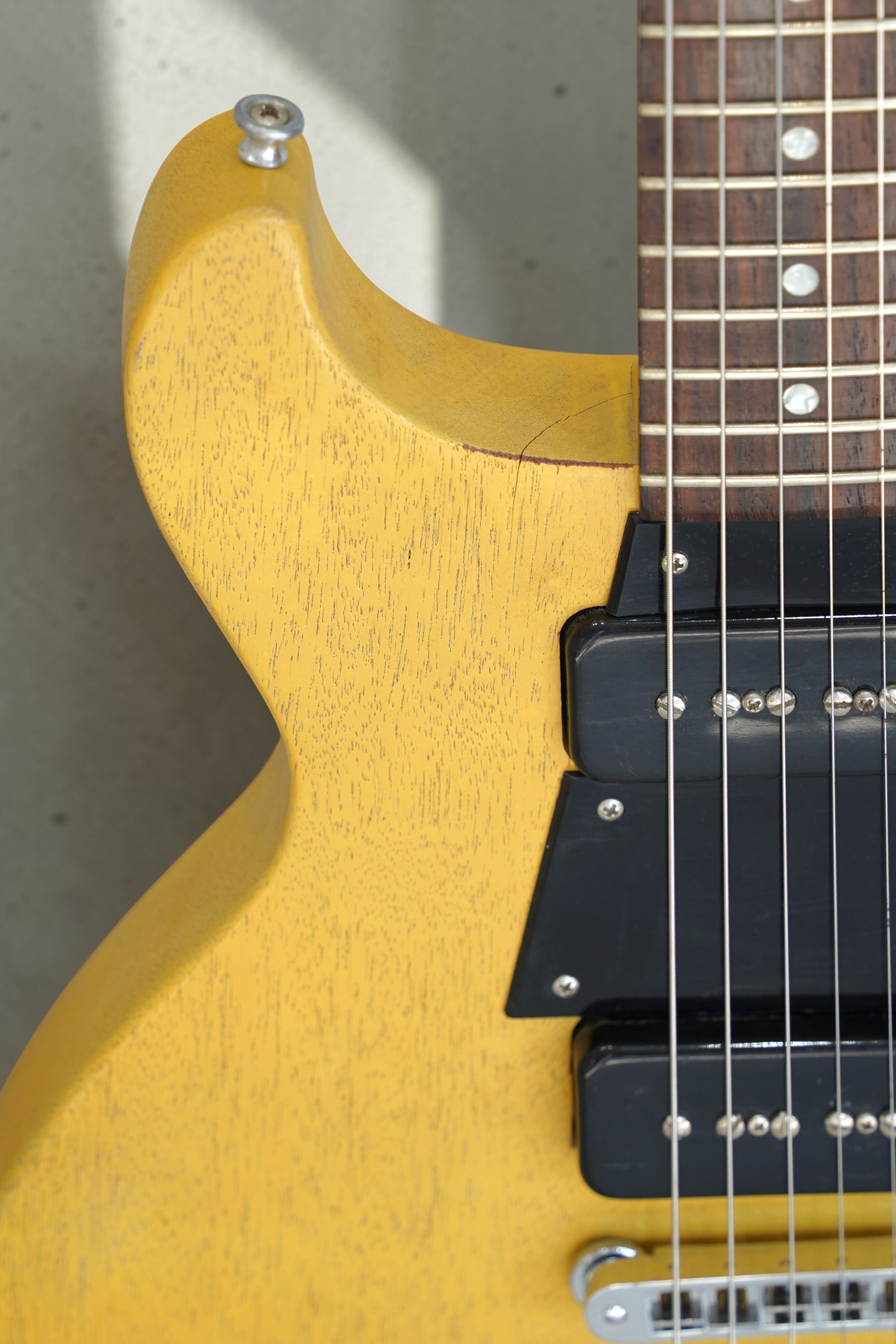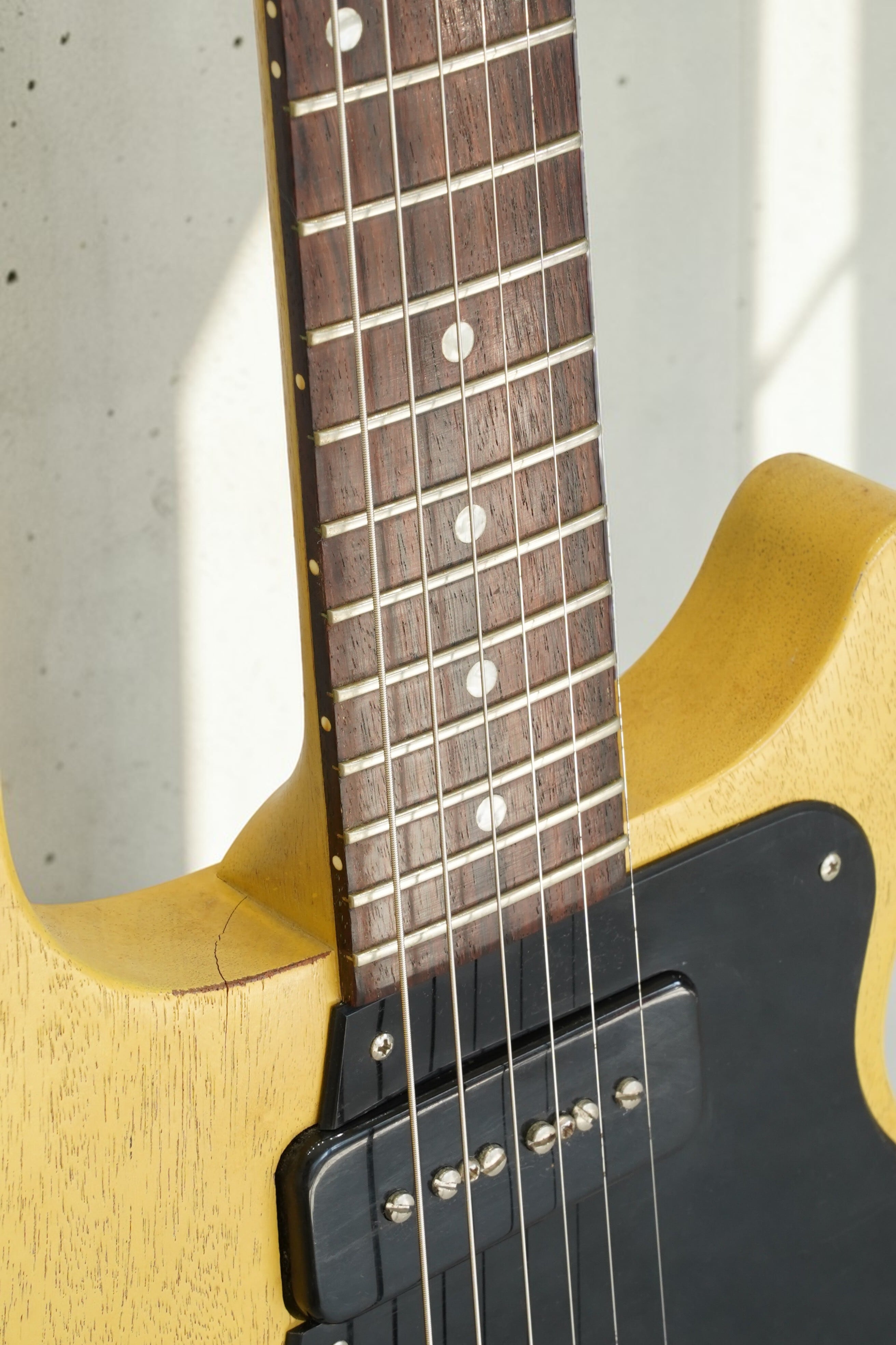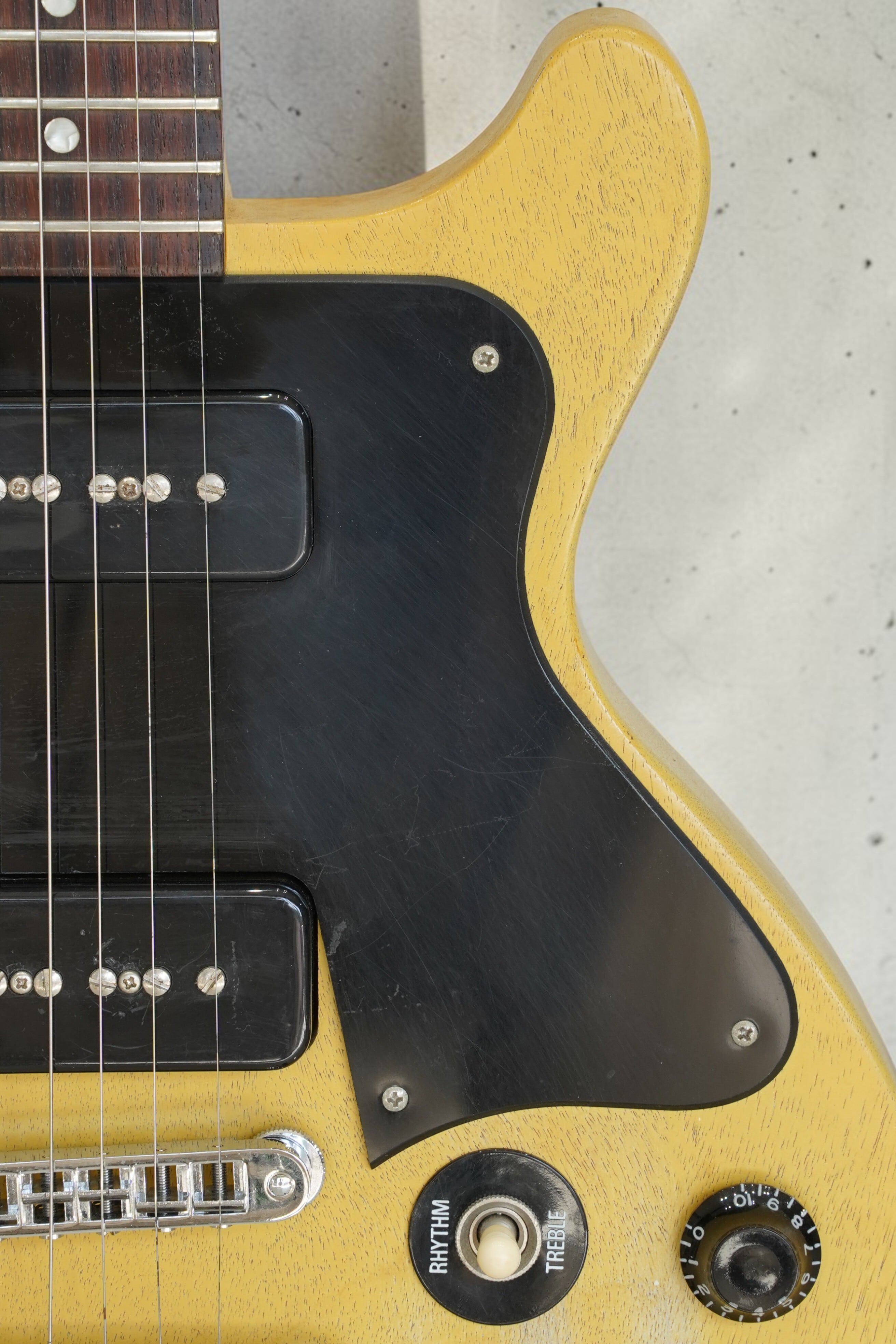 TV Yellow系のフェイデッドカラーに、P-90ピックアップを2基搭載したモデル。