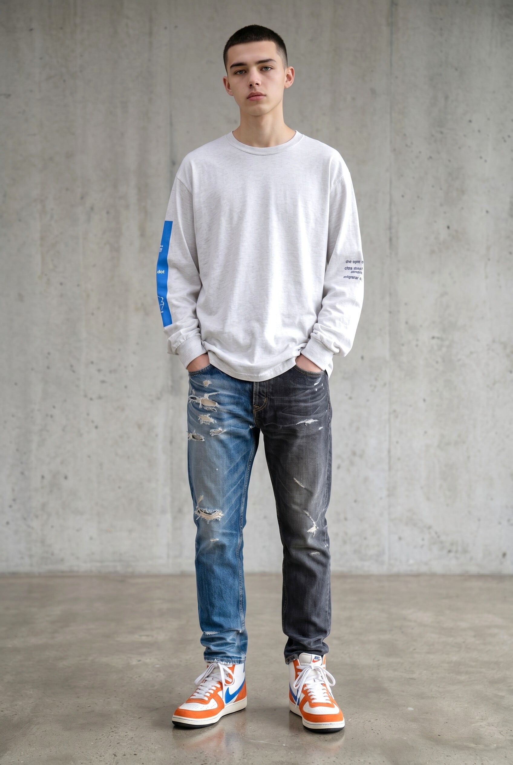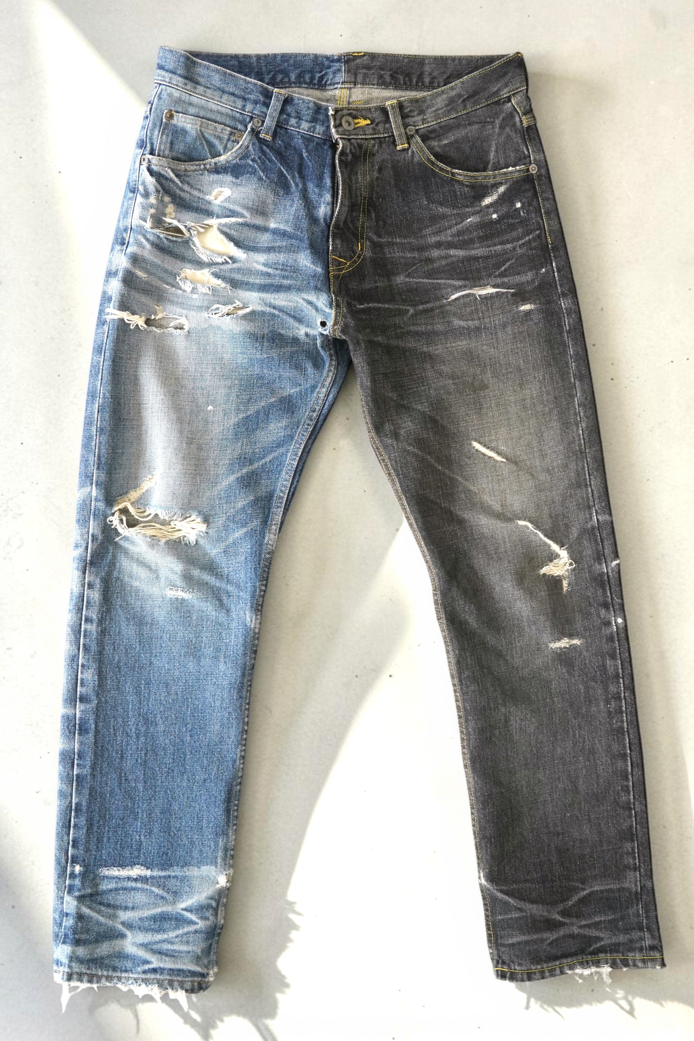 特にライトインディゴ側のクラッシュと、ブラック側のフェードの対比が非常に完成度高いです。