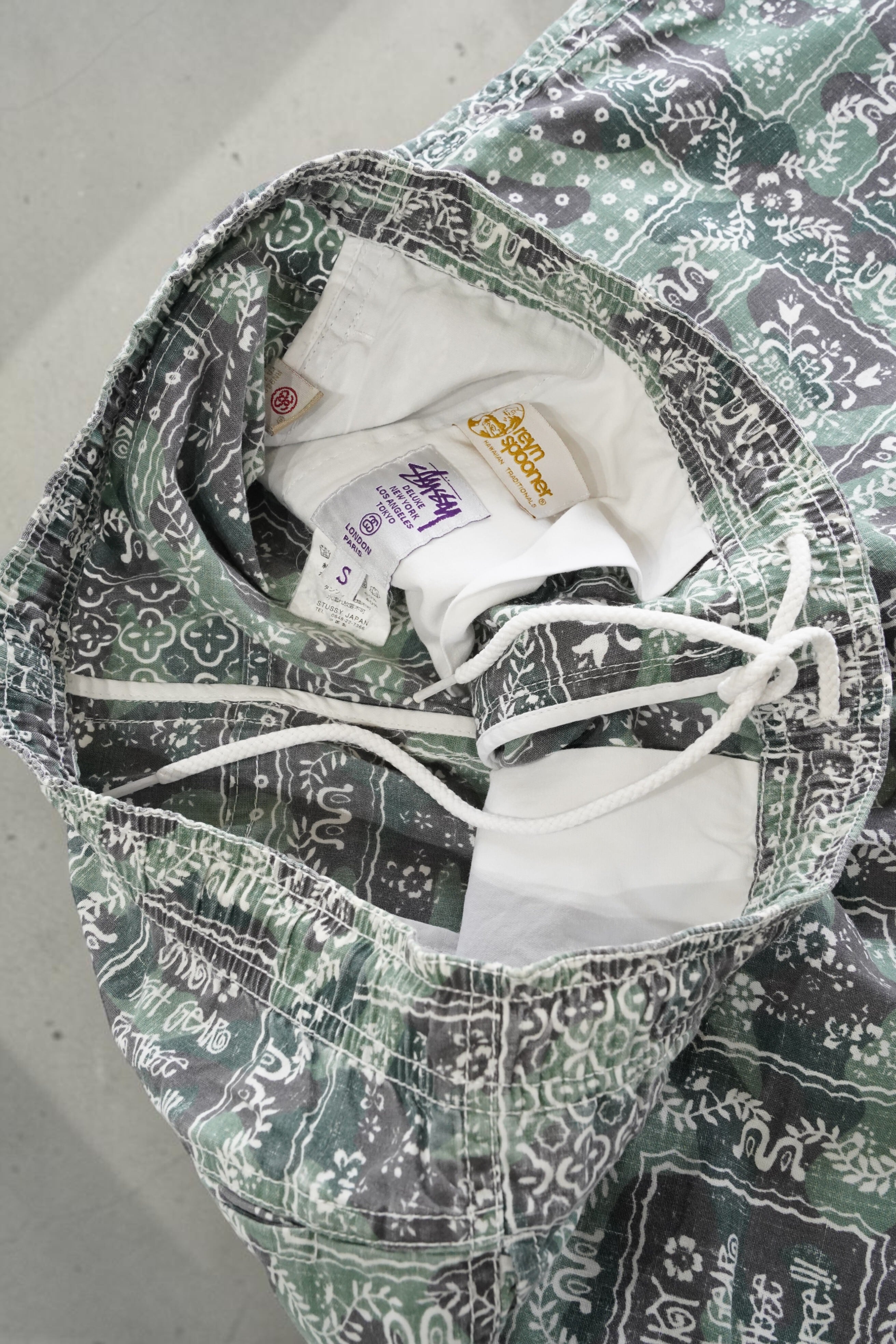 Reyn Spoonerらしいクラシックなハワイアンテキスタイルを、Stussyがストリートに落とし込んだ一着です。